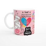 Fira vänskapen med denna livfulla keramiska mugg som ropar ”Best Friends Wine Together” i en härlig, retroinspirerad stil! Med glada bubbliga bokstäver i teal och orange, accentuerat av lekfulla hjärtan och gnistrande detaljer, är denna mugg den perfekta hyllningen till dina bästa vänner – oavsett om ni skålar med vin, kaffe eller kvällens varma choklad.