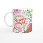 Fira vänskapen med den här charmiga keramiska muggen! Varje klunk blir en påminnelse om dina bästa vänner, omgiven av lekfulla ”Friends”-taggar, hjärtan och budskap som ”Best Friends Forever” och ”You’re The Best”. De livliga färgerna och den glada designen, med inslag av lila, rosa och guldiga stänk, gör varje fikapaus till en fest.