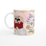 Den här stilrena muggen blir snabbt en vardagsfavorit. Perfekt för morgonkaffet, kvällens varma choklad eller när du bara vill njuta av en kopp te. Den blanka vita ytan gör att trycken framhävs med klara och levande färger, som håller sig fina även efter många turer i mikron och diskmaskinen. En symbol för er eviga vänskap, som alltid kommer till användning och påminner om de bästa stunderna.