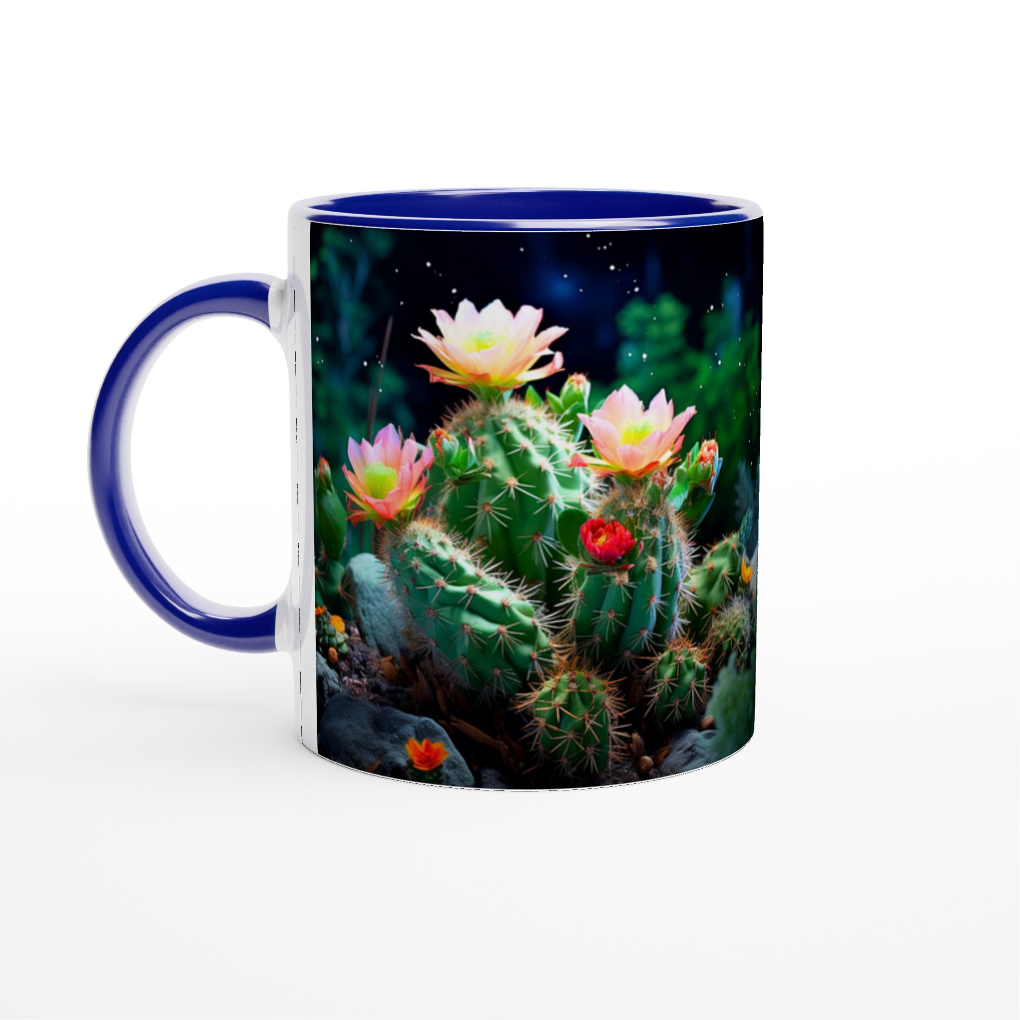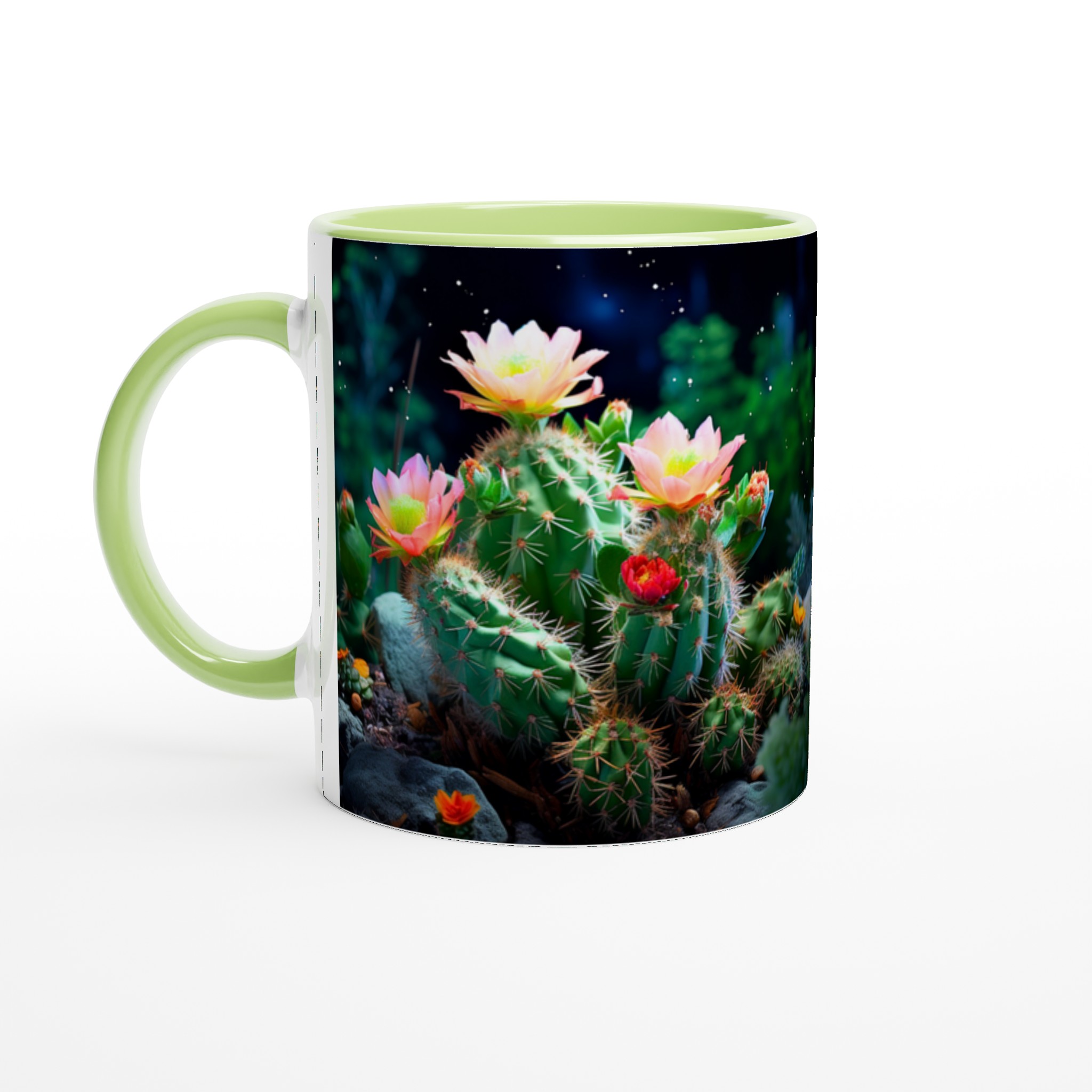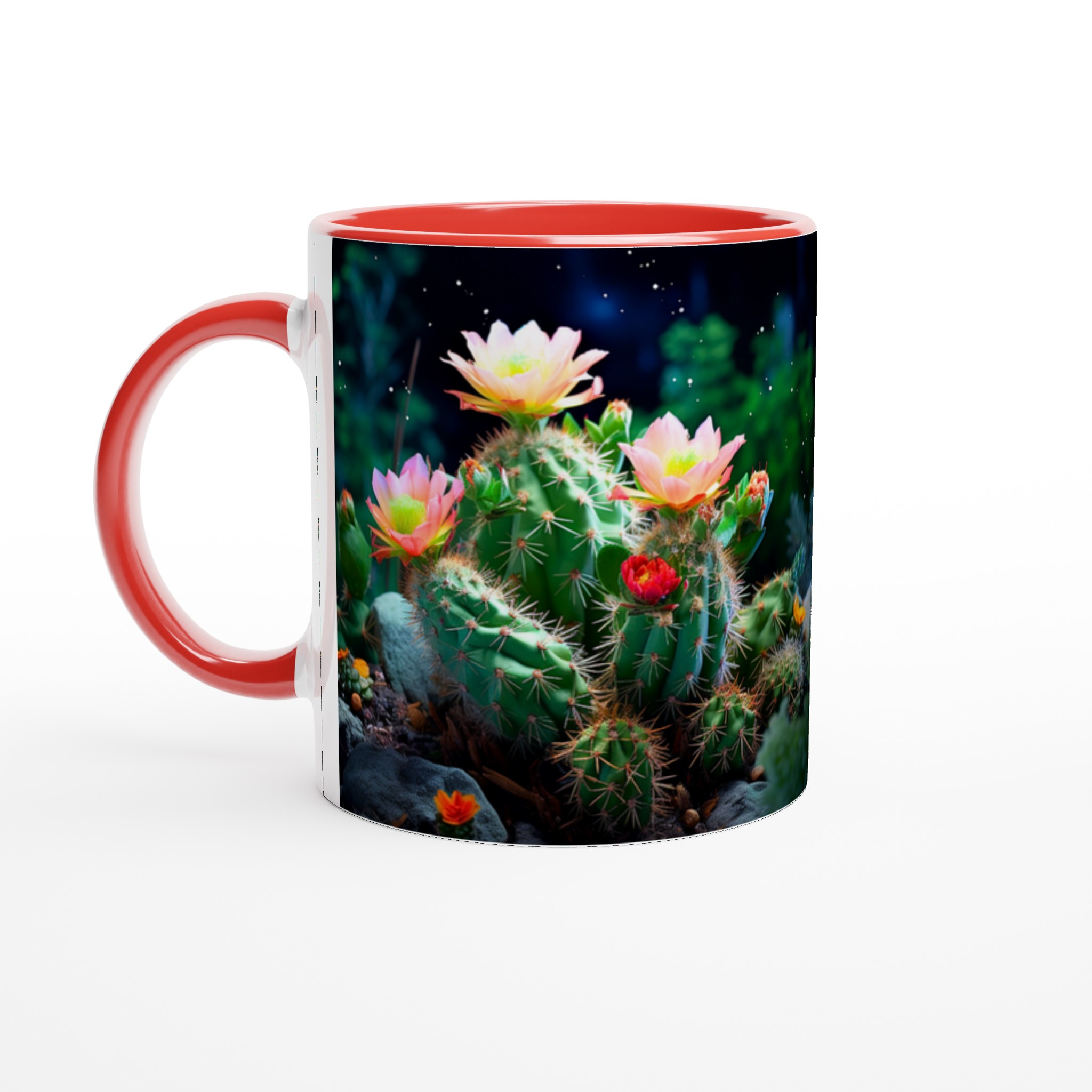 Fånga naturens förtrollande skönhet med vår Blommande Kaktus keramiska mugg. Detta motiv, inspirerat av magin hos blommande kaktusar under natthimlen, ger din fika en touch av mystik och livfulla färger. Den här stilrena keramiska muggen blir snabbt en vardagsfavorit. Perfekt för morgonkaffet, kvällens varma choklad eller när du bara vill njuta av en kopp te.