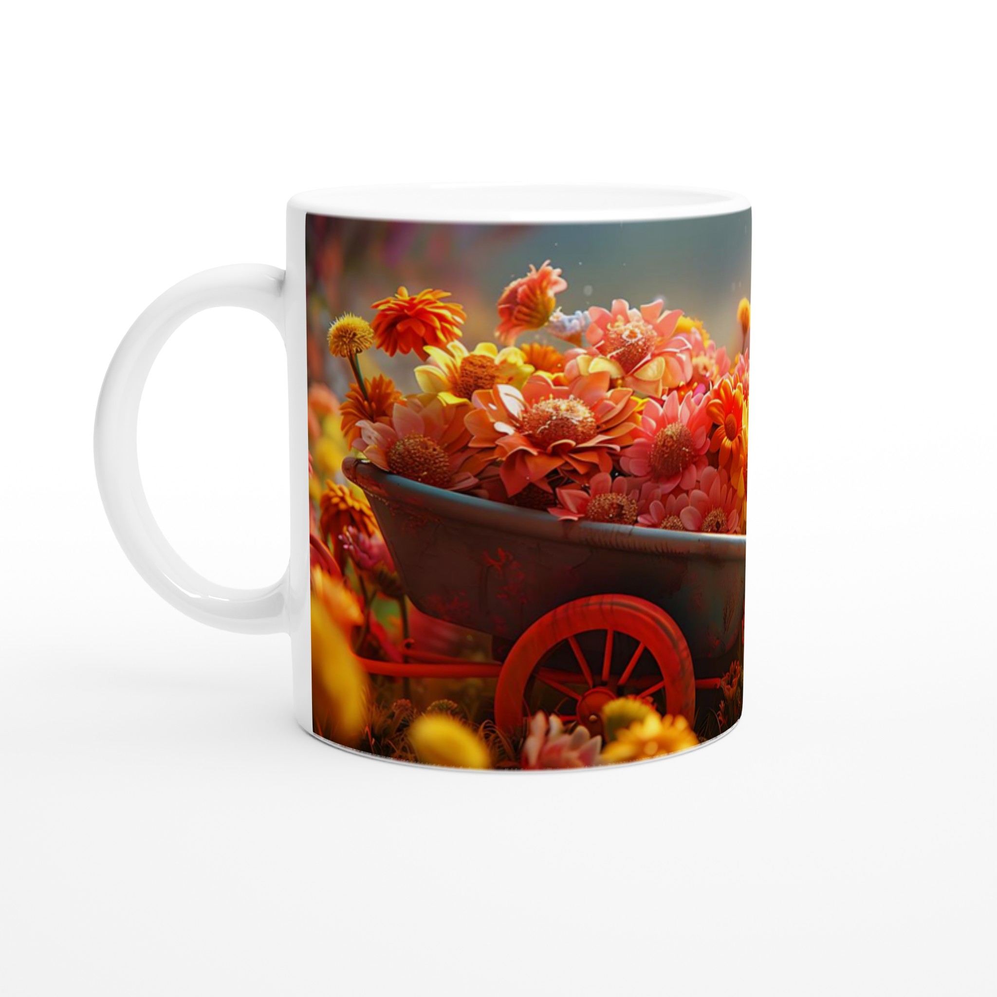 Fånga den livfulla känslan av en blommande trädgård med din alldeles egna keramiska mugg, inspirerad av de varma, inbjudande tonerna av sommarblommor. Våra muggar är designade för att ge dina favoritdesigner ett hem som strålar, precis som blommorna i full prakt. Välj bland ett spektrum av sju charmiga färger – Keramisk Vit, Keramisk Gul, Keramisk Rosa, Keramisk Grön, Keramisk Röd, Keramisk Svart eller Keramisk Blå – för att matcha din personliga stil eller din inredning. Varje färgval förstärker ditt tryck och gör varje klunk till en upplevelse.