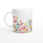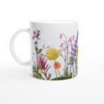 Låt varje fikastund bli en promenad genom en lummig äng med denna förtrollande keramiska mugg. Designen med akvarellinspirerade vildblommor i livfulla nyanser av rosa, orange och lila ger en känsla av lugn och glädje. Perfekt för morgonkaffet, kvällens varma choklad eller när du bara vill njuta av en kopp te och drömma dig bort till en blomstrande sommaräng. Den blanka vita ytan gör att trycken framhävs med klara och levande färger, som håller sig fina även efter många turer i mikron och diskmaskinen.