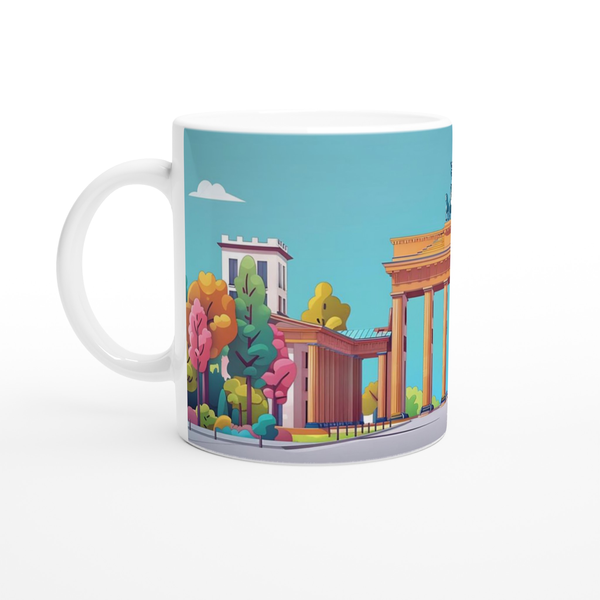 Inspirerad av Brandenburger Tors ikoniska silhuett med en lekfull twist av pastellfärger, förvandlar denna mugg din fikapaus till en stund av glädje och stil. Den blanka vita ytan ger ett skarpt och levande tryck som verkligen sticker ut, oavsett om det är en personlig design, ett roligt citat eller en present till någon du tycker om.