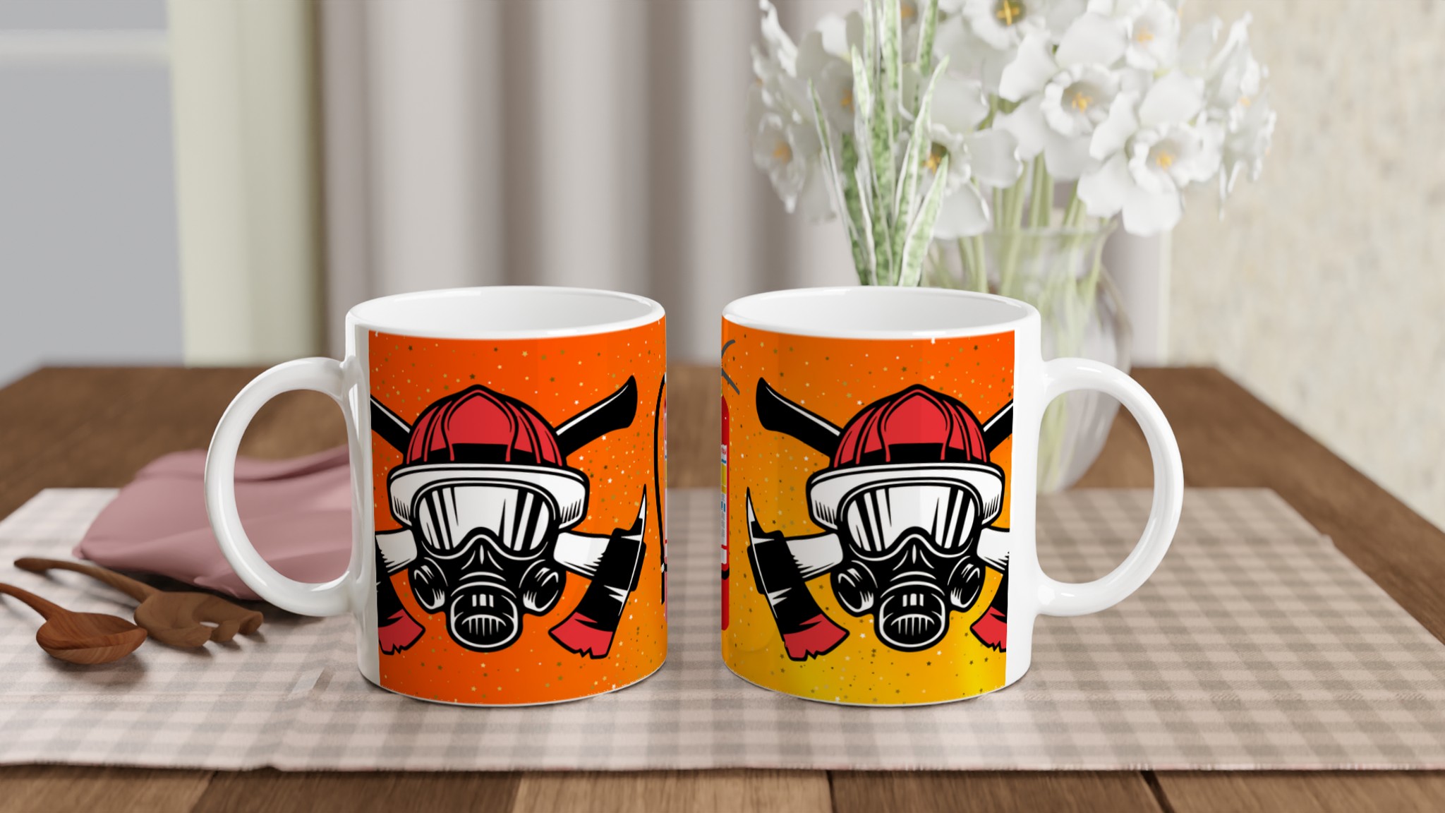 Tänd elden för din vardag med denna unika keramiska mugg, en hyllning till brandmännens mod och engagemang. Denna mugg blir snabbt en vardagsfavorit, perfekt för morgonkaffet, kvällens varma choklad eller när du bara vill njuta av en kopp te medan du reflekterar över livets hjältar. Den blanka ytan får trycket att framhävas med klara och levande färger, som håller sig fina även efter många turer i mikron och diskmaskinen.