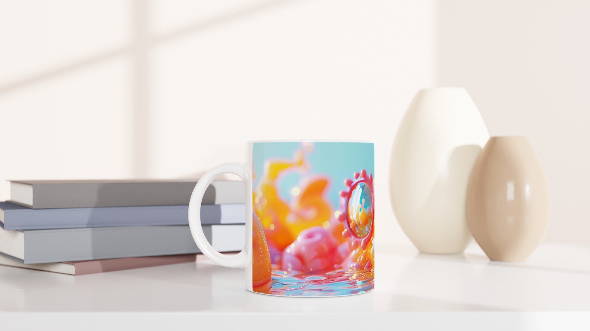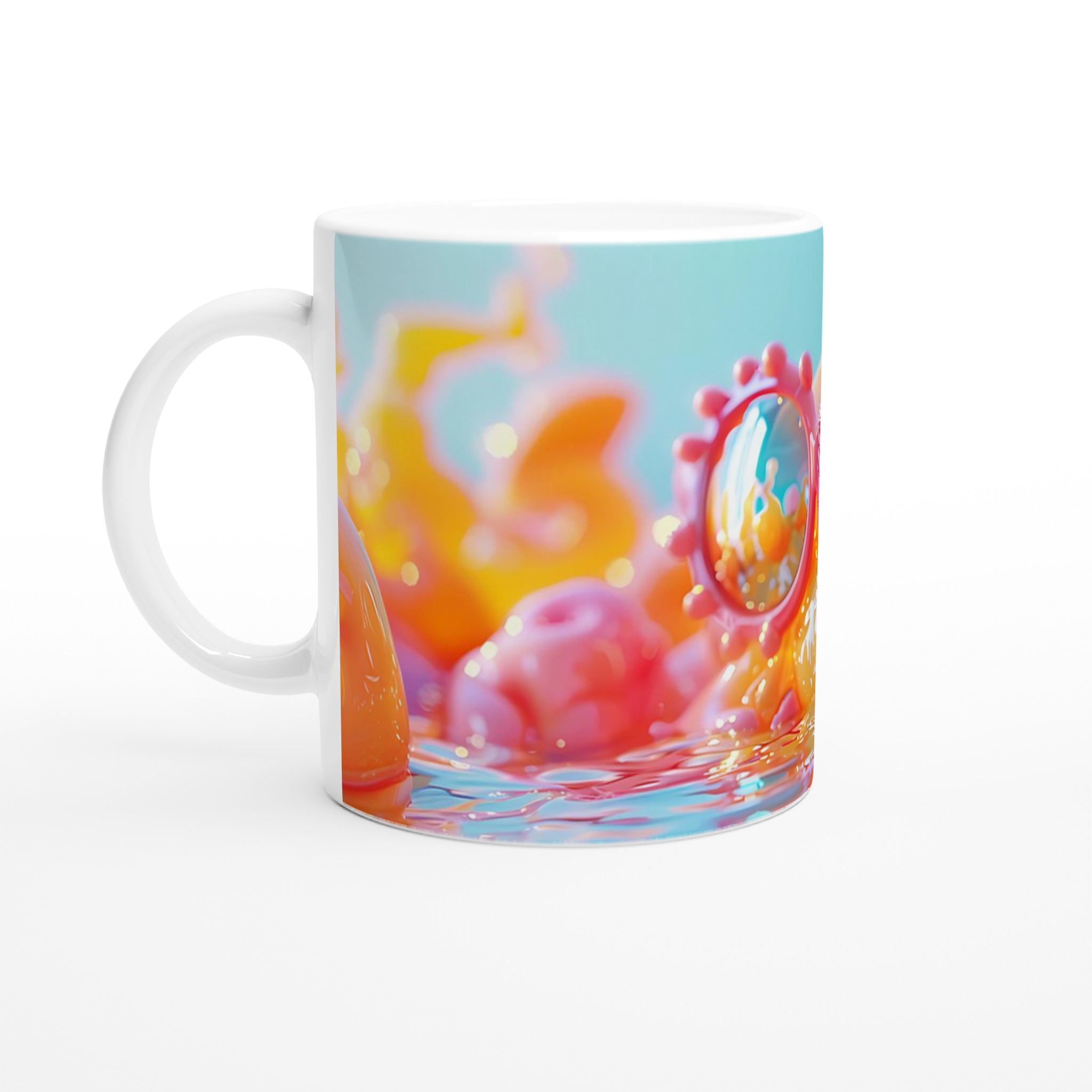 Denna mugg är mer än bara en kopp – den är en explosion av färg och lekfull glädje, inspirerad av de drömska nyanserna i bilden. Med sin bubbelrosa estetik och mysiga känsla blir den snabbt en vardagsfavorit. Perfekt för morgonkaffet, kvällens varma choklad eller när du bara vill njuta av en kopp te.