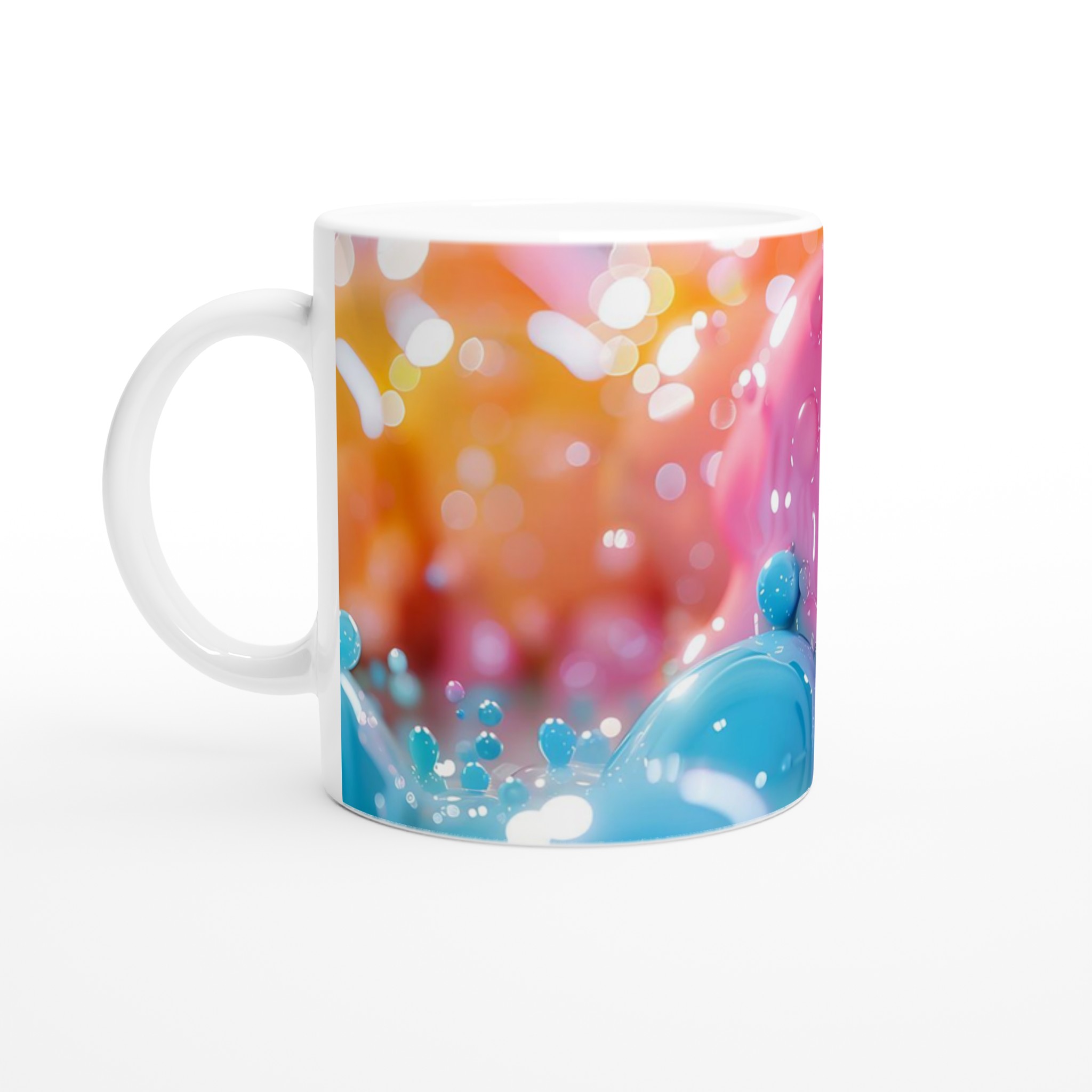 Den blanka vita ytan ger ett skarpt och levande tryck som verkligen sticker ut, oavsett om det är en personlig design, ett roligt citat eller en present till någon du tycker om. Inspirerad av en värld av lekfulla bubblor och ljusa färger, kan du nu välja din egen nyans för att ge din mugg en unik personlighet.