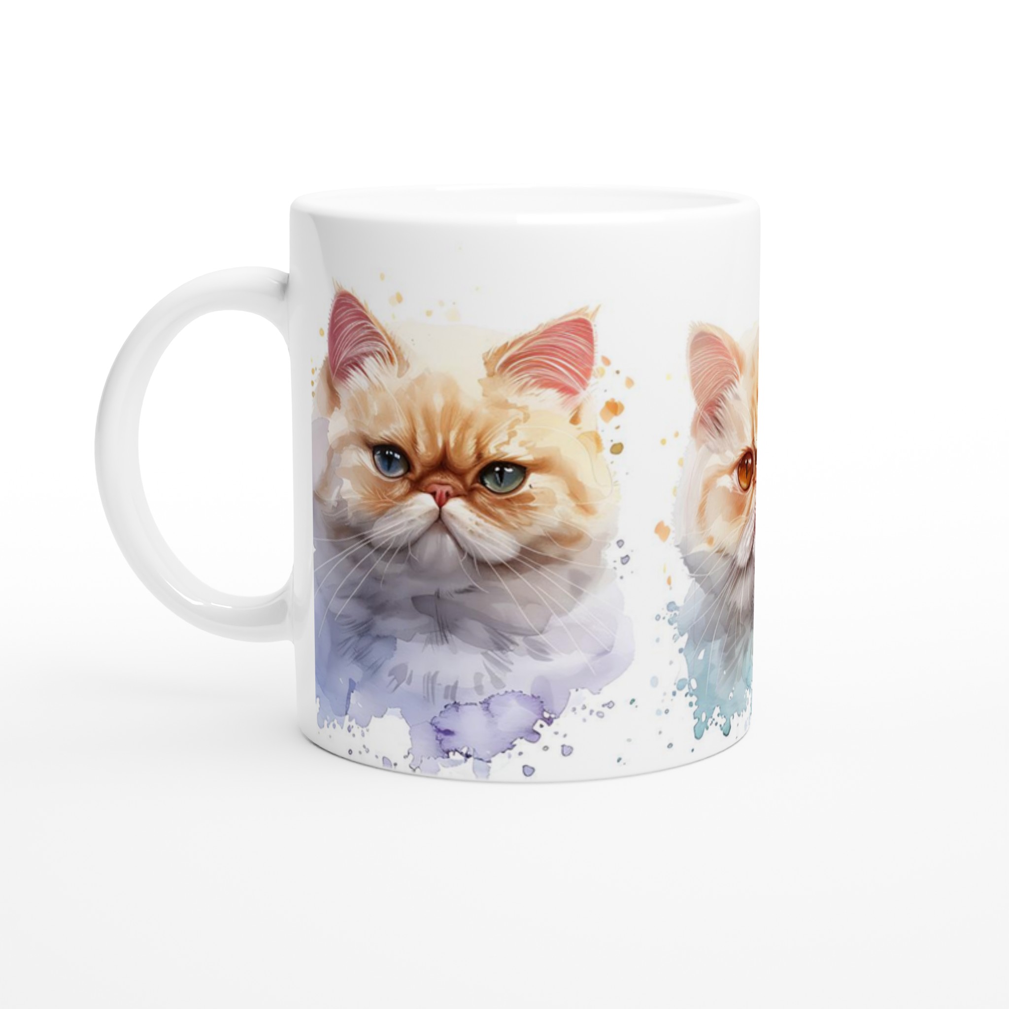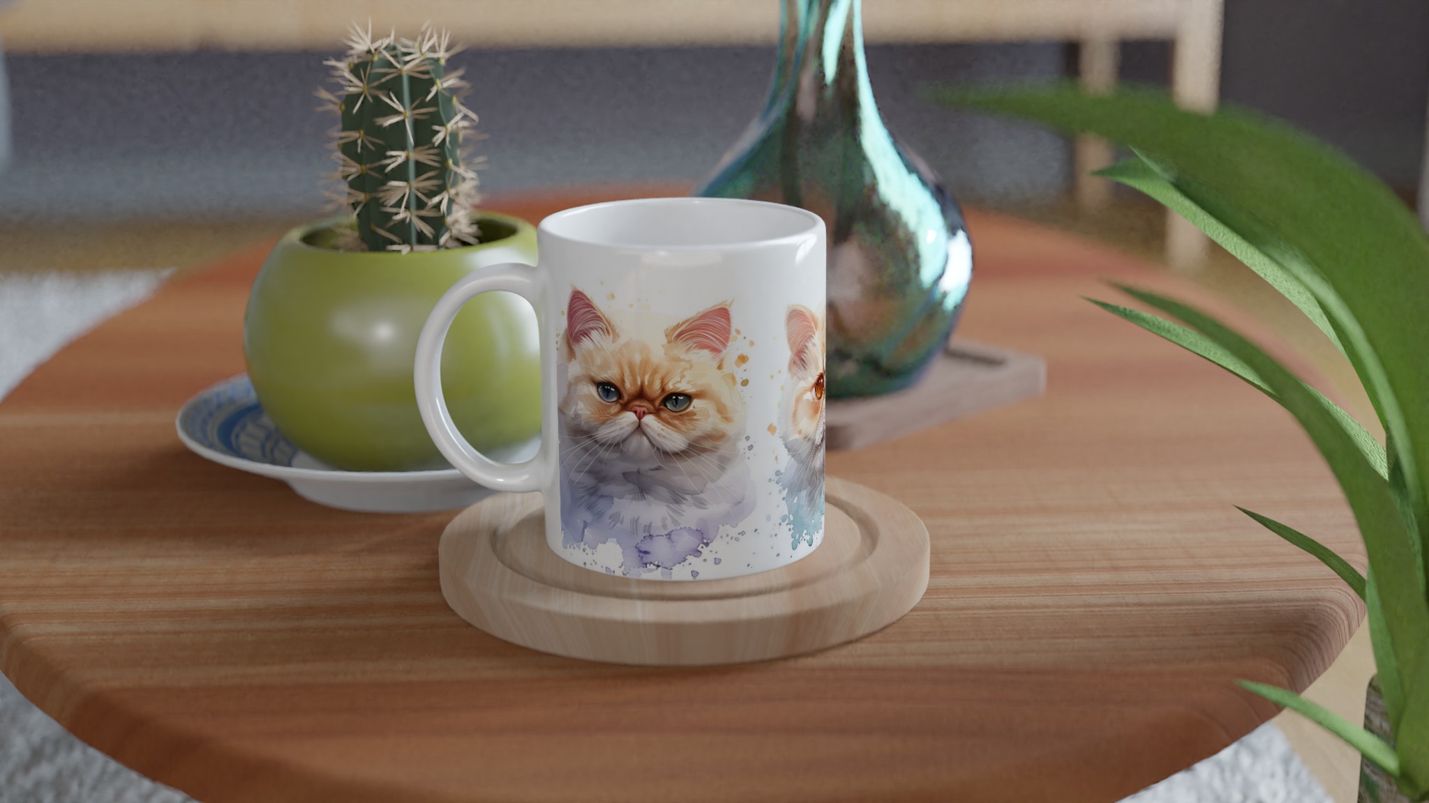 Lyft din fikastund med denna bedårande keramiska mugg, prydd med en konstnärlig akvarellkatt. Varje kattporträtt är unikt med sin charmiga expression och subtila färgstänk som ger en lekfull och konstnärlig känsla till din dag. Perfekt för morgonkaffet, kvällens varma choklad eller när du bara vill njuta av en kopp te, och en given samtalspunkt för alla kattälskare.