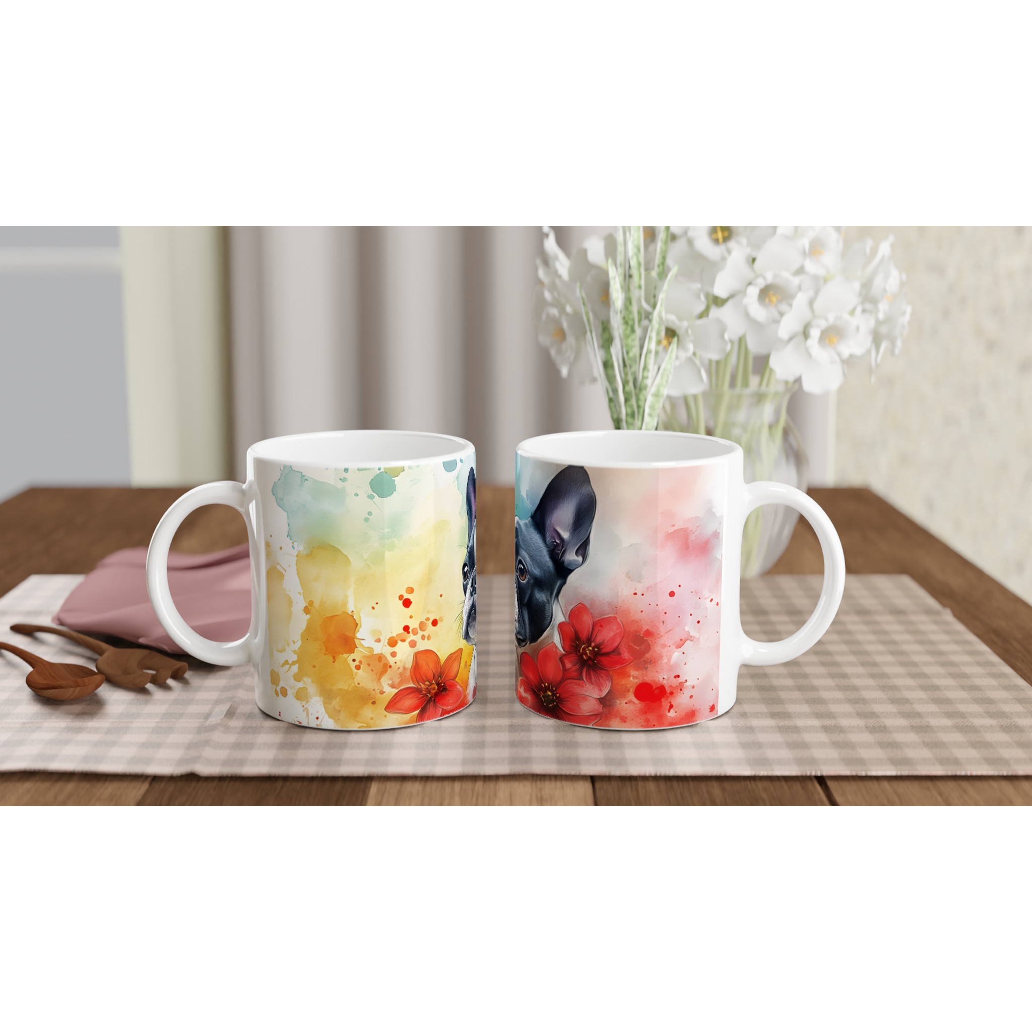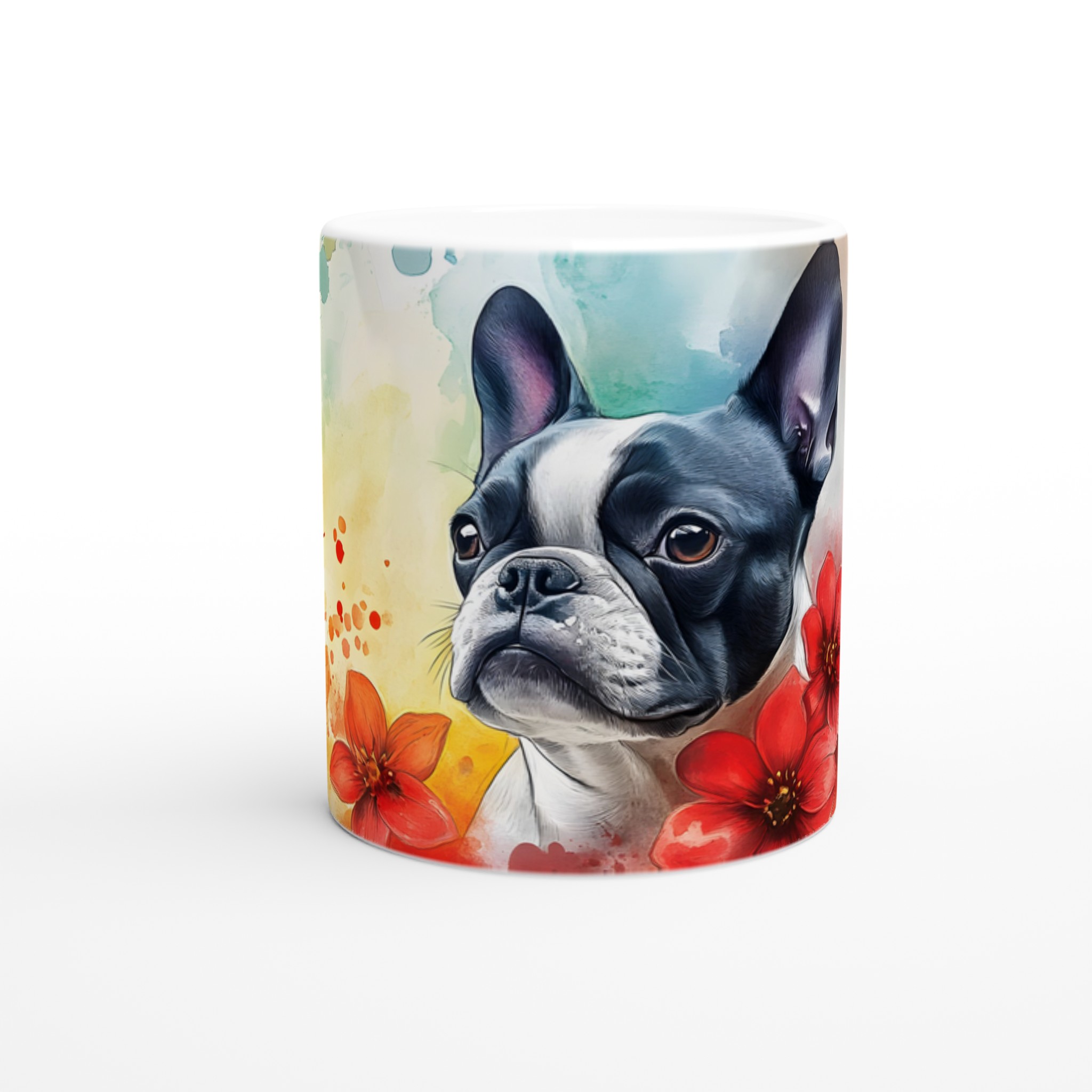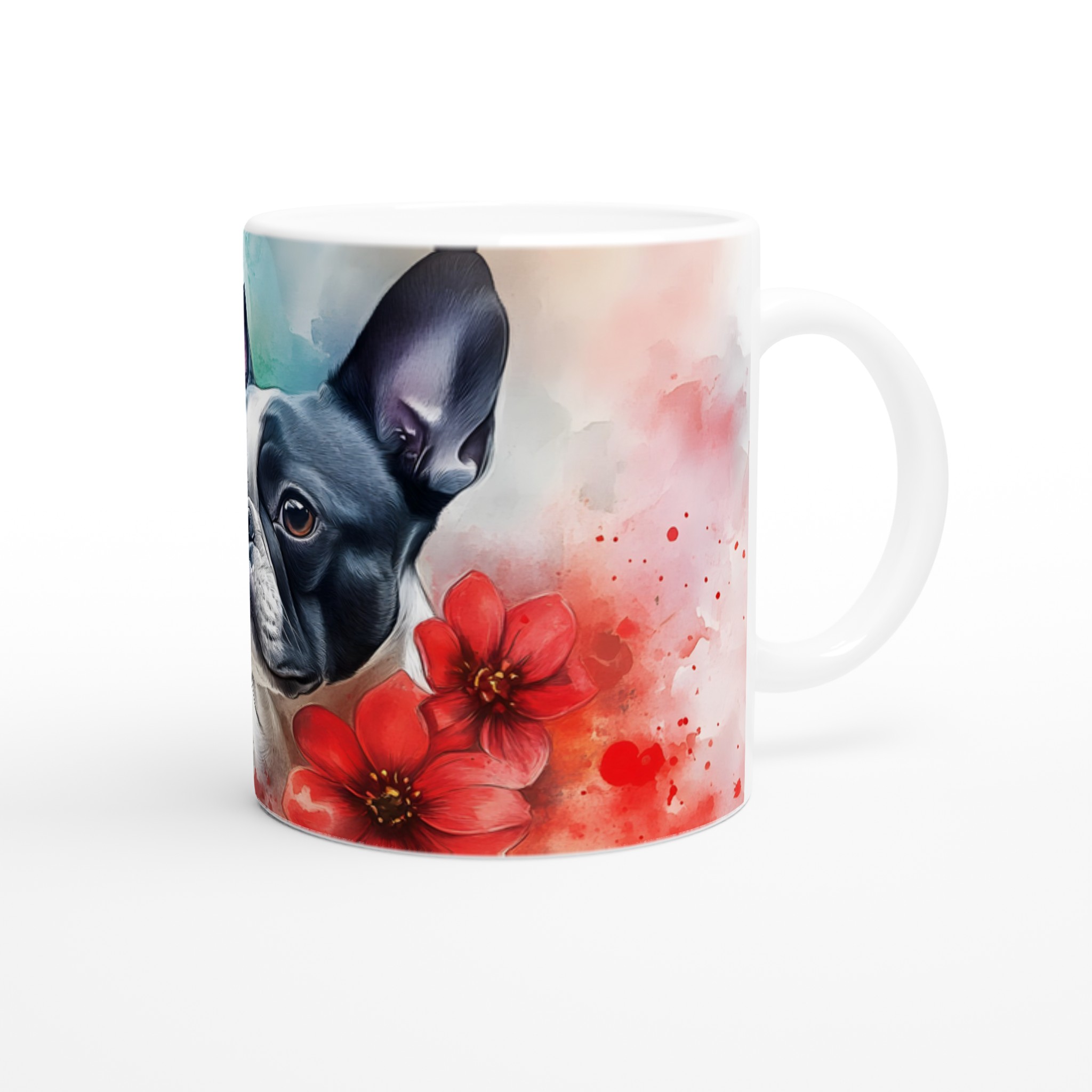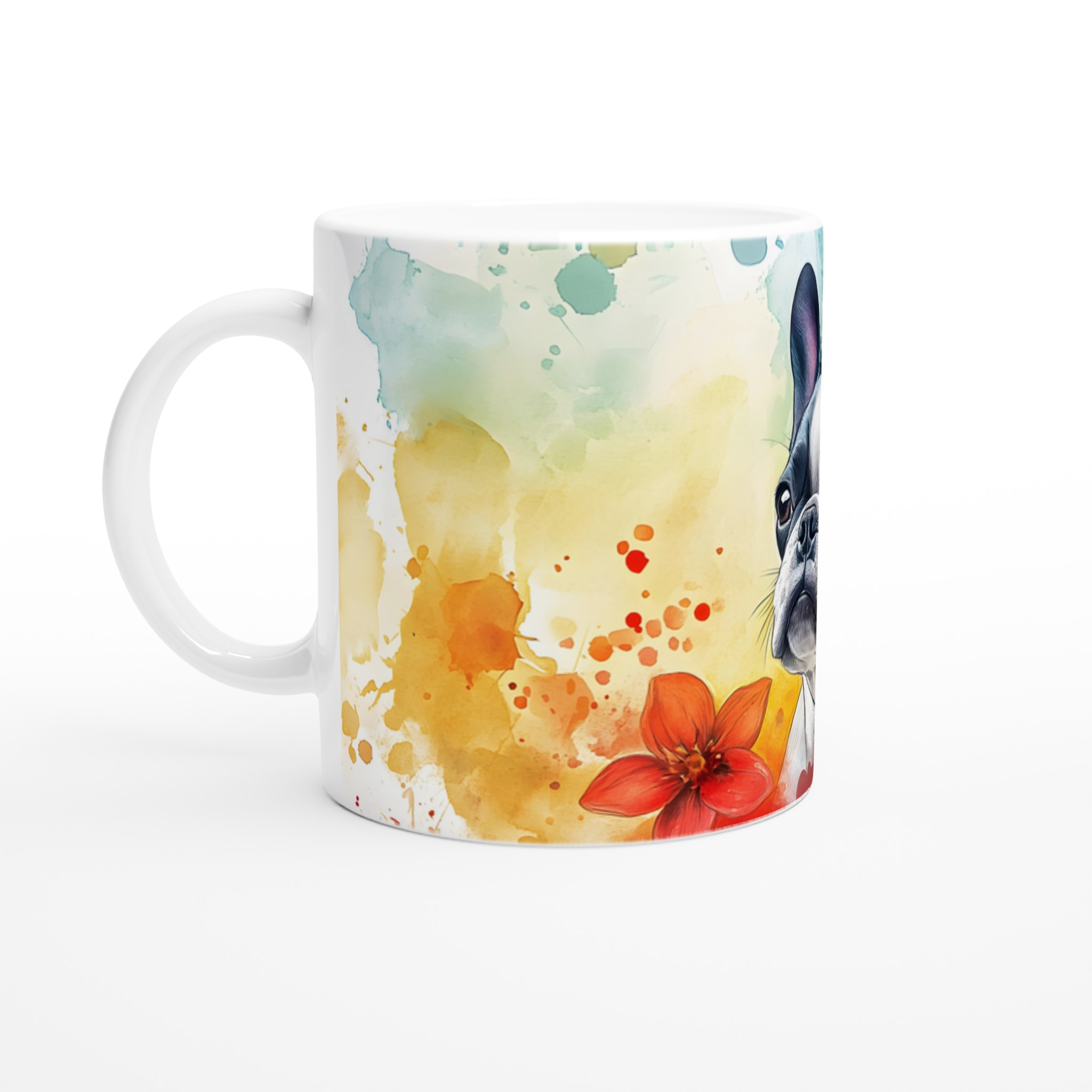 Lys upp din dag med vår charmiga keramikmugg, prydd med en bedårande Fransk Bulldog i en konstnärlig akvarellstil. Denna mugg är perfekt för alla dagens stunder – morgonkaffet, en värmande kopp te eller en härlig varm choklad. Den blanka vita ytan gör att det detaljerade trycket med den söta hunden och de levande färgerna framträder klart och färgstarkt, vilket gör muggen till en riktig favorit i vardagen. Tack vare den höga kvaliteten behåller trycket sin lyster även efter många omgångar i både mikrovågsugn och diskmaskin.