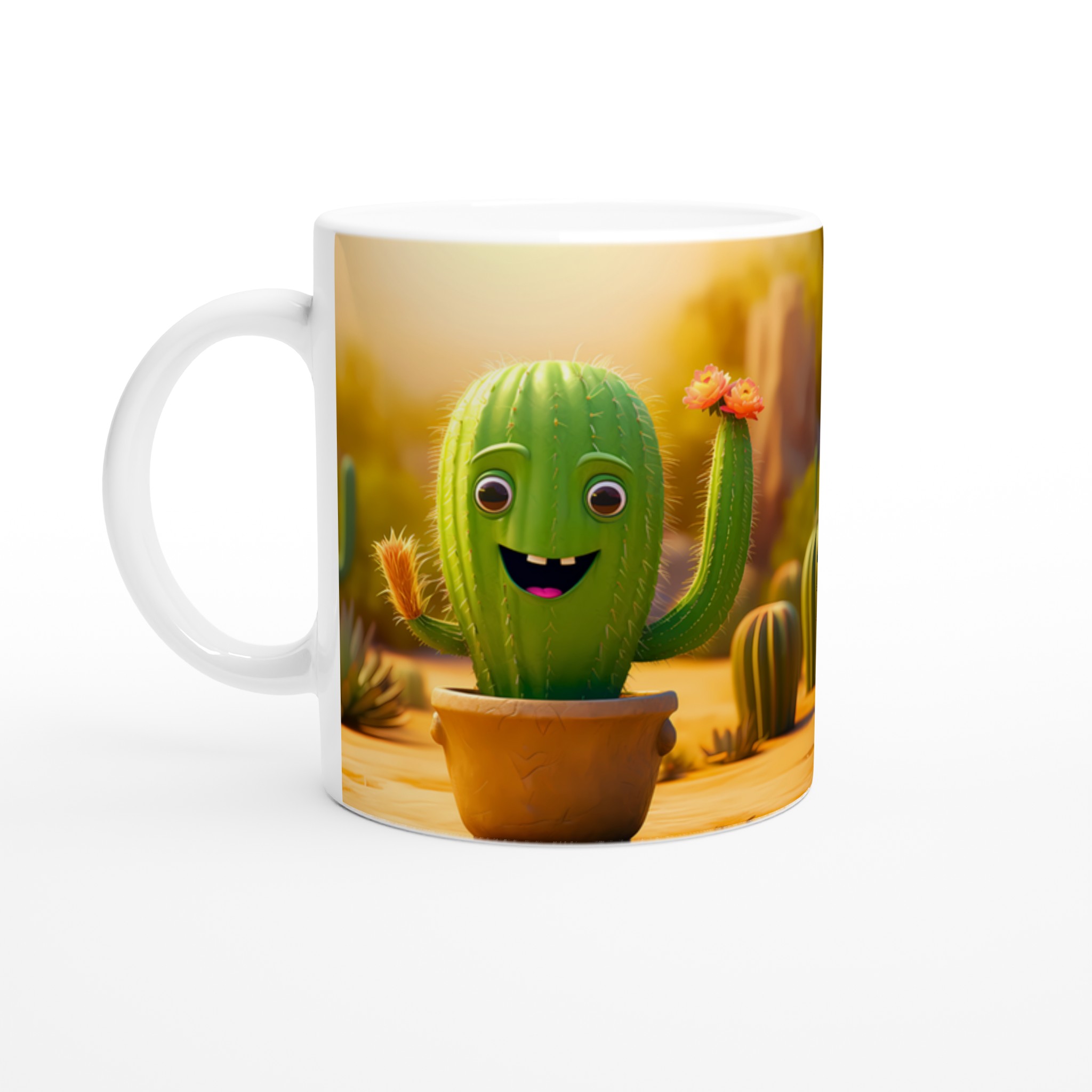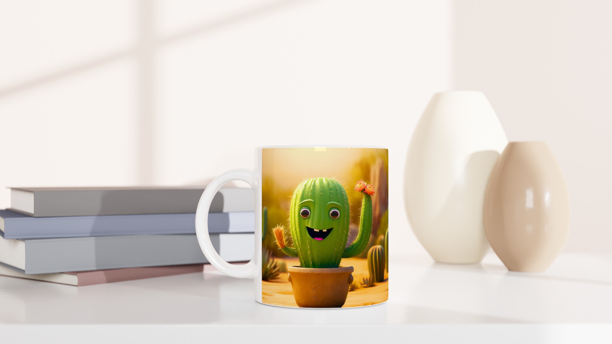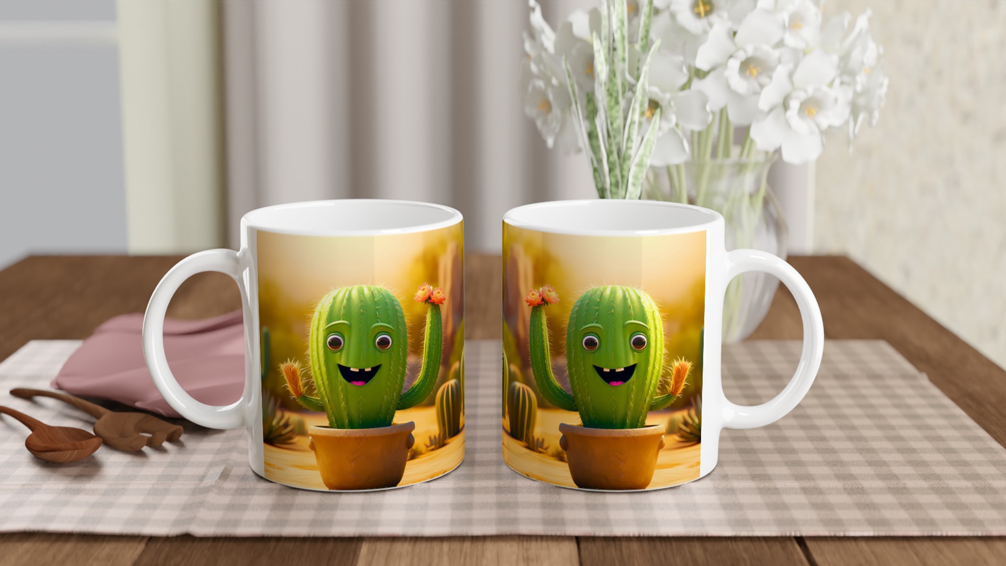 Starta dagen med ett leende med denna bedårande keramiska mugg, som garanterat sprider glädje med sin gulliga kaktusdesign! Perfekt för morgonkaffet, kvällens varma choklad eller när du bara vill njuta av en kopp te i gott sällskap. Den blanka ytan framhäver trycken med klara och levande färger, som håller sig fina även efter många turer i mikron och diskmaskinen, vilket gör den lika praktisk som den är charmig.