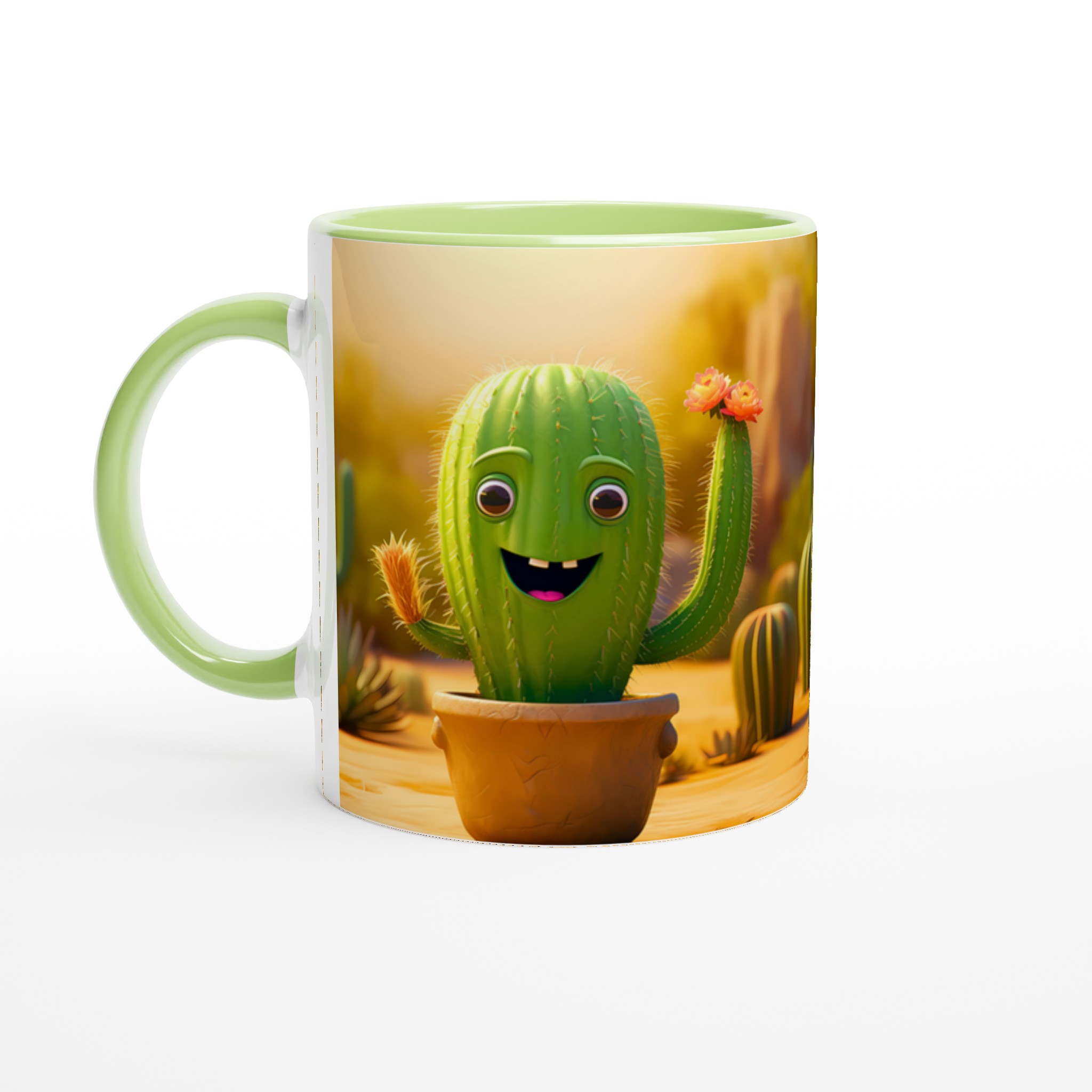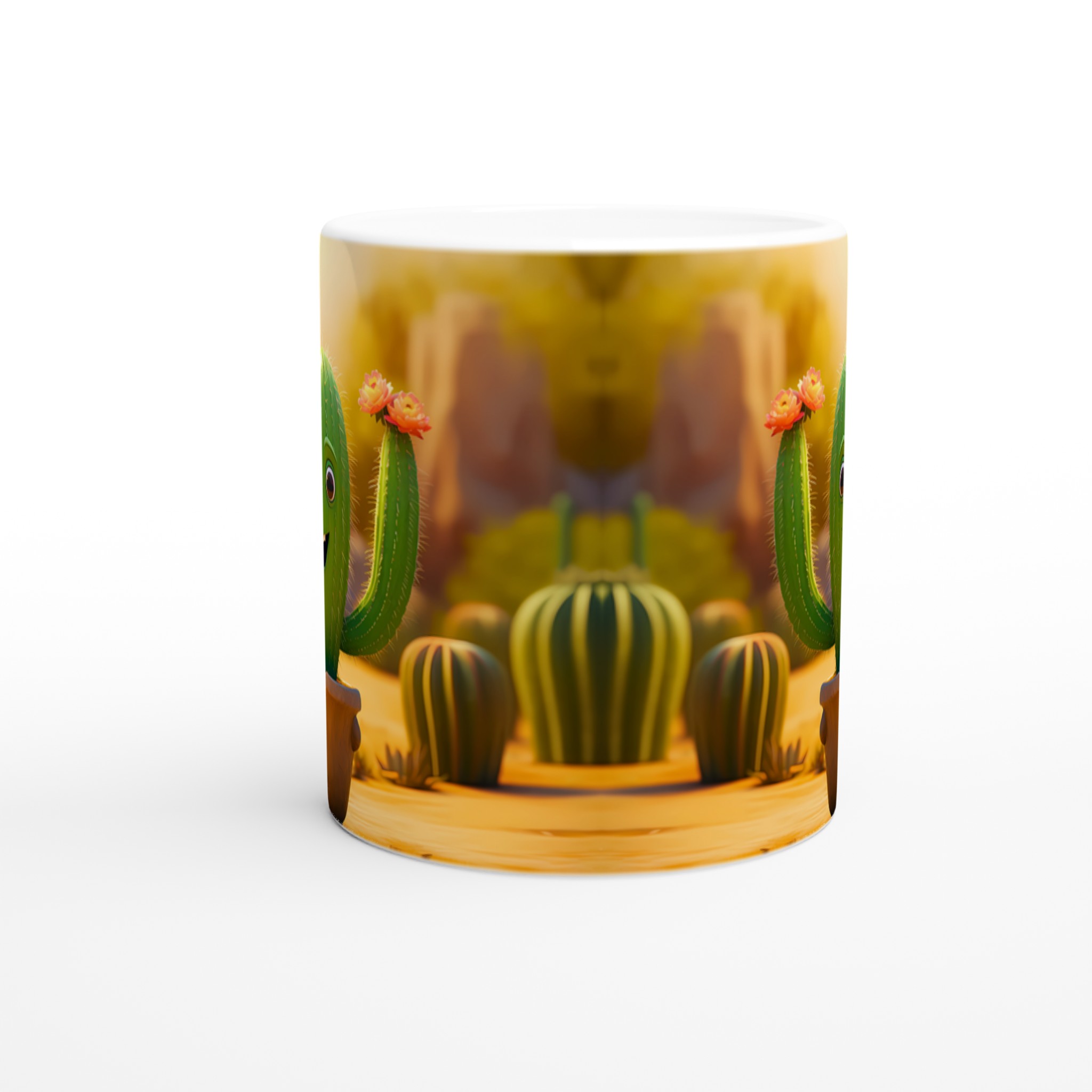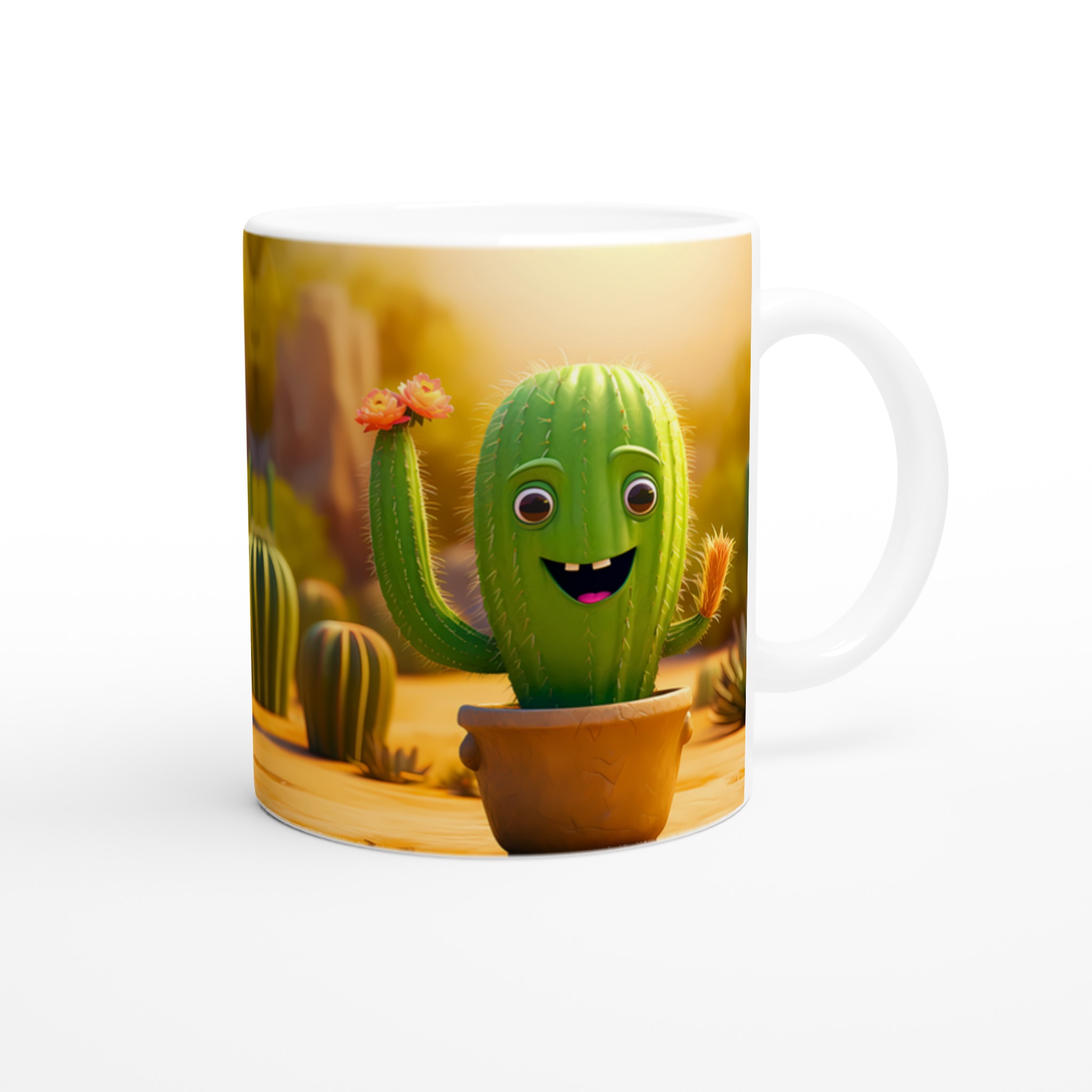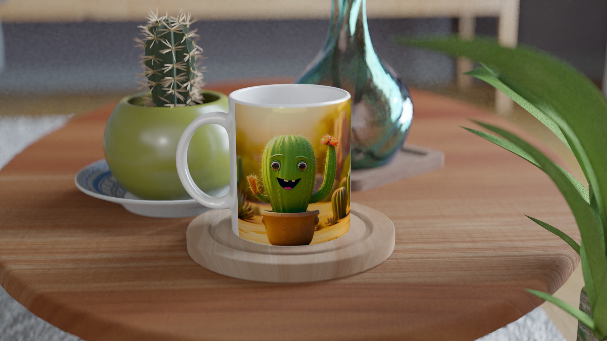 Starta dagen med ett leende med denna bedårande keramiska mugg, som garanterat sprider glädje med sin gulliga kaktusdesign! Perfekt för morgonkaffet, kvällens varma choklad eller när du bara vill njuta av en kopp te i gott sällskap. Den blanka ytan framhäver trycken med klara och levande färger, som håller sig fina även efter många turer i mikron och diskmaskinen, vilket gör den lika praktisk som den är charmig.