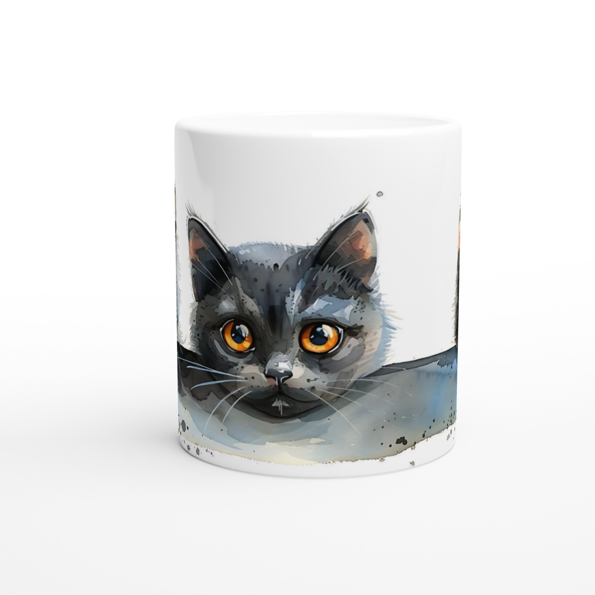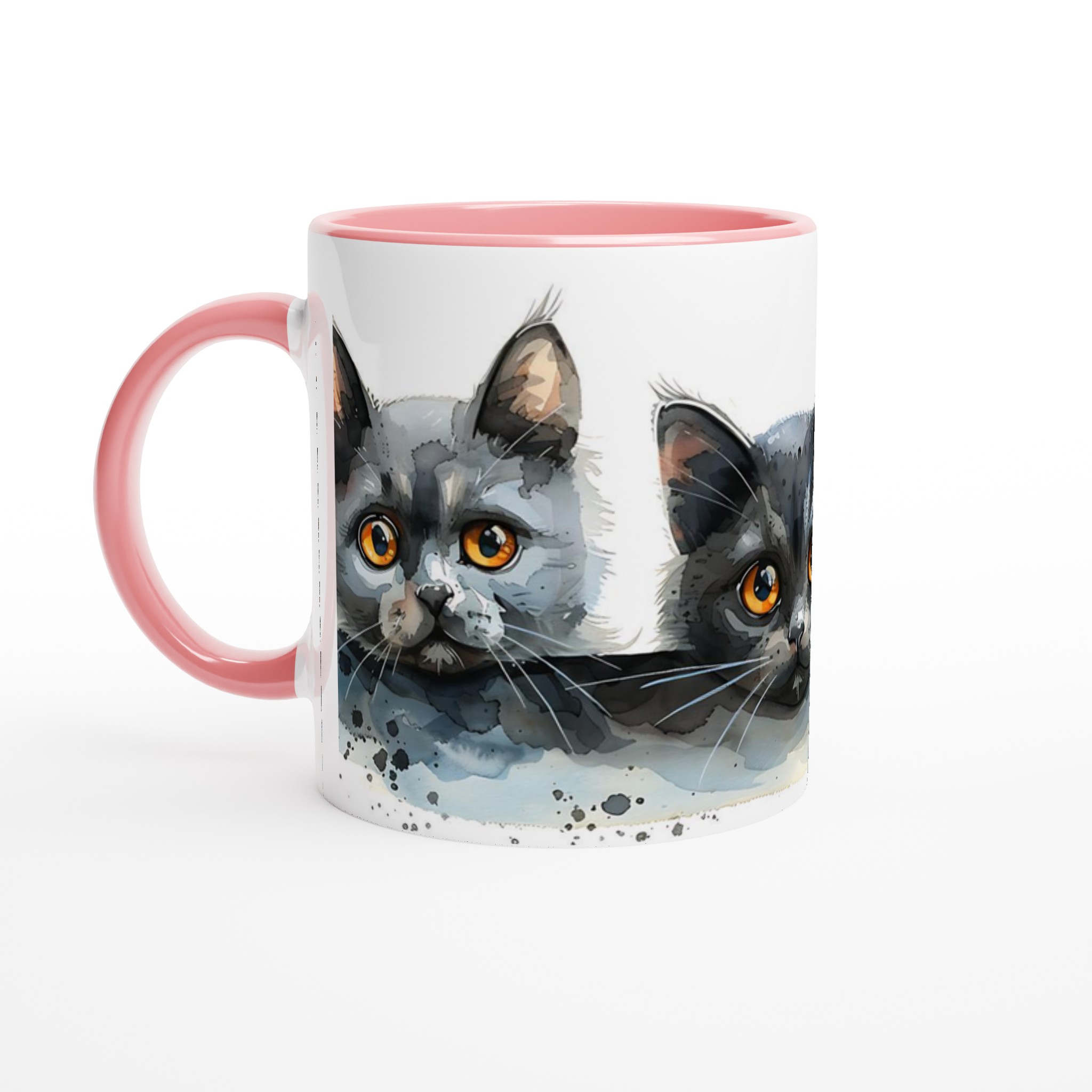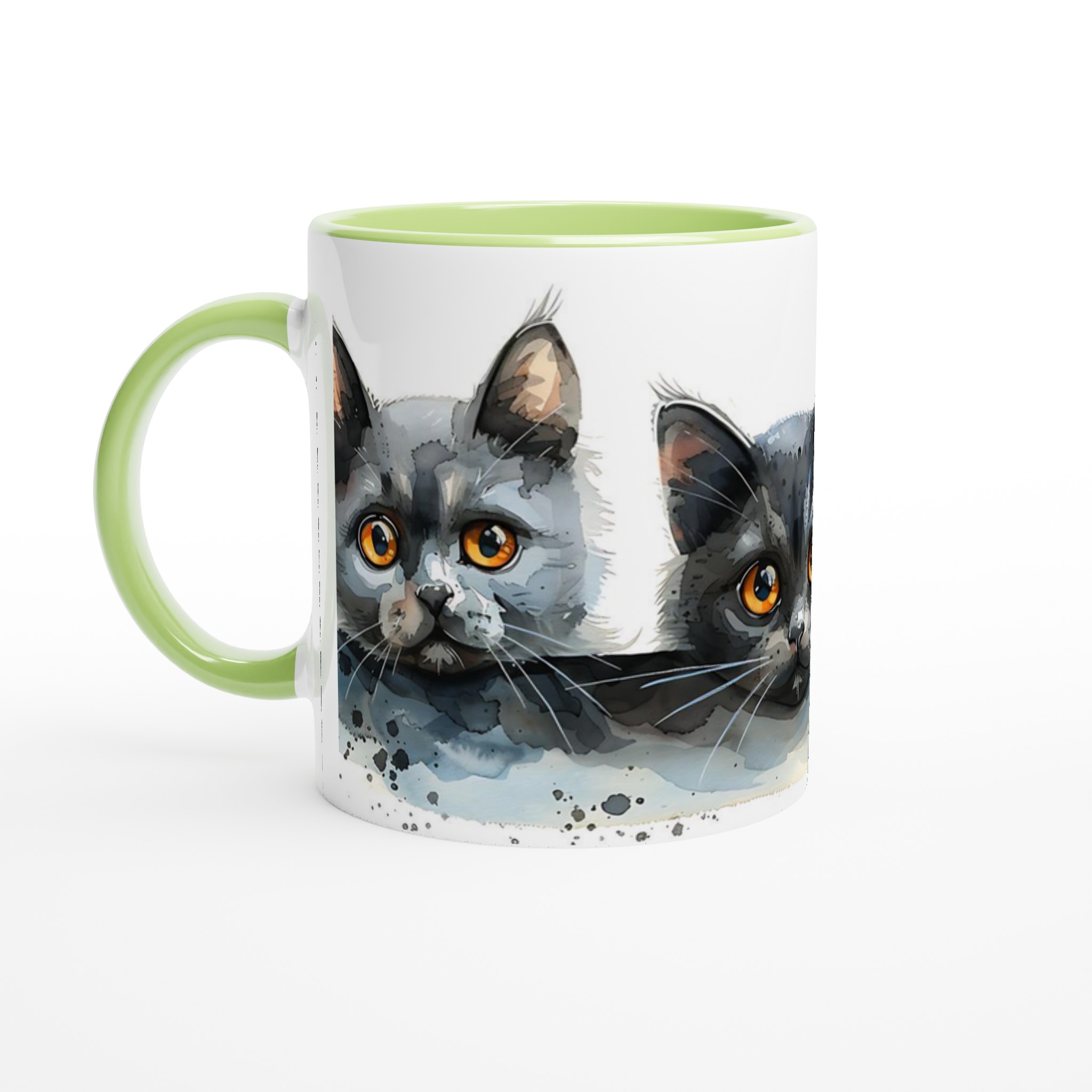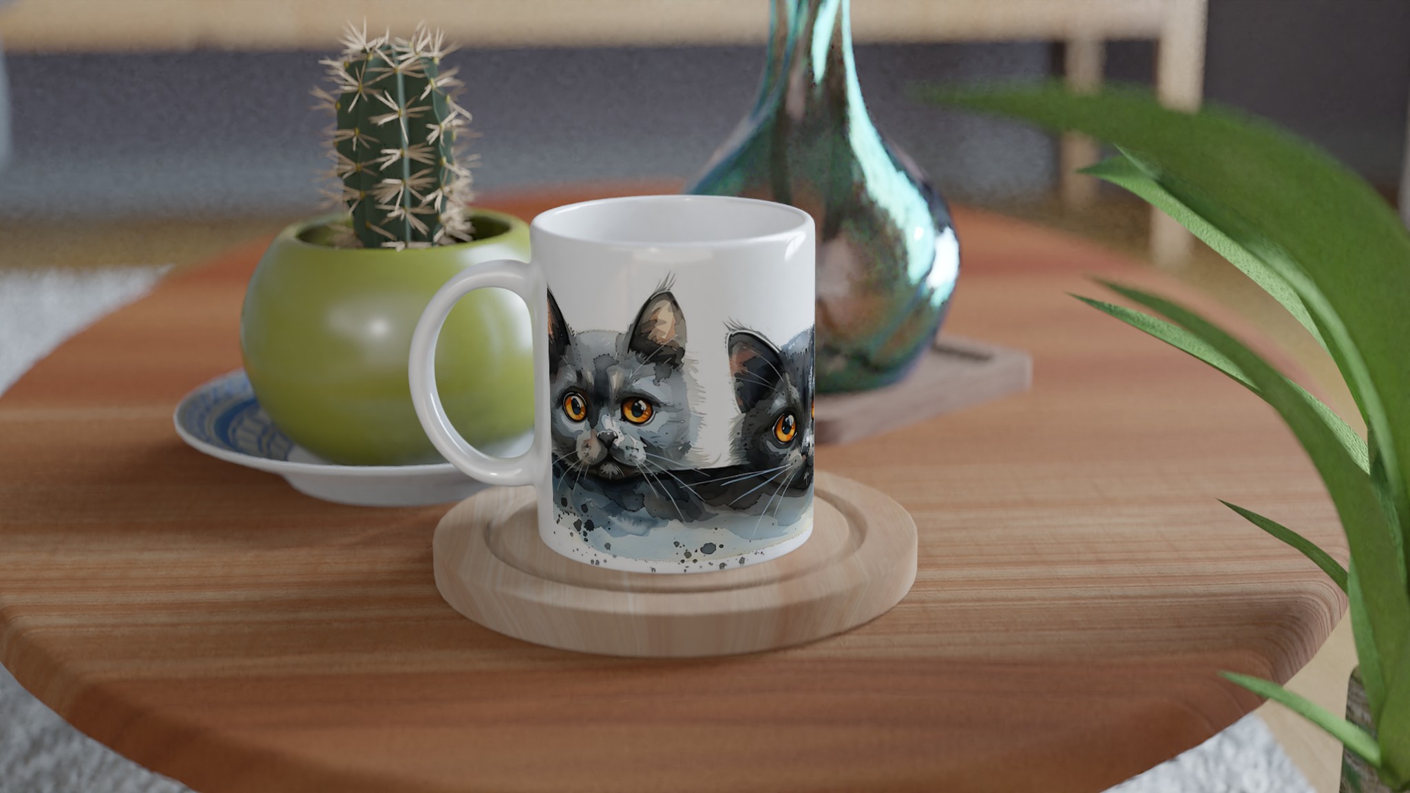 Förgyll varje fika med denna oemotståndliga keramiska mugg, prydd med tre bedårande kattungar i en mjuk akvarellstil. Deras nyfikna blickar och de varma, orangea ögonen mot den gråsvarta pälsen skapar en hjärtevärmande design som garanterat sprider glädje. Den här stilrena muggen blir snabbt en vardagsfavorit – perfekt för morgonkaffet, kvällens varma choklad, eller när du bara vill njuta av en kopp te i gott sällskap.