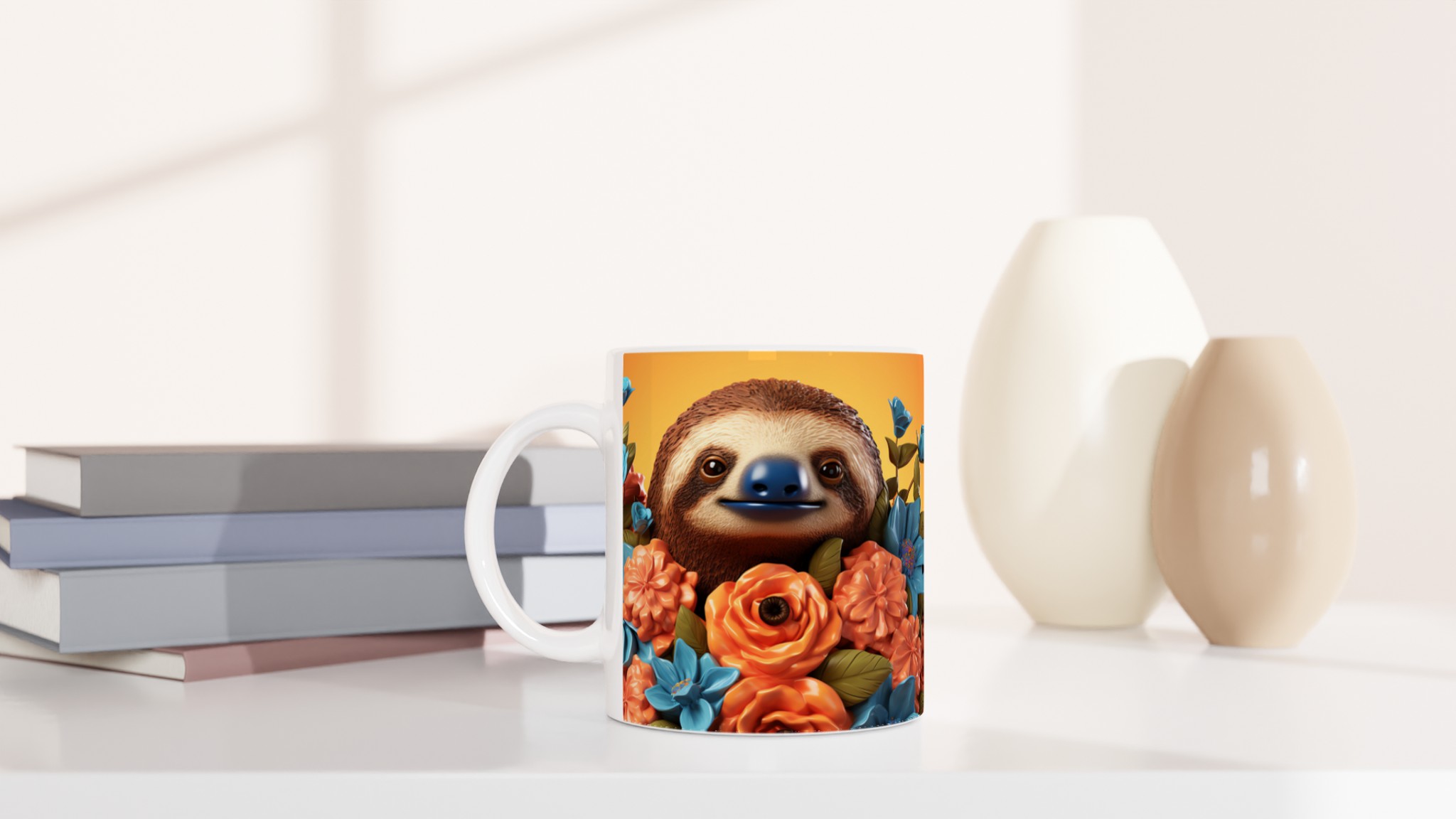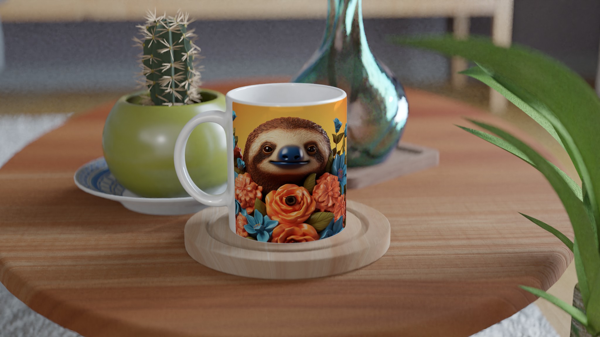 Väck ett leende varje morgon med vår ”Charmig Långsamhet” keramiska mugg! Denna mugg är inte bara en vardagsfavorit – den är en explosion av glädje med sin söta sengångare omgiven av lekfulla, färgglada blommor i nyanser av kungsblått och livfullt orange, allt mot en varmt glödande bakgrund. Perfekt för ditt morgonkaffe, kvällens varma choklad eller när du bara vill njuta av en kopp te med en extra dos charm.