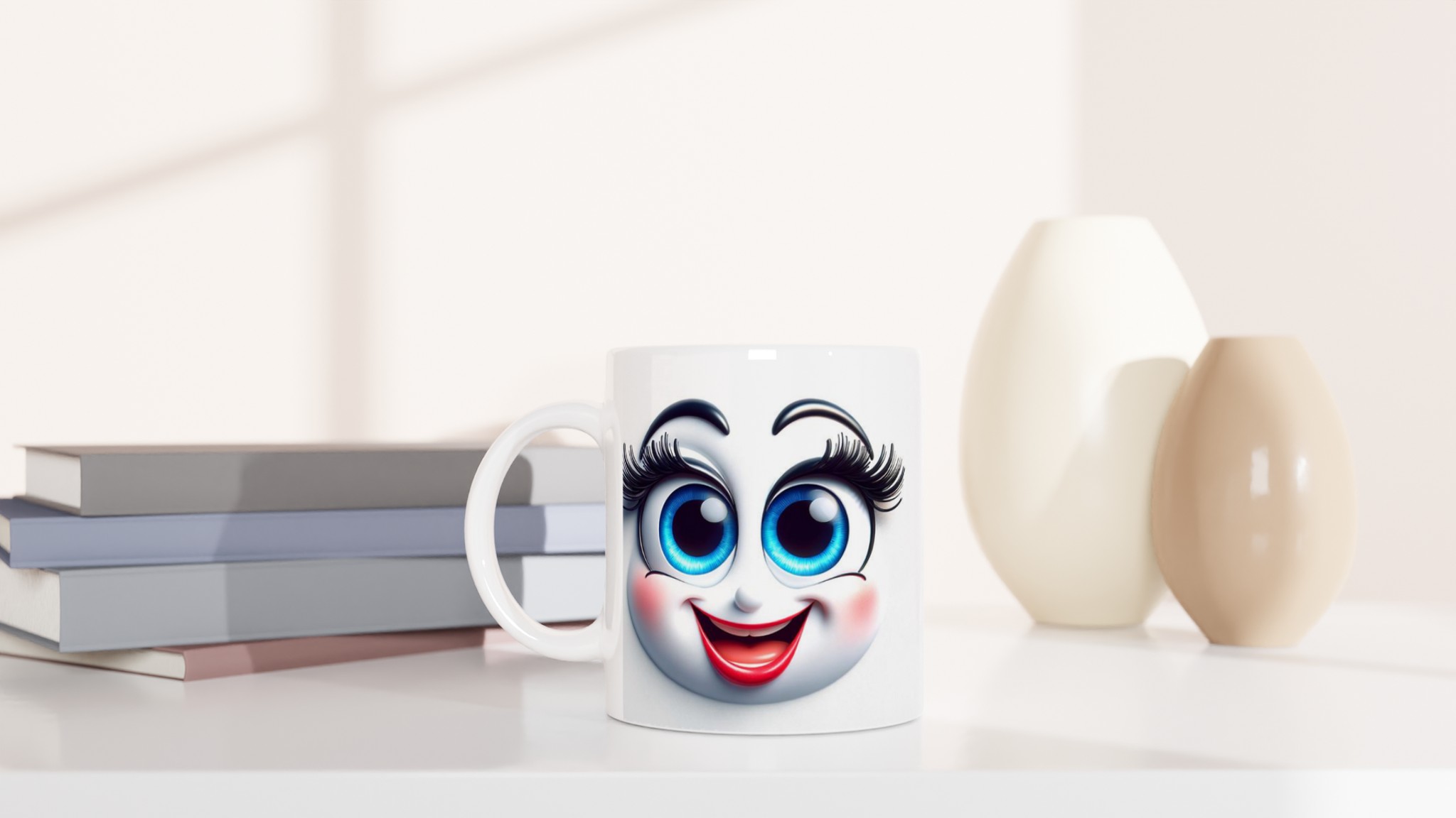 Charmig Tecknad Ansikte Keramisk Mugg – 11oz Vit Premium Mugg med Ditt Motiv