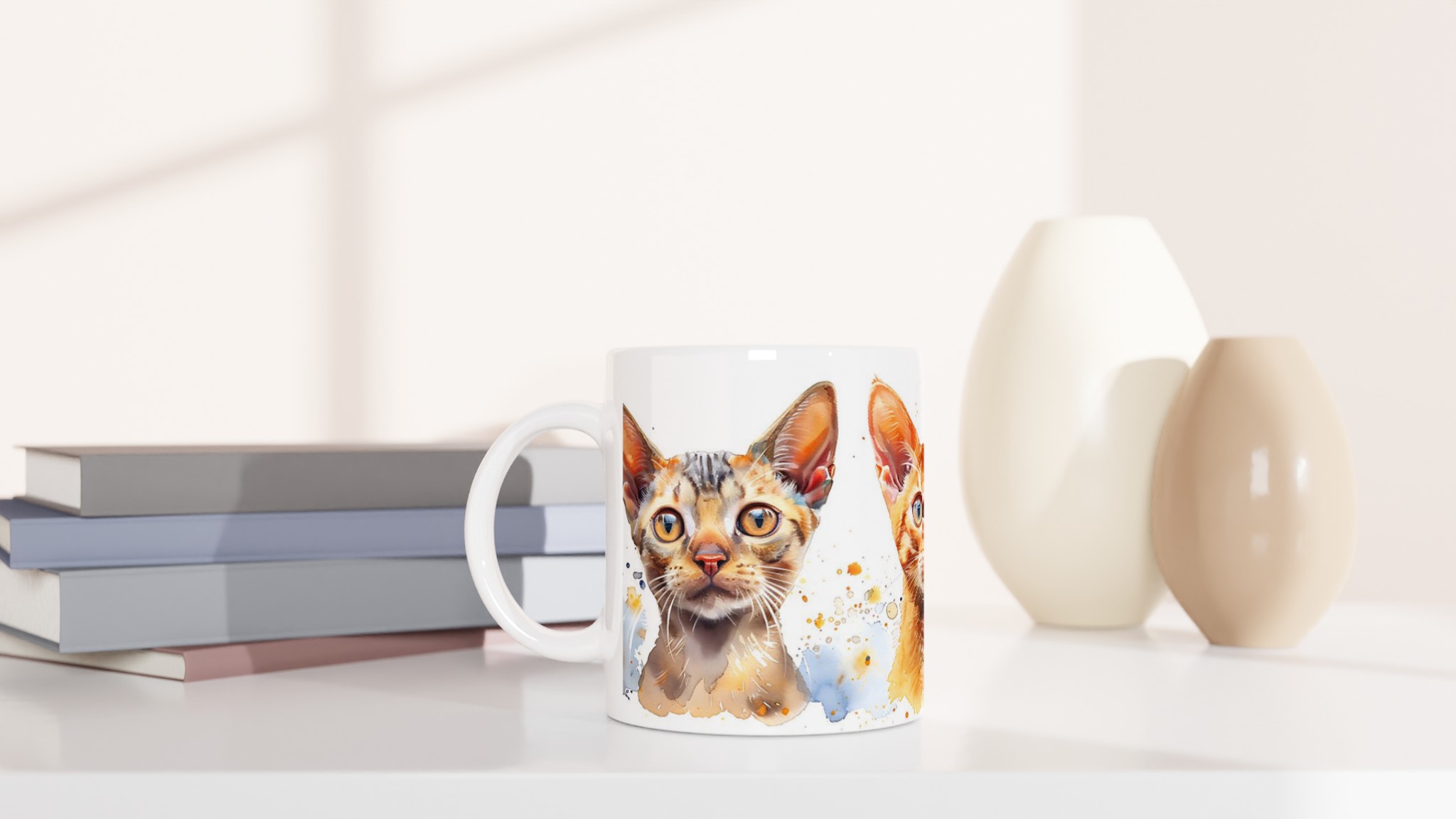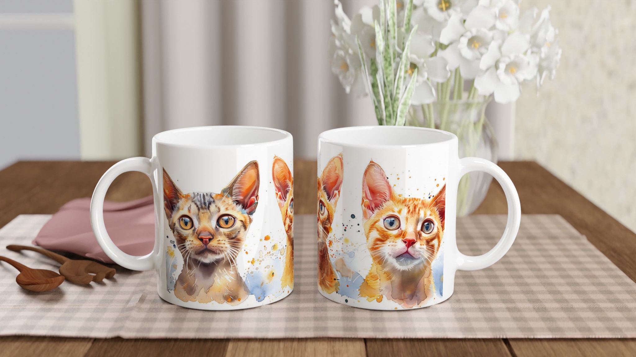 Vakna upp med ett leende och de mest bedårande kattansiktena! Denna unika keramiska mugg, prydd med livfulla akvarellillustrationer av lekfulla katter, blir snabbt din nya vardagsfavorit. Perfekt för morgonkaffet, kvällens varma choklad, eller när du bara vill njuta av en kopp te i sällskap av söta kattkompisar. Den blanka vita ytan framhäver de charmiga kattrycken med klara och levande färger, som håller sig fina även efter många turer i mikron och diskmaskinen.