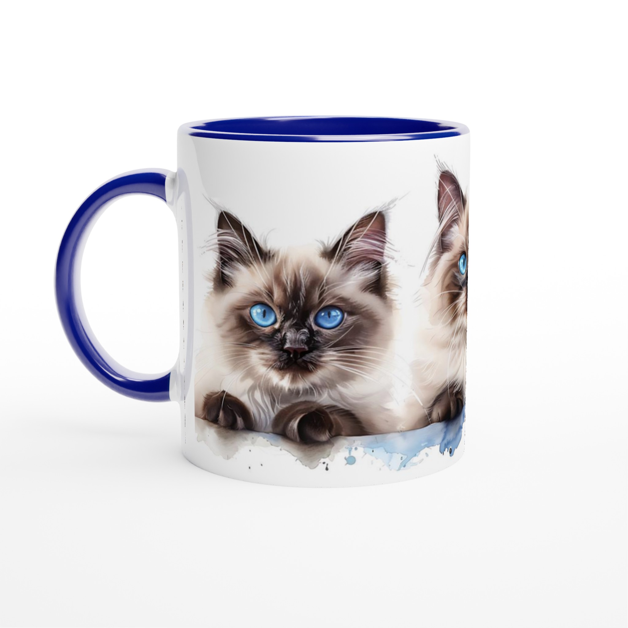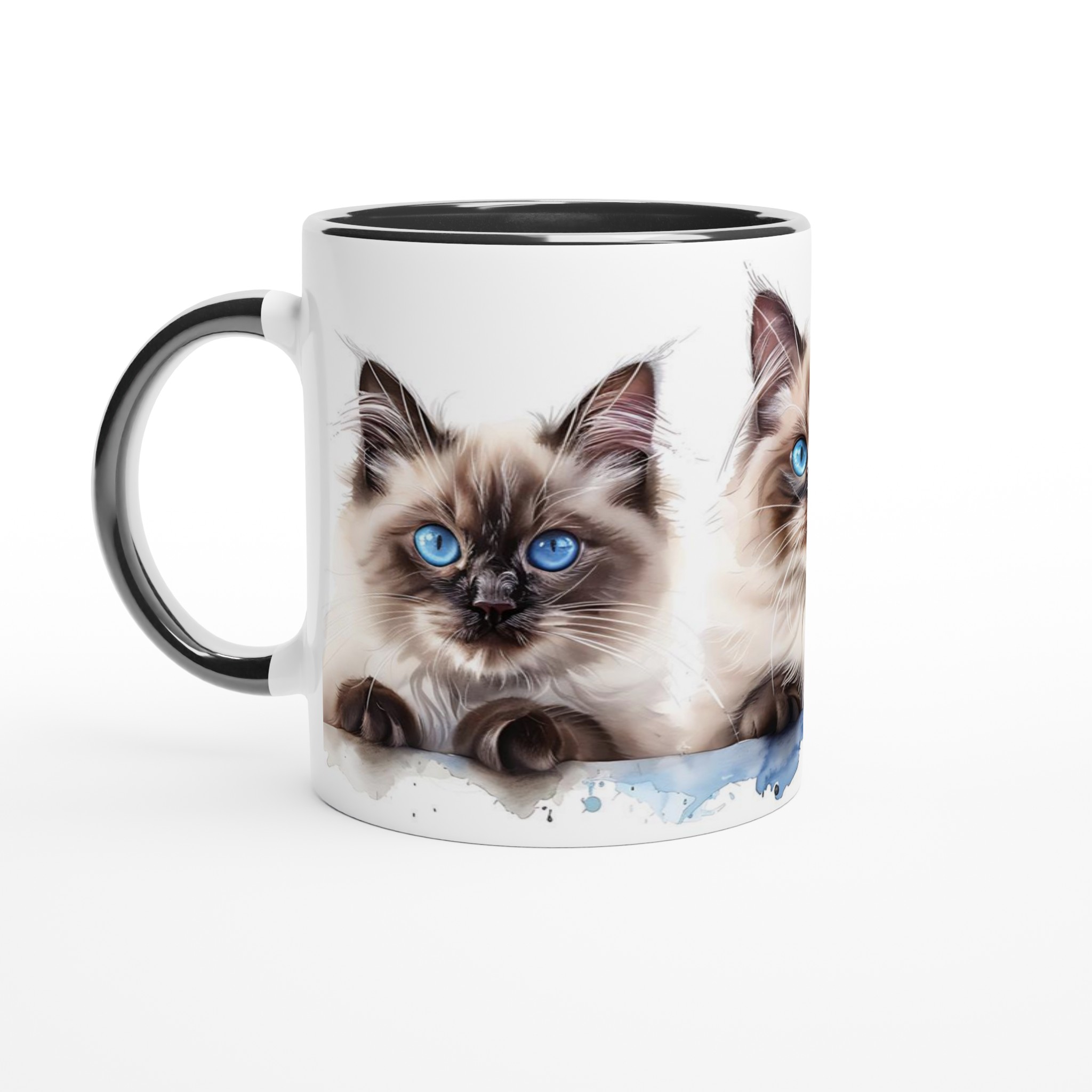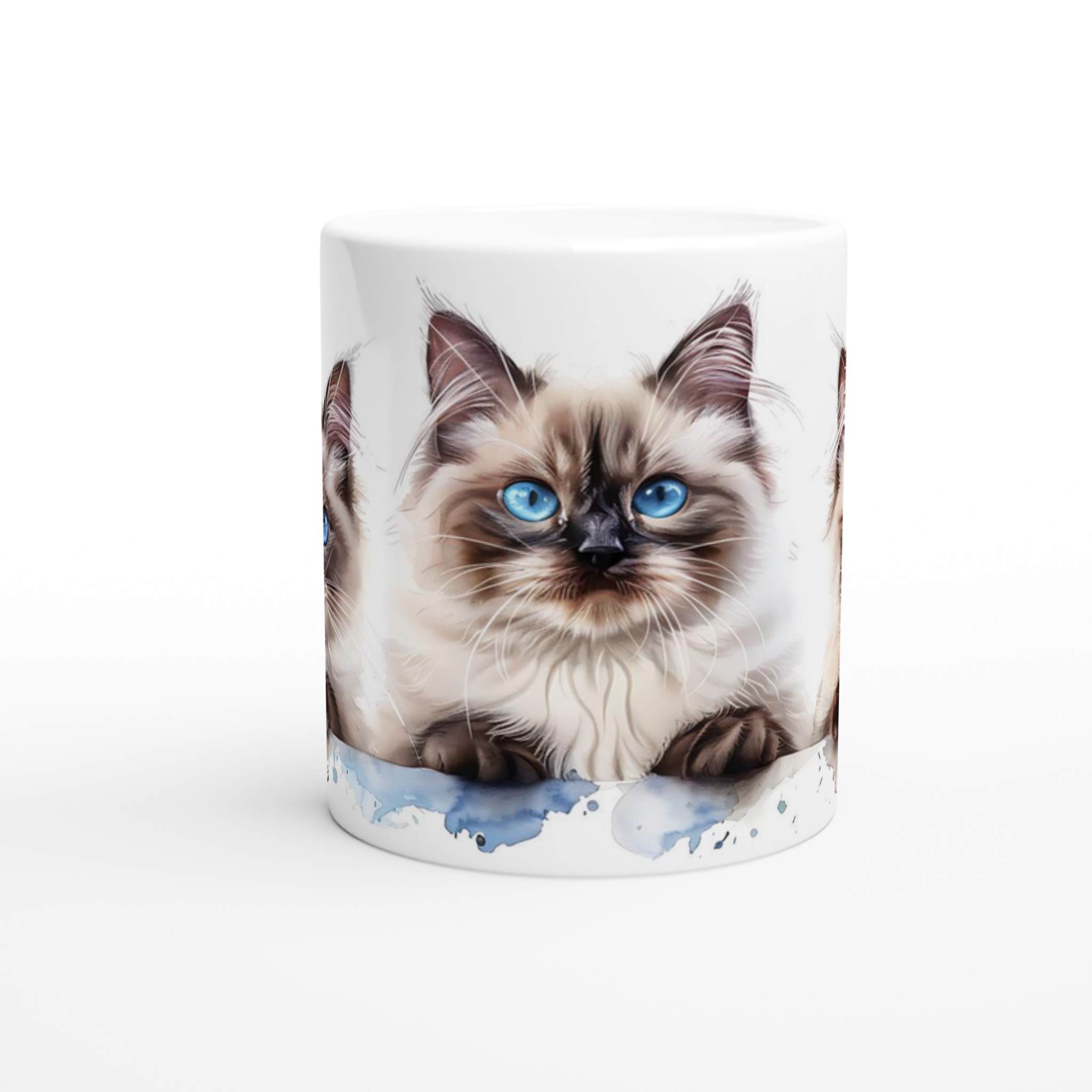Fånga den oemotståndliga charmen med våra lurviga vänner varje gång du tar en klunk! Denna stilrena keramiska mugg, prydd med en förtrollande illustration av tre blåögda kattungar i akvarellstil, blir snabbt en vardagsfavorit. Perfekt för morgonkaffet, kvällens varma choklad eller när du bara vill njuta av en kopp te. De lekfulla kattungarna och den subtila akvarellen ger en konstnärlig touch som livar upp varje dryck. Den blanka vita ytan gör att trycken framhävs med klara och levande färger, som håller sig fina även efter många turer i mikron och diskmaskinen.