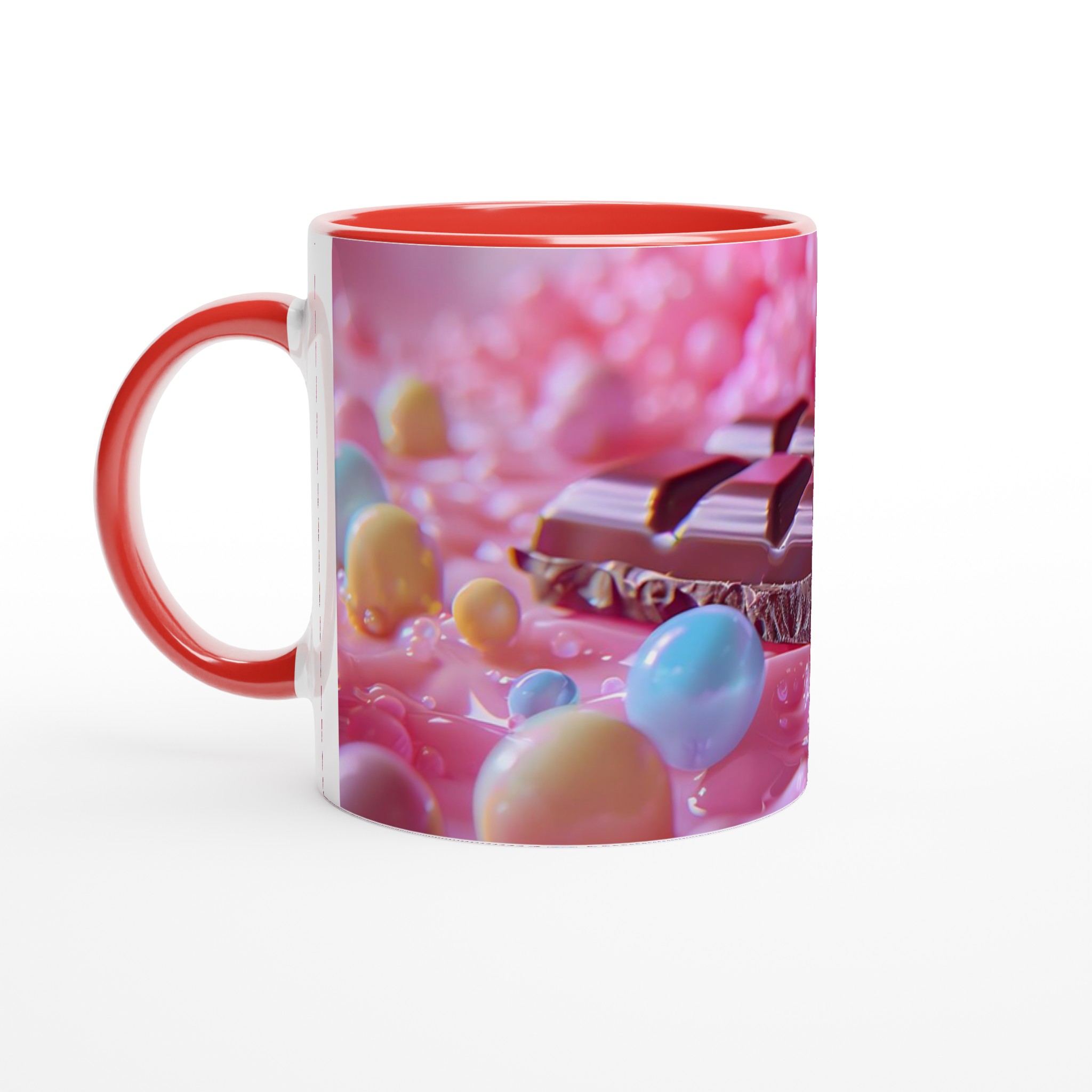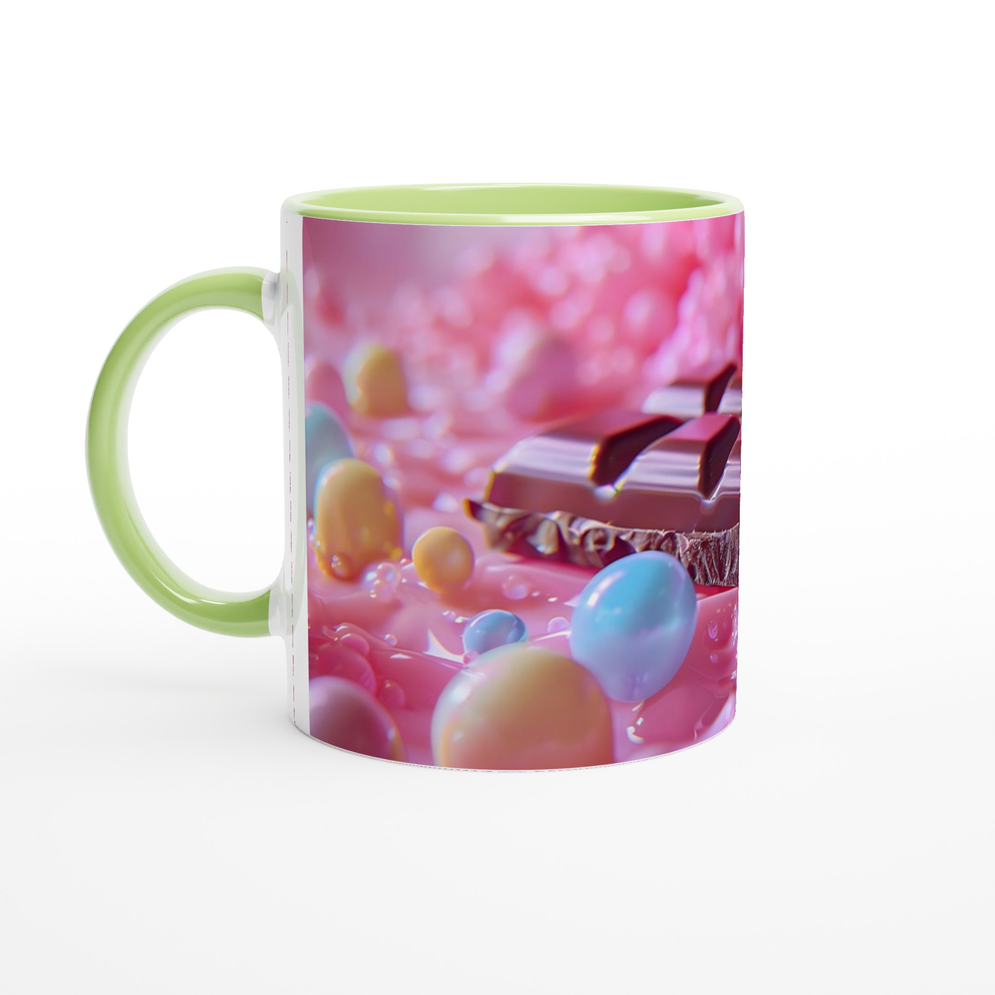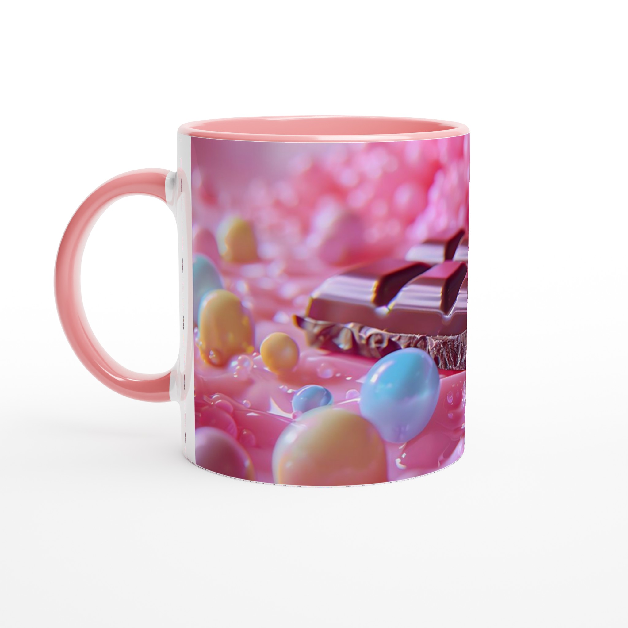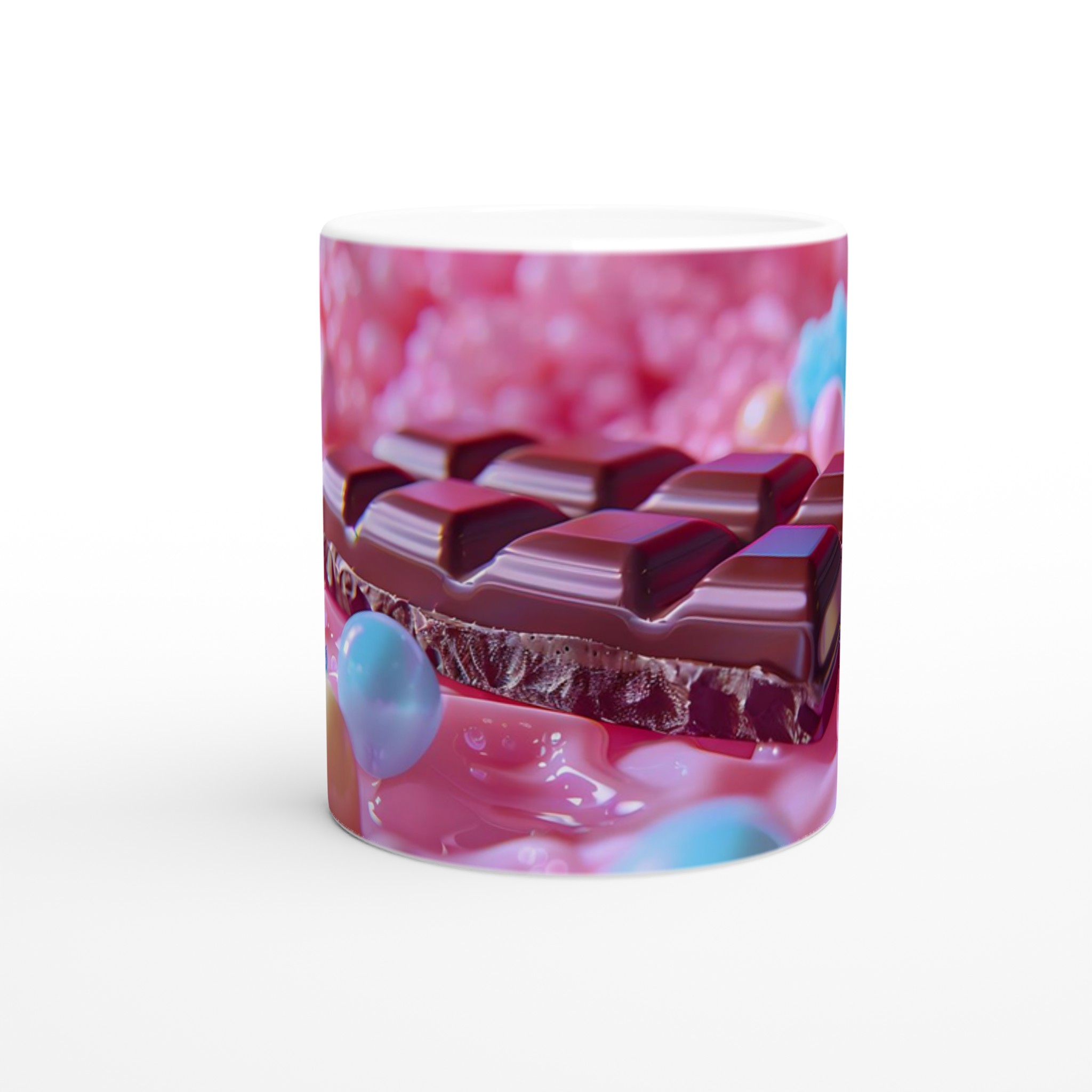 Låt varje fikastund bli en chokladdröm med denna lekfulla keramiska mugg! Inspirerad av söta godsaker och mjuka pasteller, blir denna mugg snabbt en vardagsfavorit. Perfekt för ditt morgonkaffe, kvällens varma choklad som på bilden, eller när du bara vill njuta av en kopp te i en mugg som sprider glädje. Den blanka ytan framhäver tryck med klara och levande färger, som håller sig fina även efter många turer i mikron och diskmaskinen.