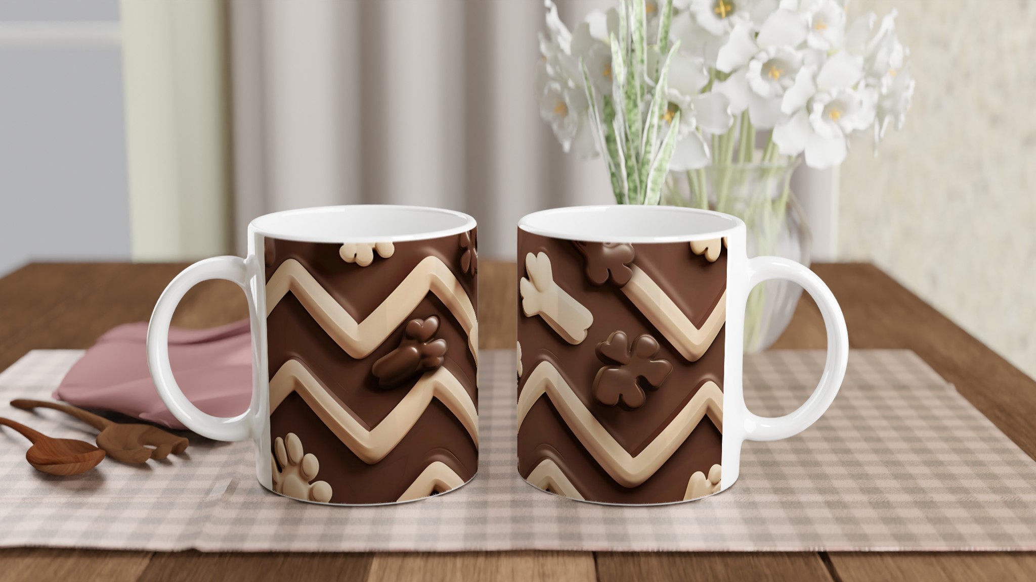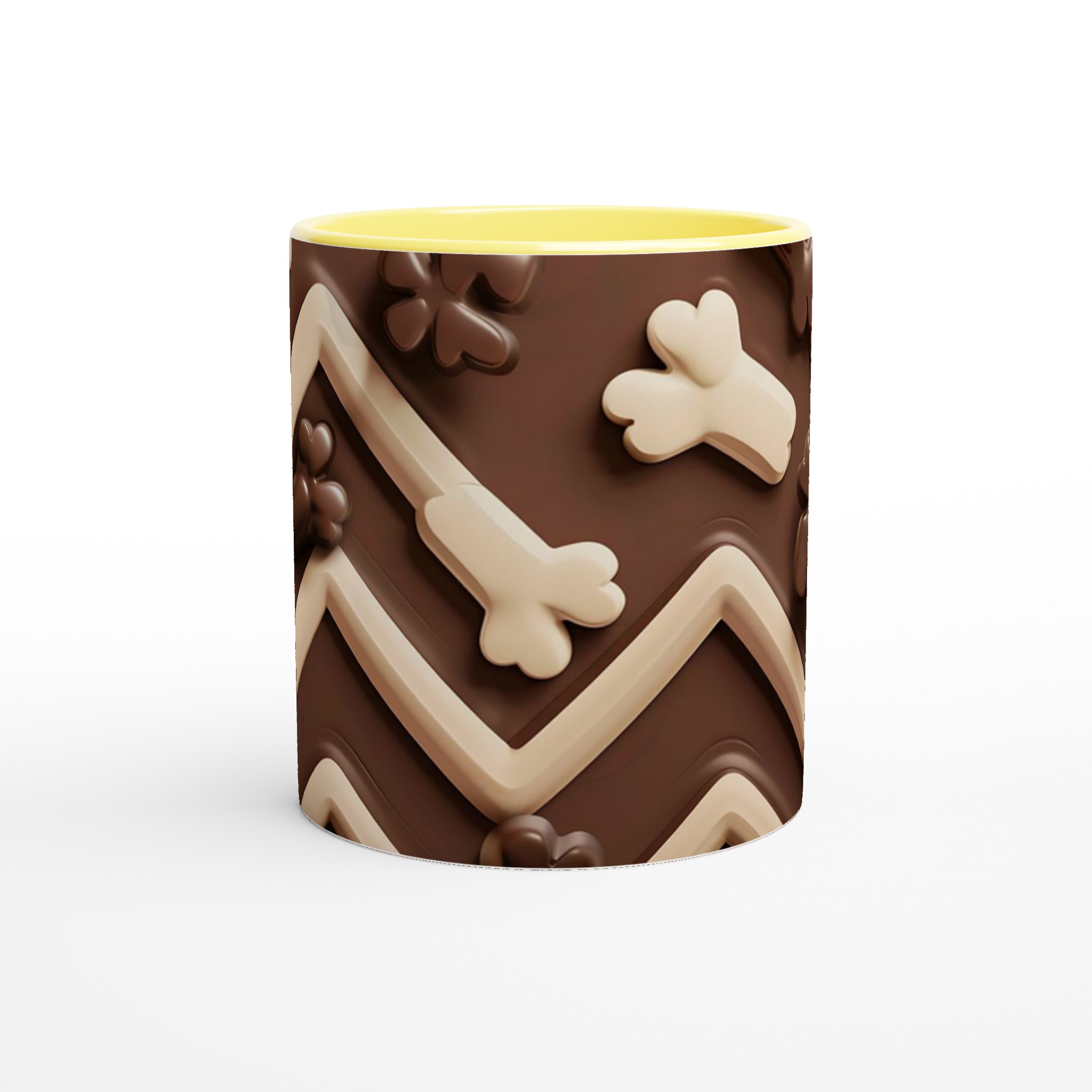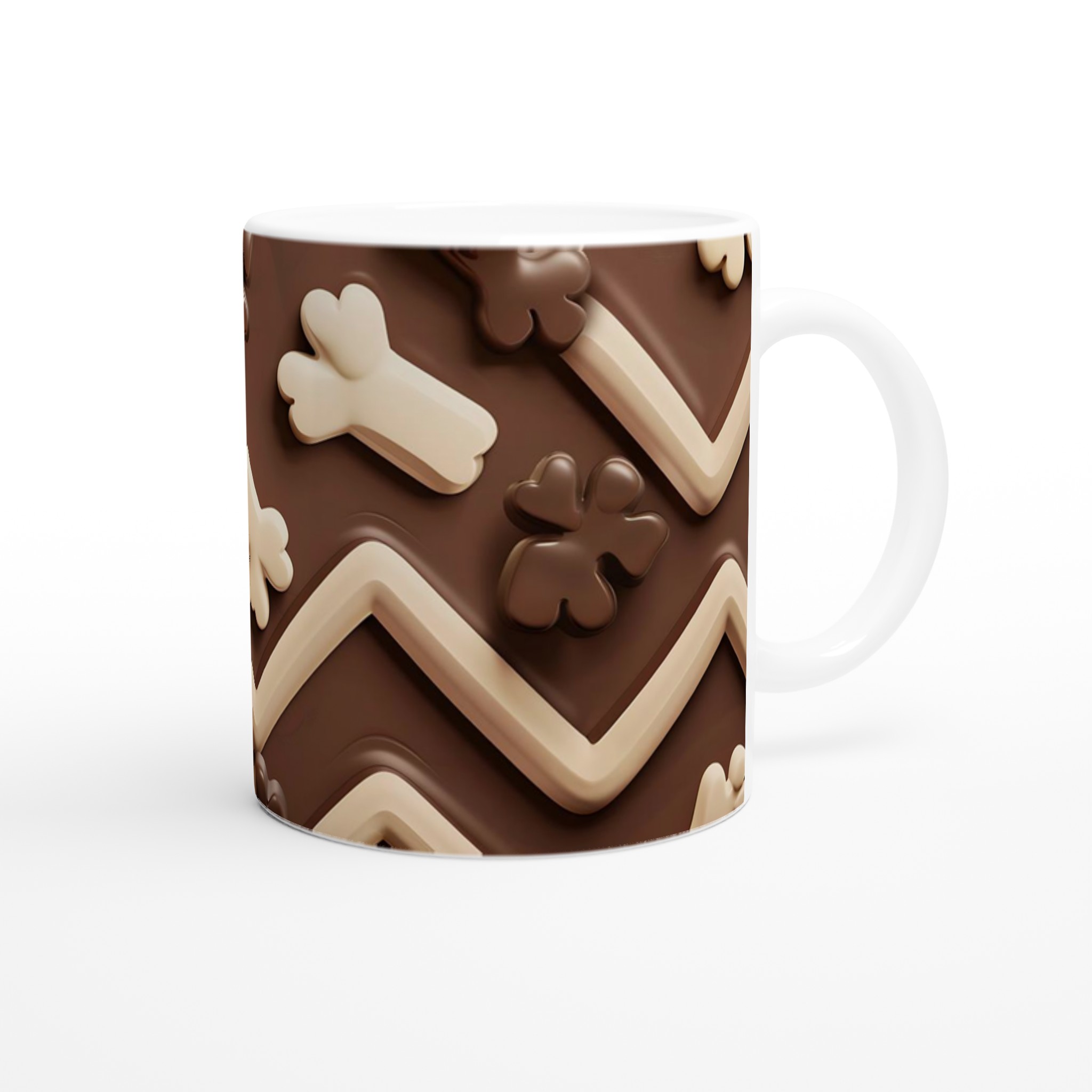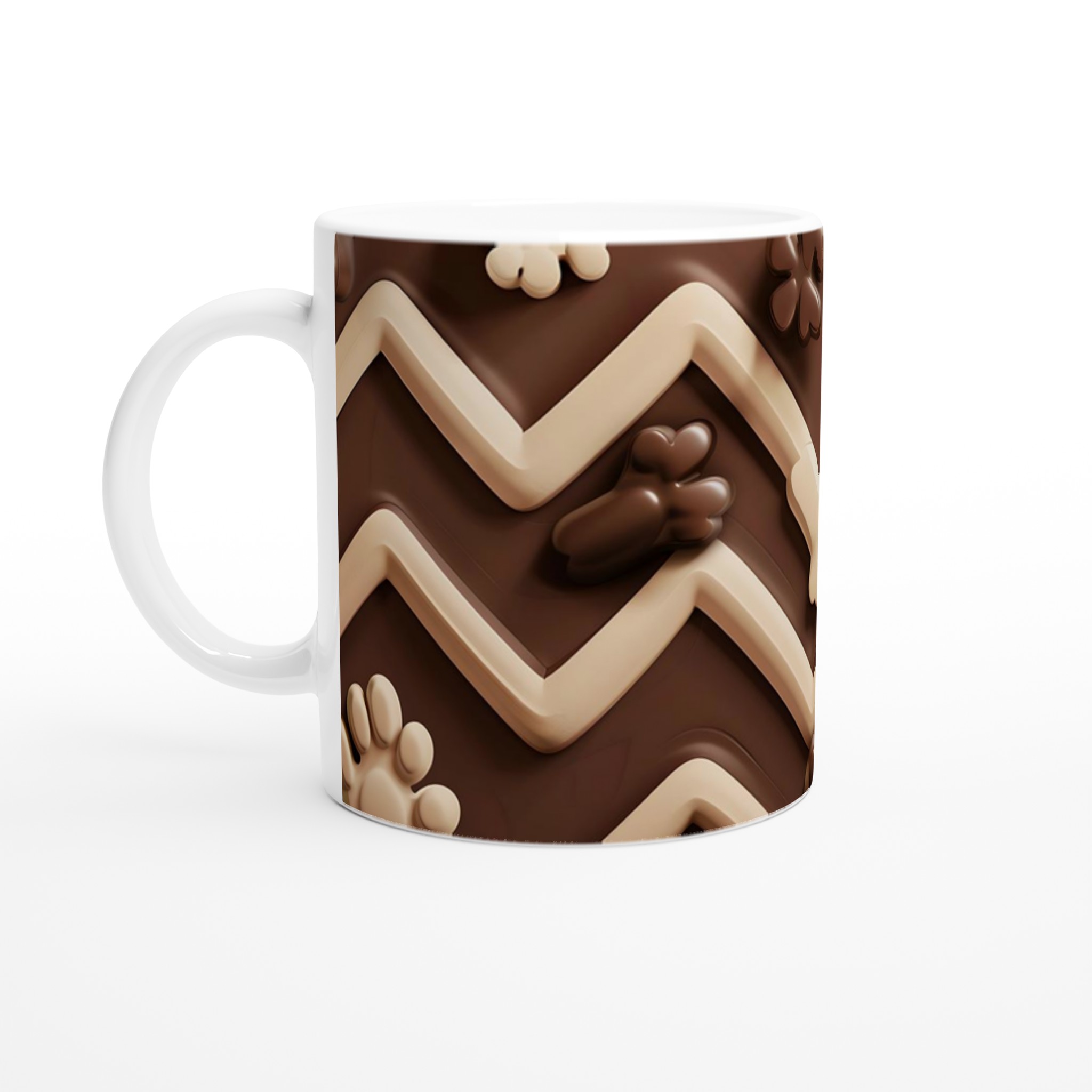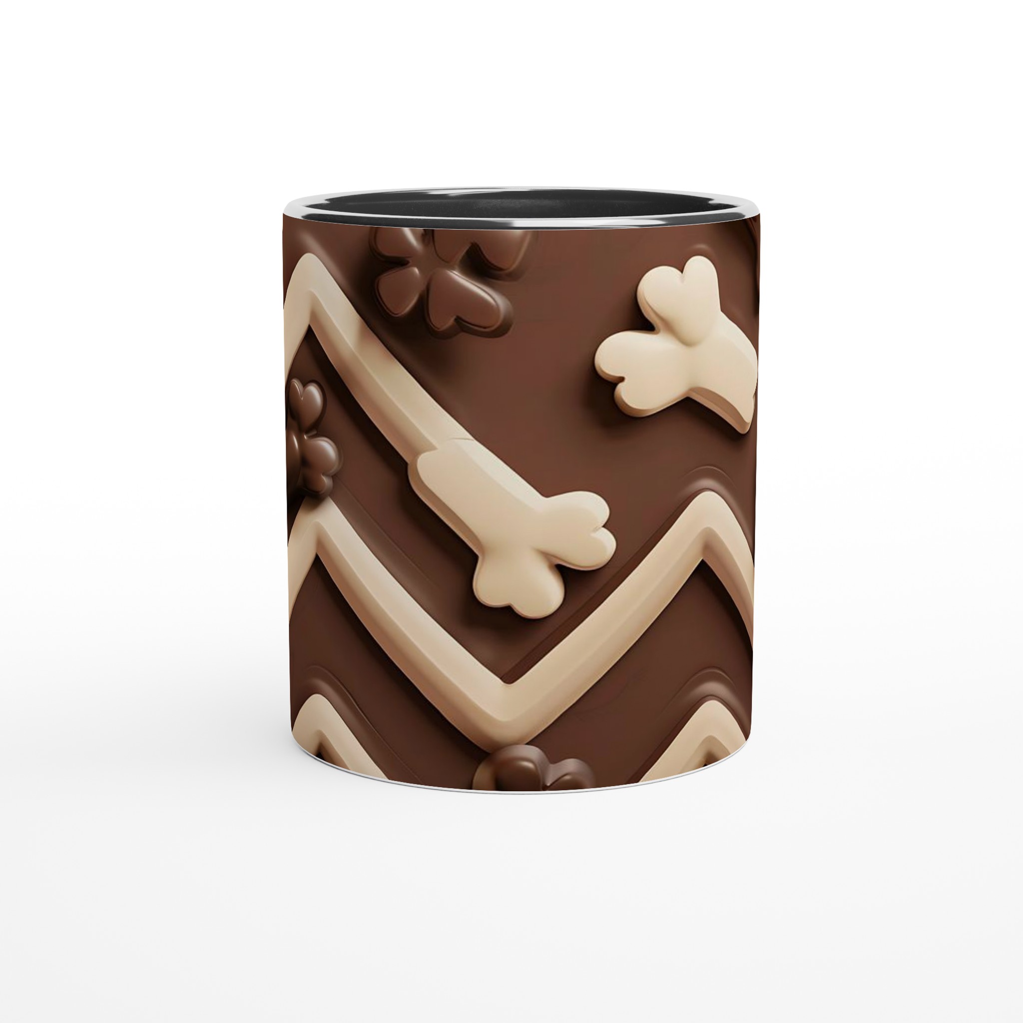 Vakna upp till en chokladig dröm varje morgon med denna härliga keramikmugg! Inspirerad av lena, krämiga chokladtoner och lekfulla former, är denna mugg den perfekta följeslagaren för att förgylla alla dagens stunder – vare sig det är morgonkaffet, en värmande kopp te eller en härlig varm choklad. Den blanka vita ytan framhäver trycken klart och färgstarkt, vilket gör muggen till en riktig favorit i vardagen.