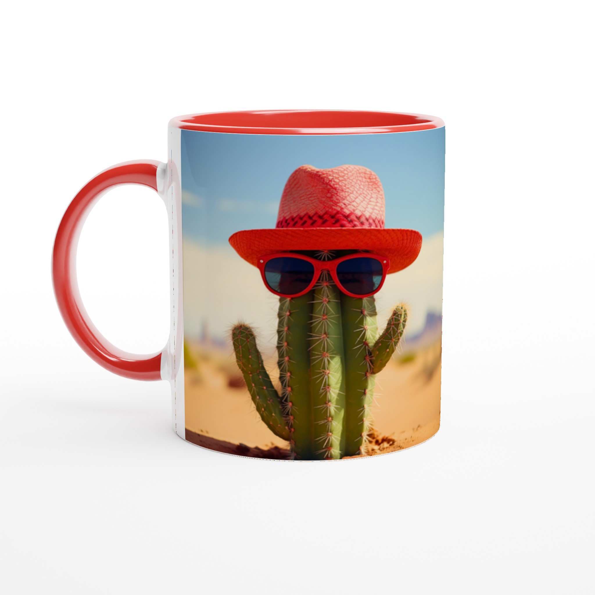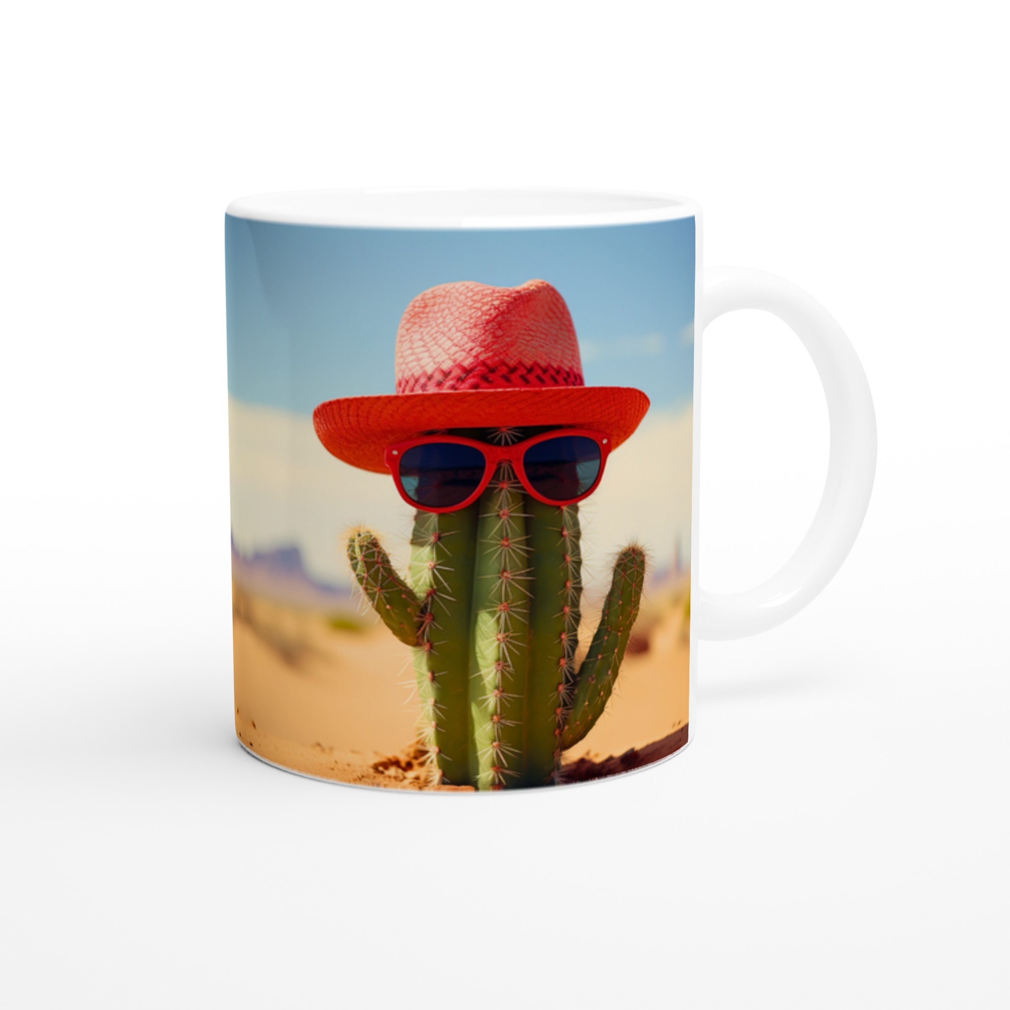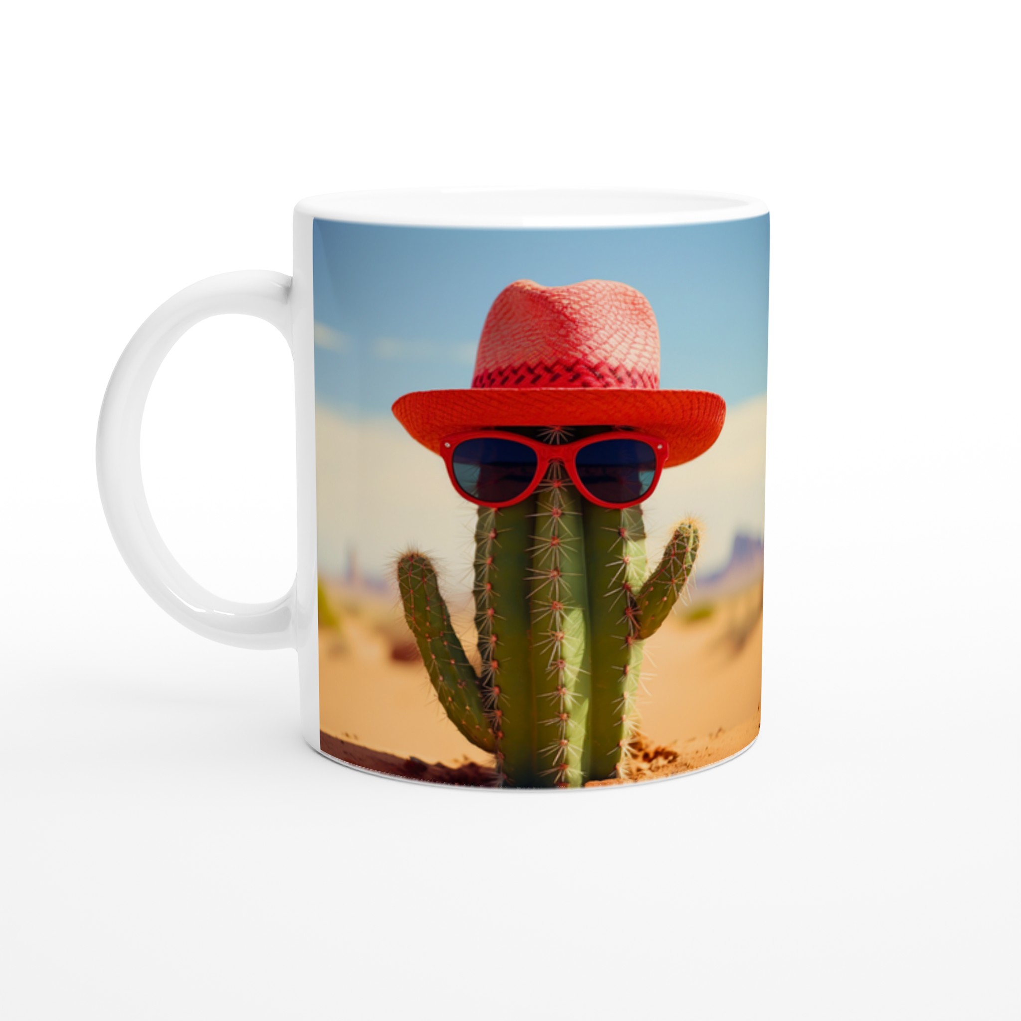 Ge dina dryckesstunder en extra dos solsken med denna roliga keramiska mugg! Föreställ dig en kaktus som rockar en röd hatt och coola solglasögon – det är exakt den glada, unika vibben den här muggen tillför din dag. Perfekt för morgonkaffet, en uppfriskande drink under soliga dagar, eller när du bara vill njuta av en kopp te med ett leende.