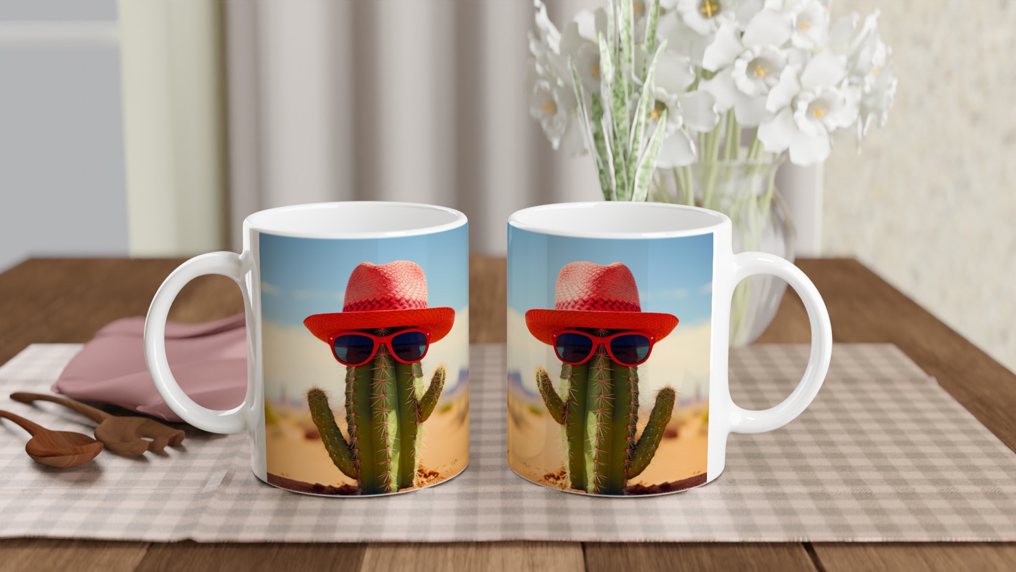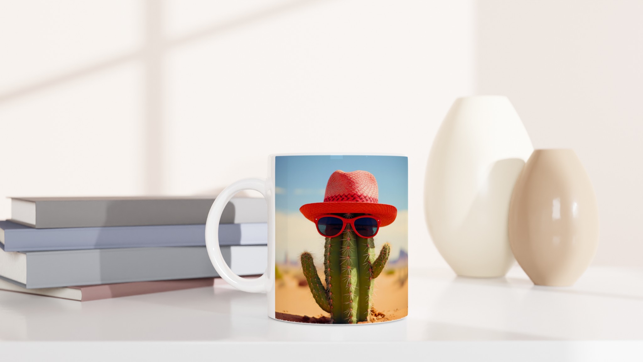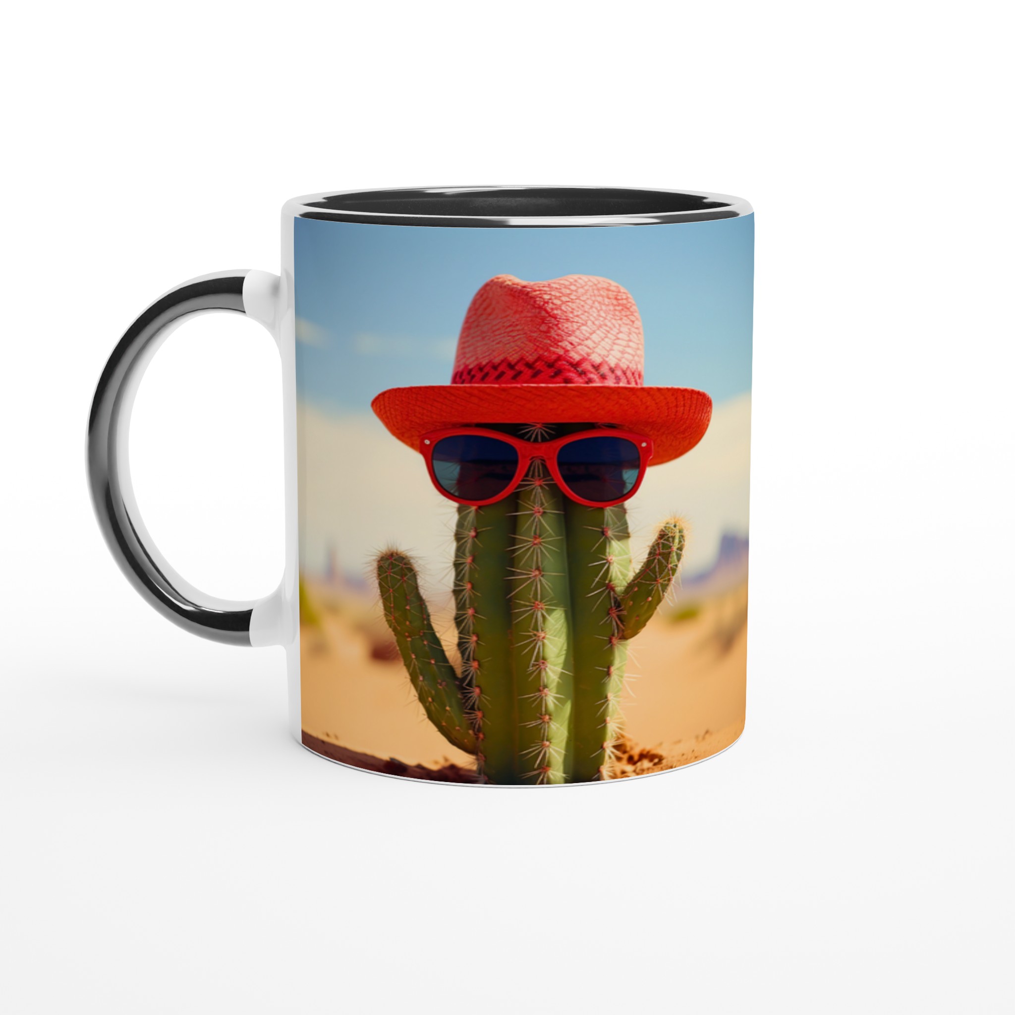 Ge dina dryckesstunder en extra dos solsken med denna roliga keramiska mugg! Föreställ dig en kaktus som rockar en röd hatt och coola solglasögon – det är exakt den glada, unika vibben den här muggen tillför din dag. Perfekt för morgonkaffet, en uppfriskande drink under soliga dagar, eller när du bara vill njuta av en kopp te med ett leende.