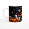Den blanka vita ytan gör att trycken framträder klart och färgstarkt, vilket gör muggen till en riktig favorit i vardagen. Tack vare den höga kvaliteten behåller trycket sin lyster även efter många omgångar i både mikrovågsugn och diskmaskin. Muggen rymmer 11 oz (ca 3,25 dl), en lagom storlek för både jobb och hemmabruk. Den passar lika bra som en personlig vardagsmugg som en uppskattad present till familj, vänner eller kollegor som älskar katter och färgstark design.