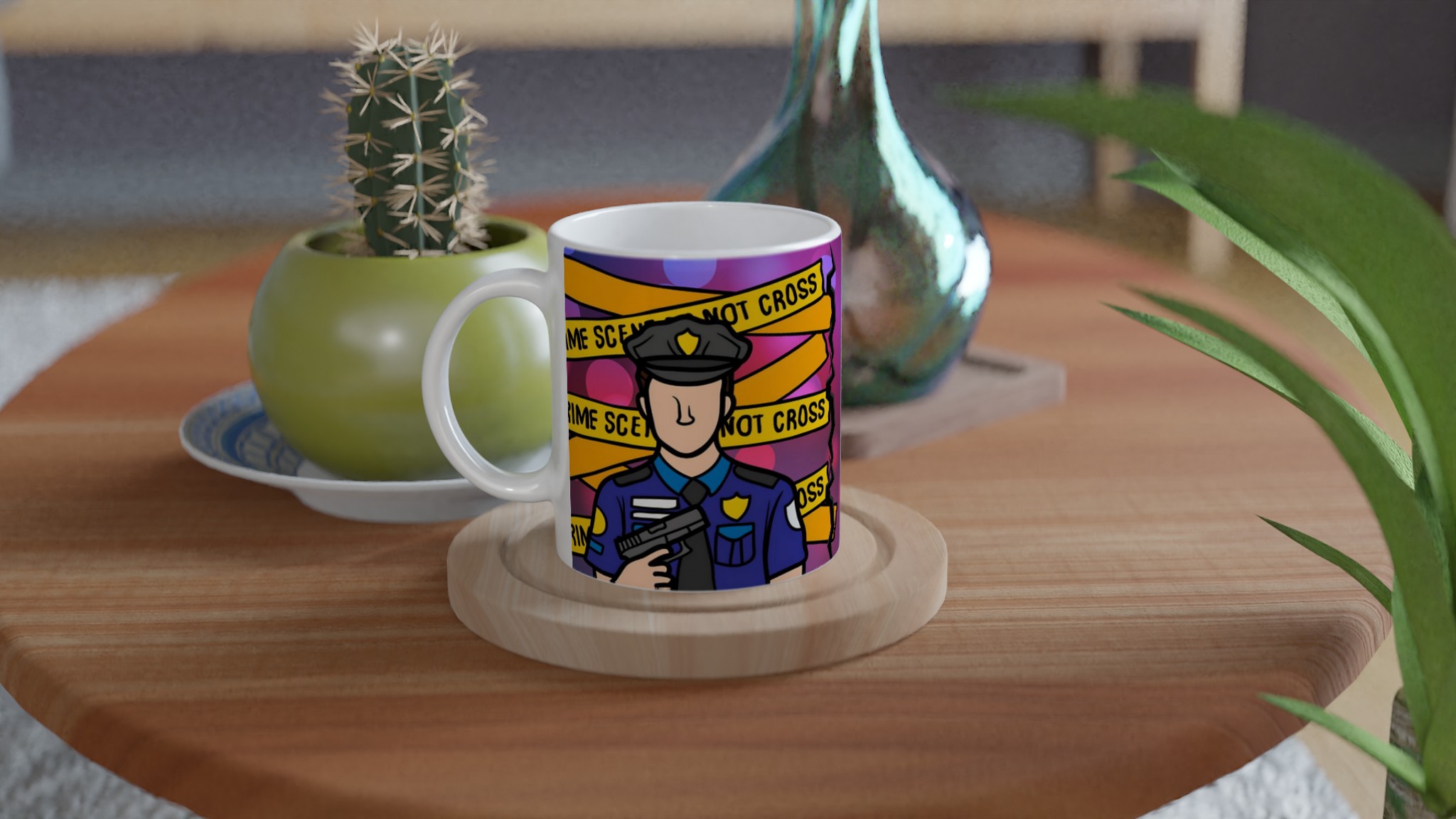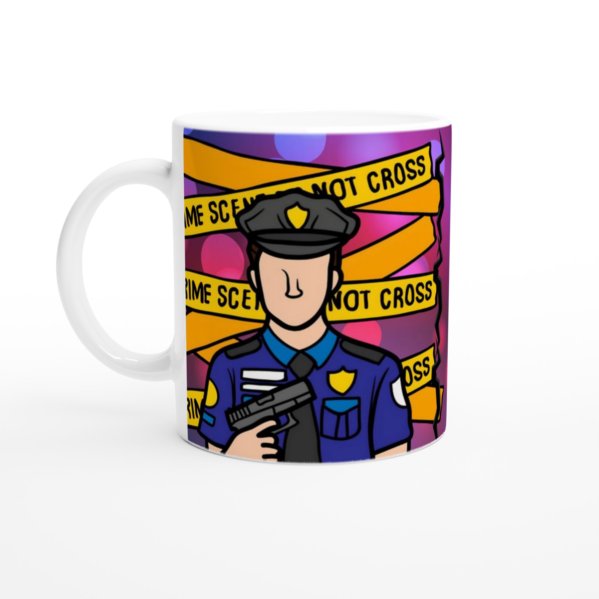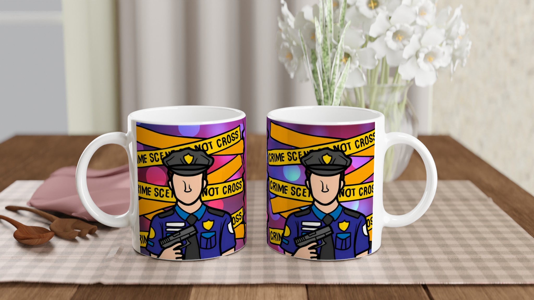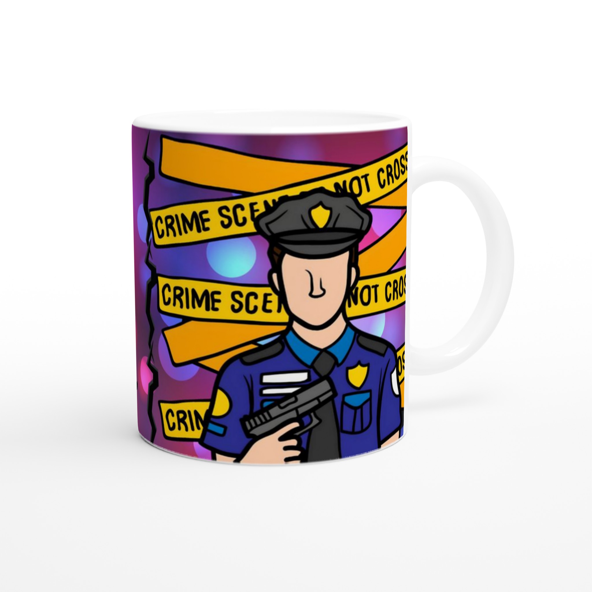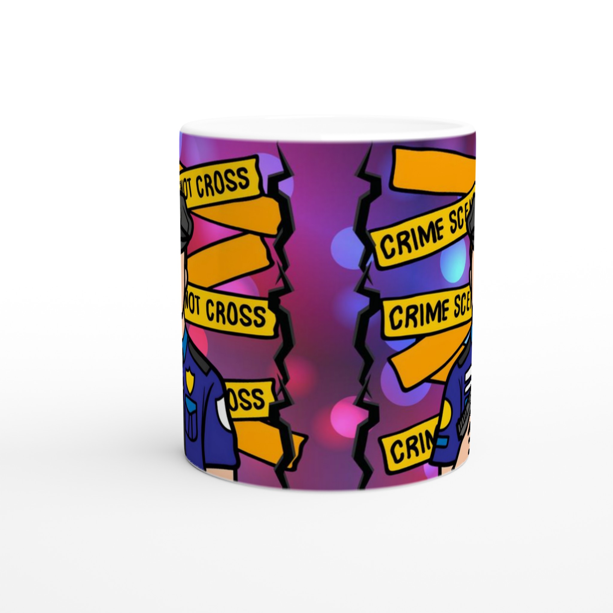 Ta en paus från vardagsmysterierna med vår unika ”Crime Scene” keramiska mugg. Denna mugg, prydd med en stiliserad polisman och klassisk ”CRIME SCENE DO NOT CROSS”-tejp mot en pulserande, bokeh-upplyst bakgrund, är den perfekta konversationsstartaren för alla kaffe- eller teälskare med ett öga för det dramatiska. De klara, livfulla färgerna och den blanka ytan får trycket att verkligen sticka ut, och håller sig snygga även efter otaliga turer i mikron och diskmaskinen.