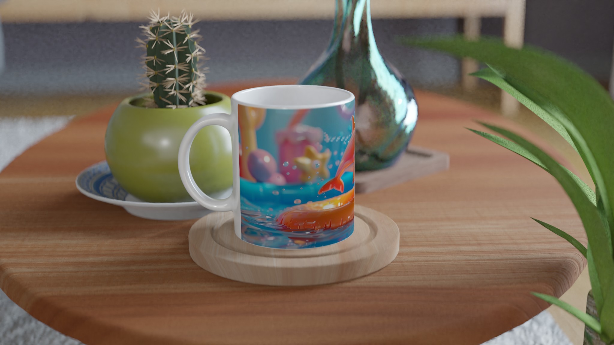 Fånga glädjen och lekfullheten från sommarens äventyr med vår charmiga keramiska mugg. Varje klunk blir en påminnelse om soliga dagar och plaskande skoj, inspirerad av en söt, lekfull delfin. Denna mugg blir snabbt en favorit, perfekt för morgonkaffet, kvällens varma choklad eller när du bara vill njuta av en kopp te.