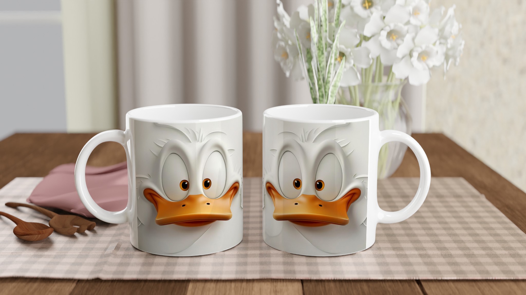 Lyft varje kaffestund med vår premium keramikmugg – stilren, hållbar och skapad för att låta ditt motiv glänsa. Inspirerad av den ikoniska och älskade karaktären, fångar denna mugg den lekfulla charmen och den distinkta looken av allas favoritanka, Donald Duck. Den blanka vita ytan ger ett skarpt och levande tryck som verkligen sticker ut, oavsett om det är en personlig design, ett roligt citat eller en present till någon du tycker om.
