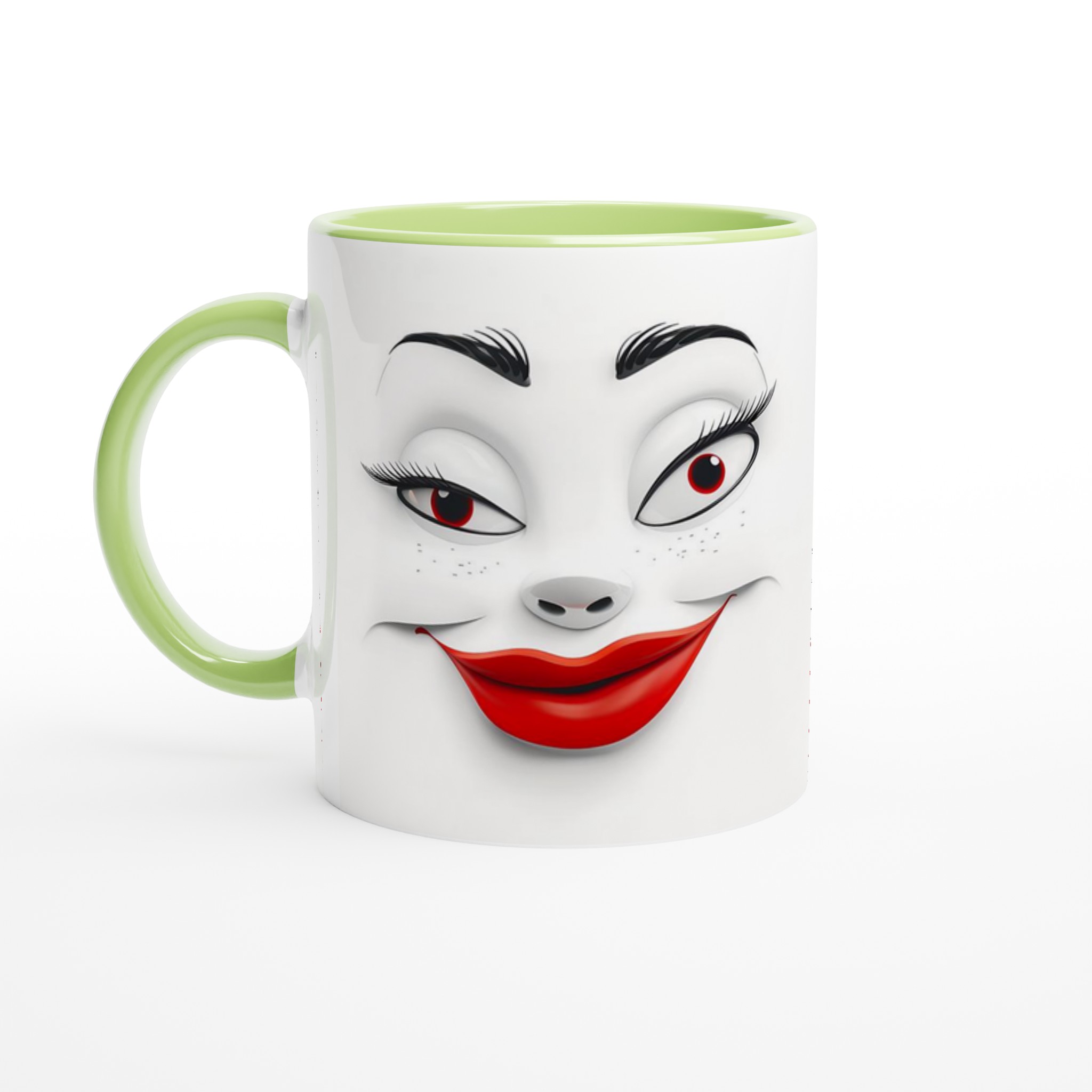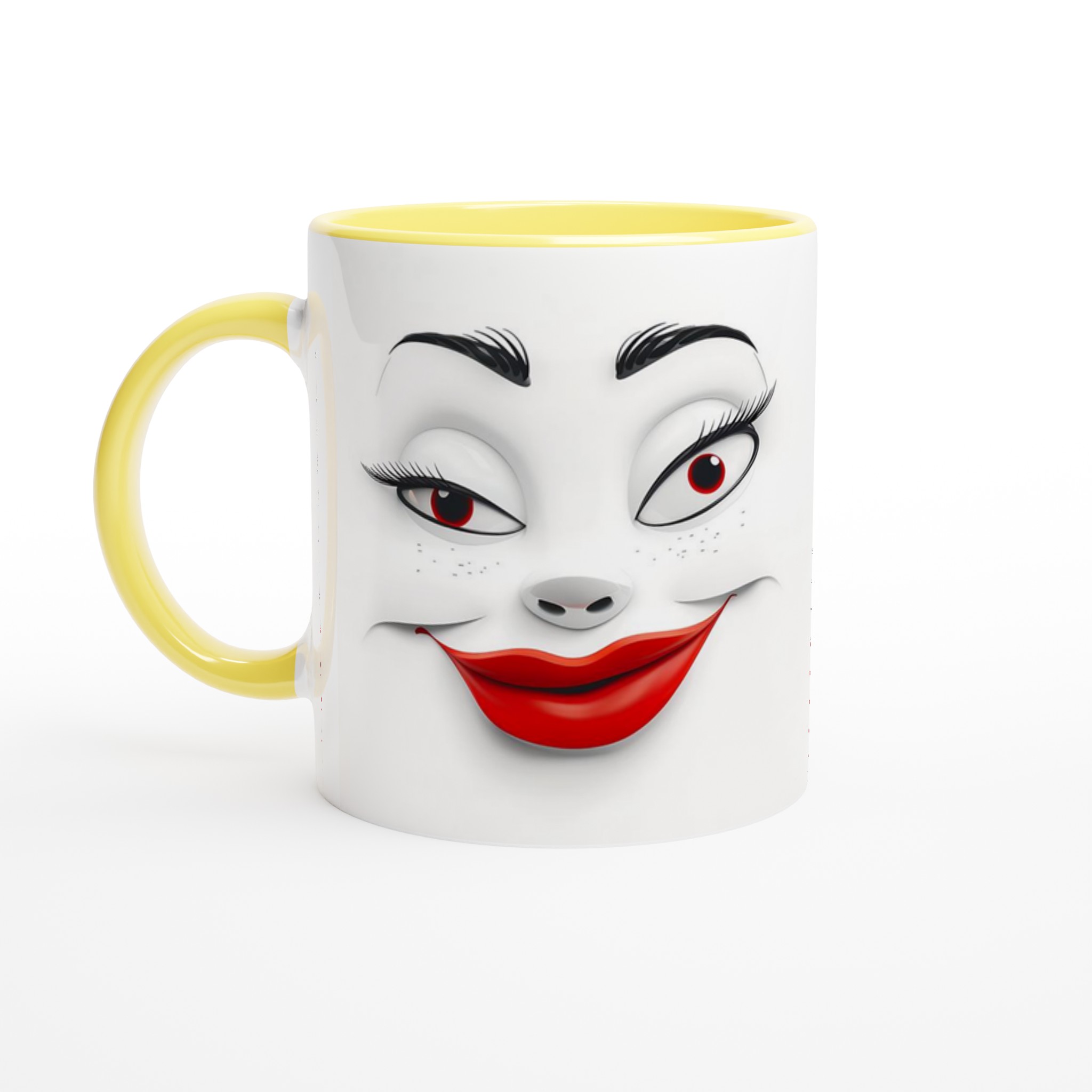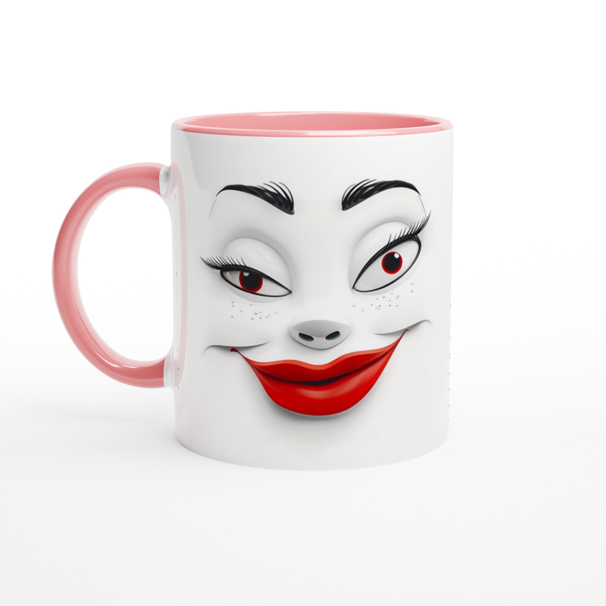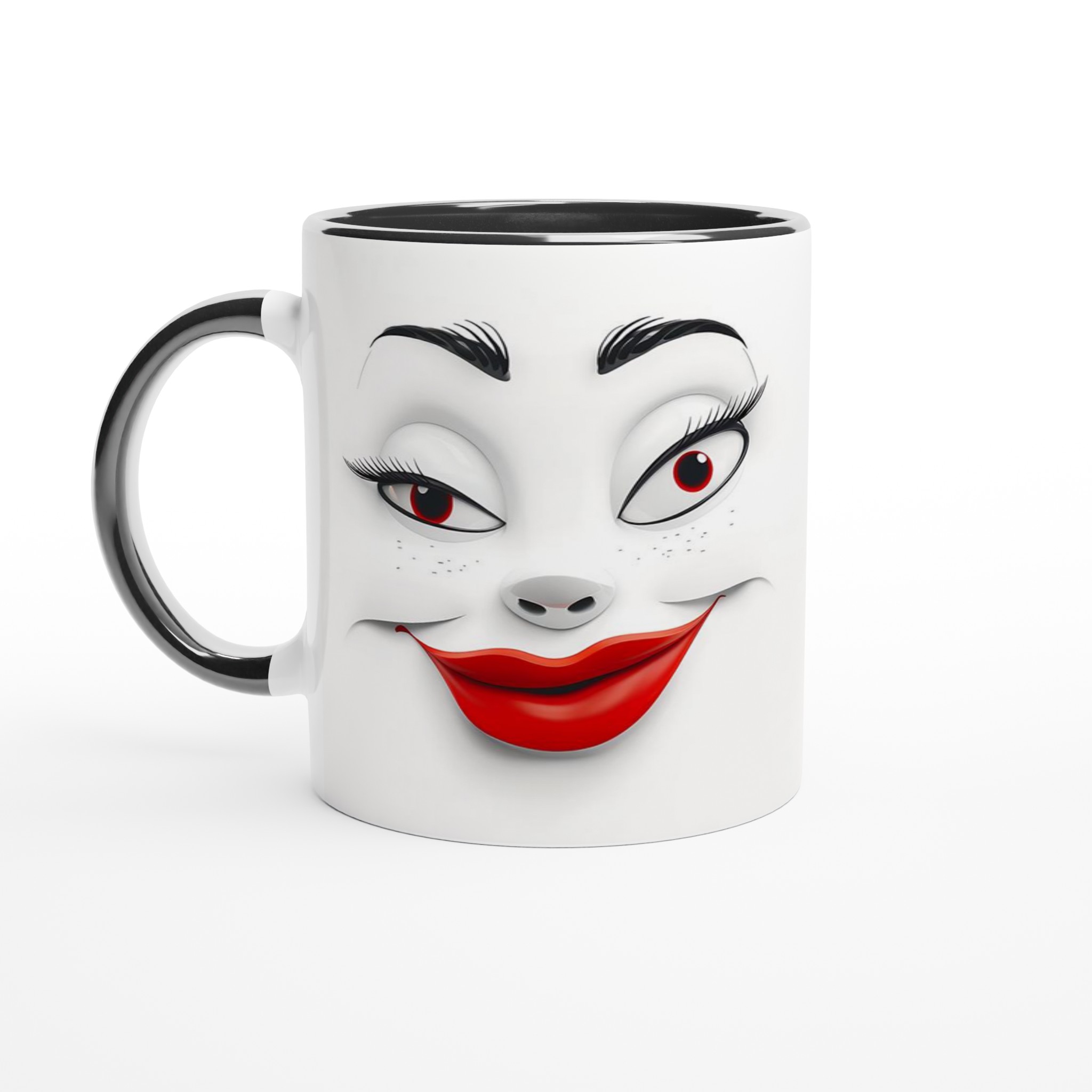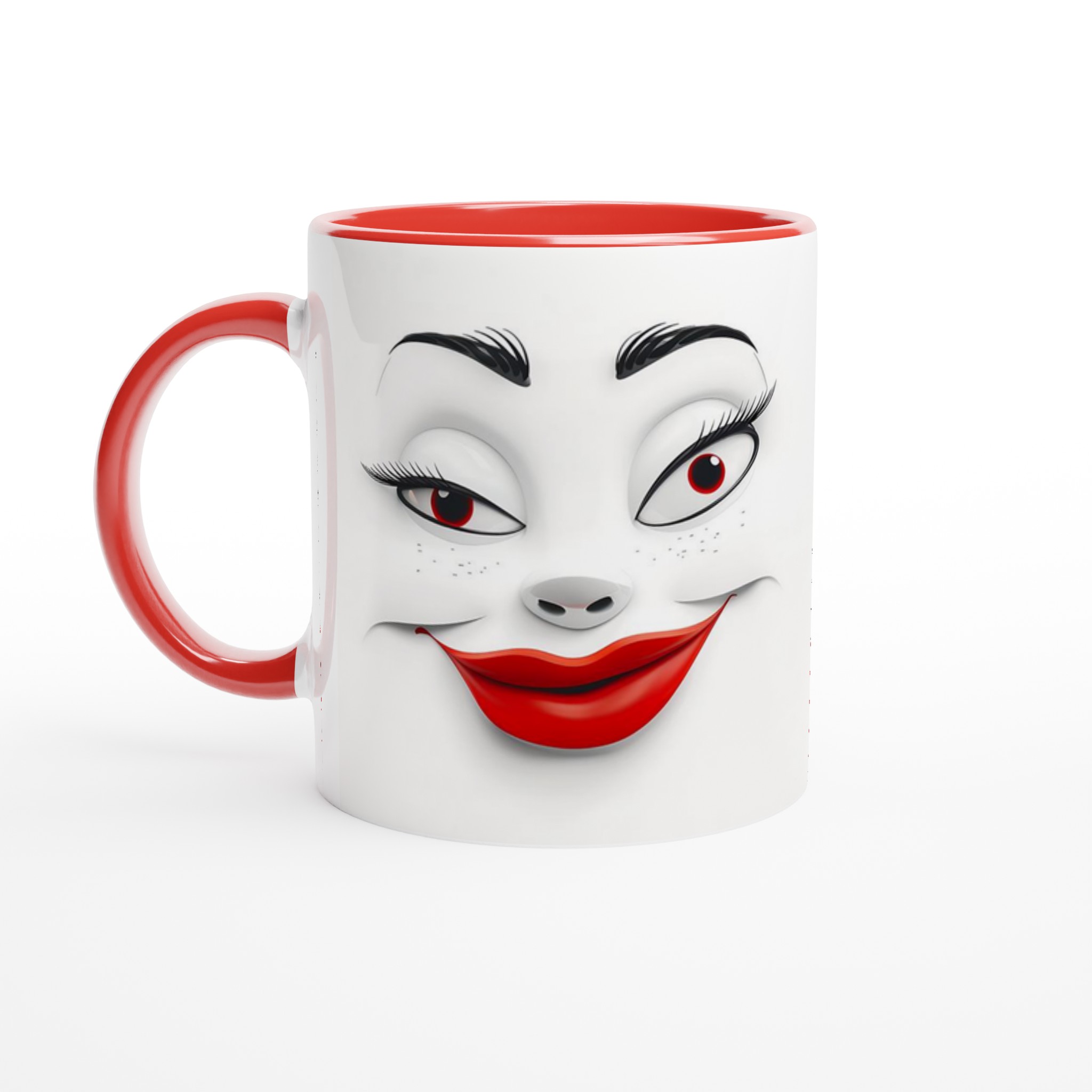Inspirerad av den lekfulla, uttrycksfulla designen med ögon som fångar blicken och läppar i djärvt rött, blir denna mugg en konversationsstartare. Den blanka vita ytan ger ett skarpt och levande tryck som verkligen sticker ut, oavsett om det är en personlig design, ett roligt citat eller en present till någon du tycker om.