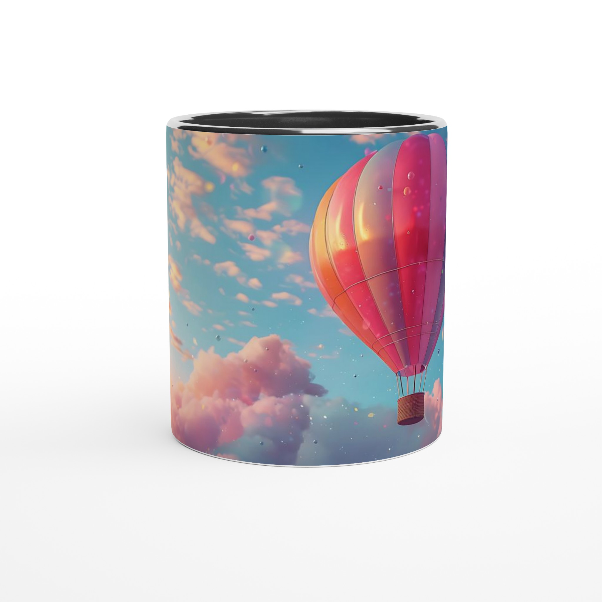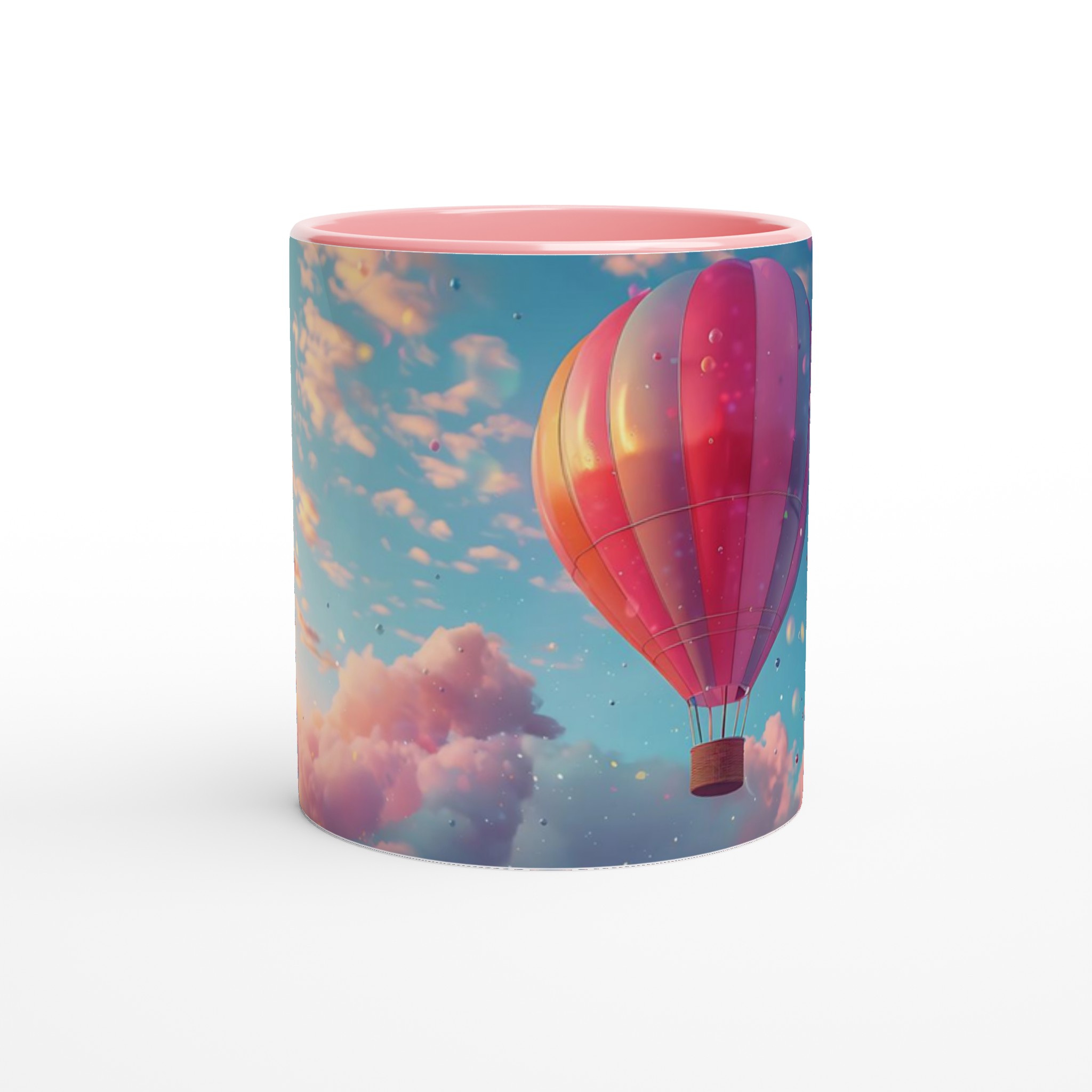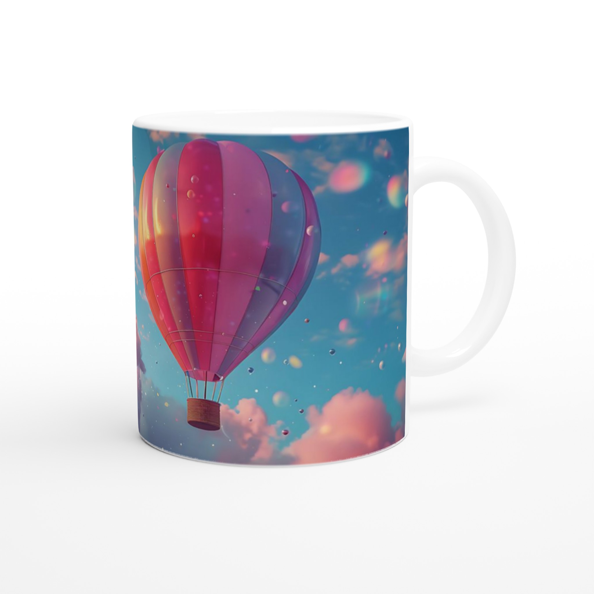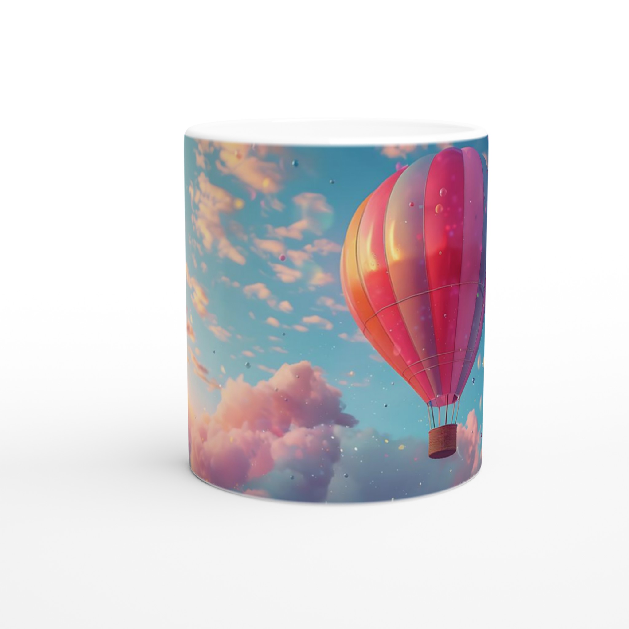 Lyft din vardag med denna underbara keramiska mugg, inspirerad av en magisk solnedgång med en majestätisk varmluftsballong svävande bland drömska rosa och blå moln. Denna mugg är inte bara ett kärl för din favoritdryck, utan en inbjudan att drömma dig bort vid varje klunk – perfekt för morgonkaffet, en värmande kopp te eller en härlig varm choklad.