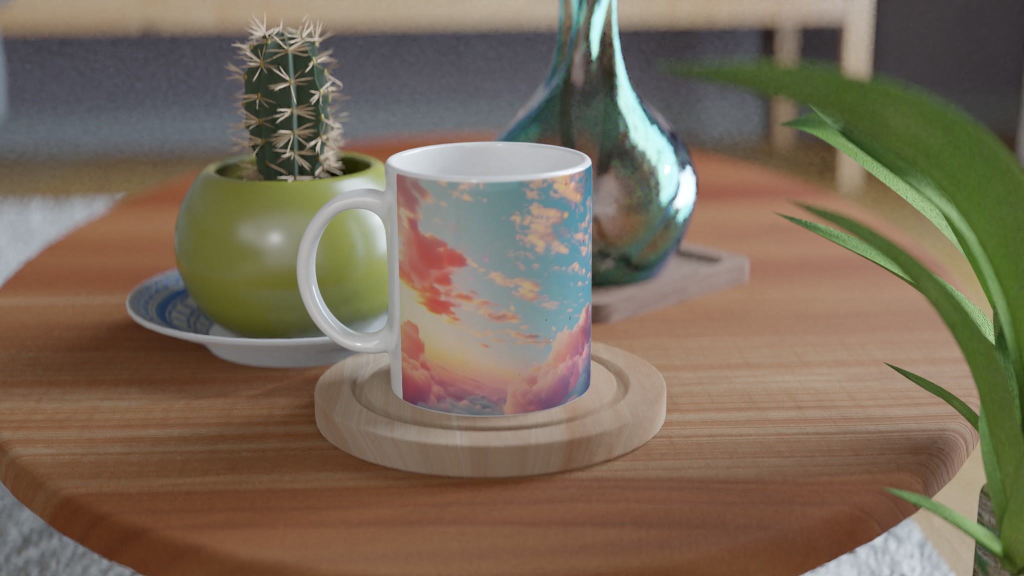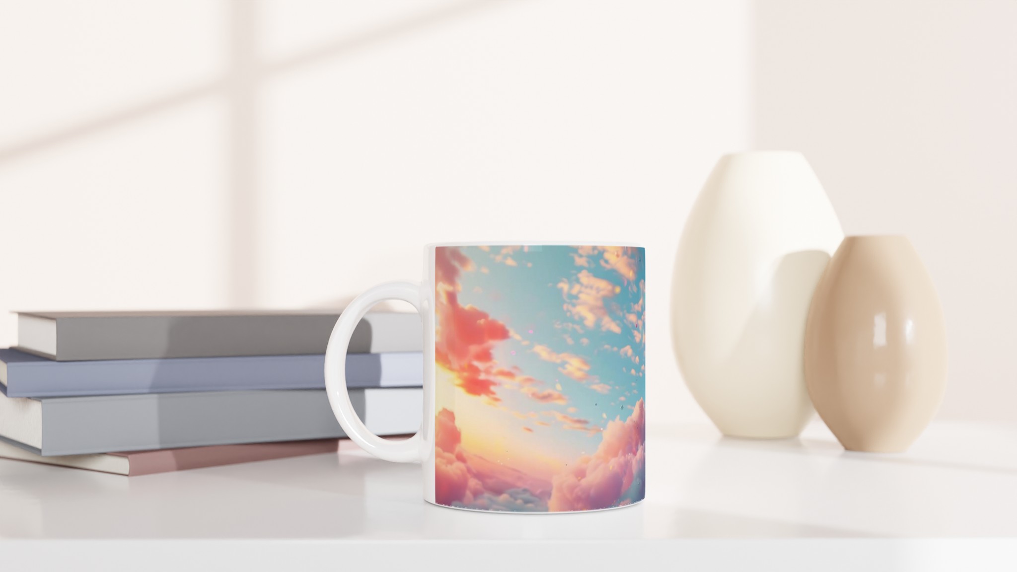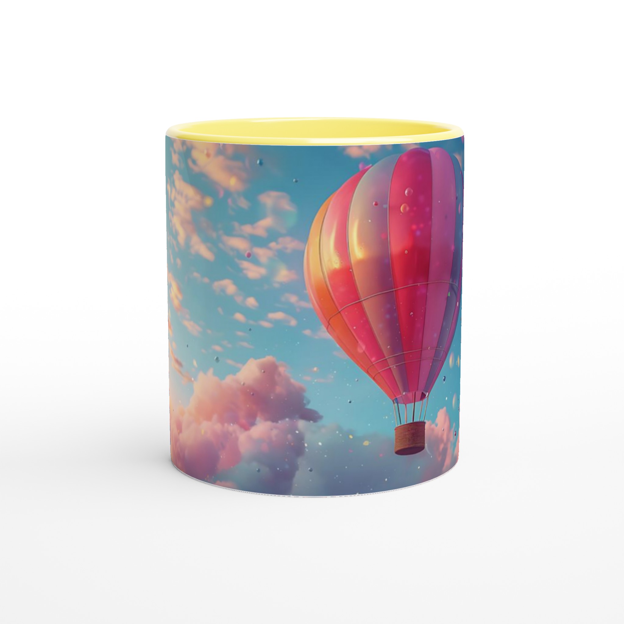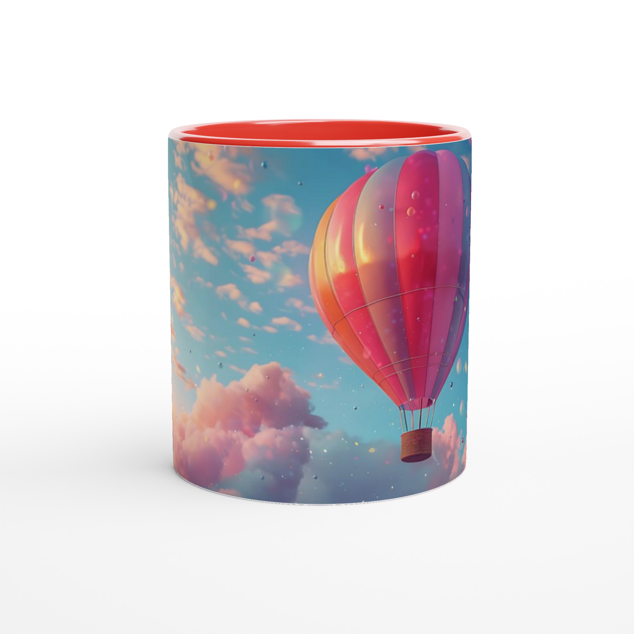 Lyft din vardag med denna underbara keramiska mugg, inspirerad av en magisk solnedgång med en majestätisk varmluftsballong svävande bland drömska rosa och blå moln. Denna mugg är inte bara ett kärl för din favoritdryck, utan en inbjudan att drömma dig bort vid varje klunk – perfekt för morgonkaffet, en värmande kopp te eller en härlig varm choklad.