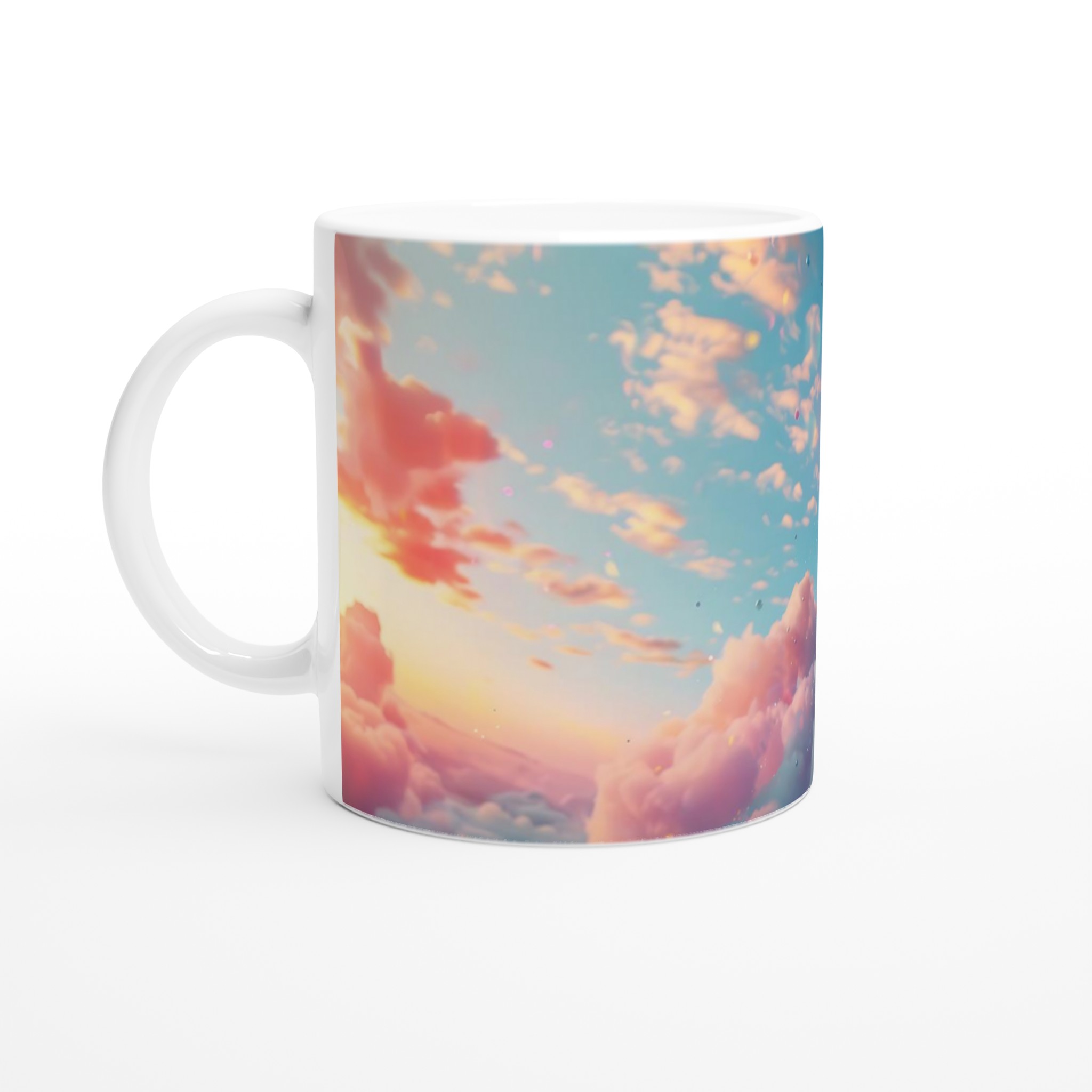 Lyft varje kaffestund med vår premium keramikmugg – stilren, hållbar och skapad för att låta ditt motiv glänsa. Inspirerad av en drömlik ballongfärd genom pastellfärgade skyar, fångar denna mugg magin och lugnet från en himmelsk resa. Den mjuka paletten av rosa, orange och blått påminner om soluppgångar och skapar en känsla av lugn och inspiration med varje klunk.
