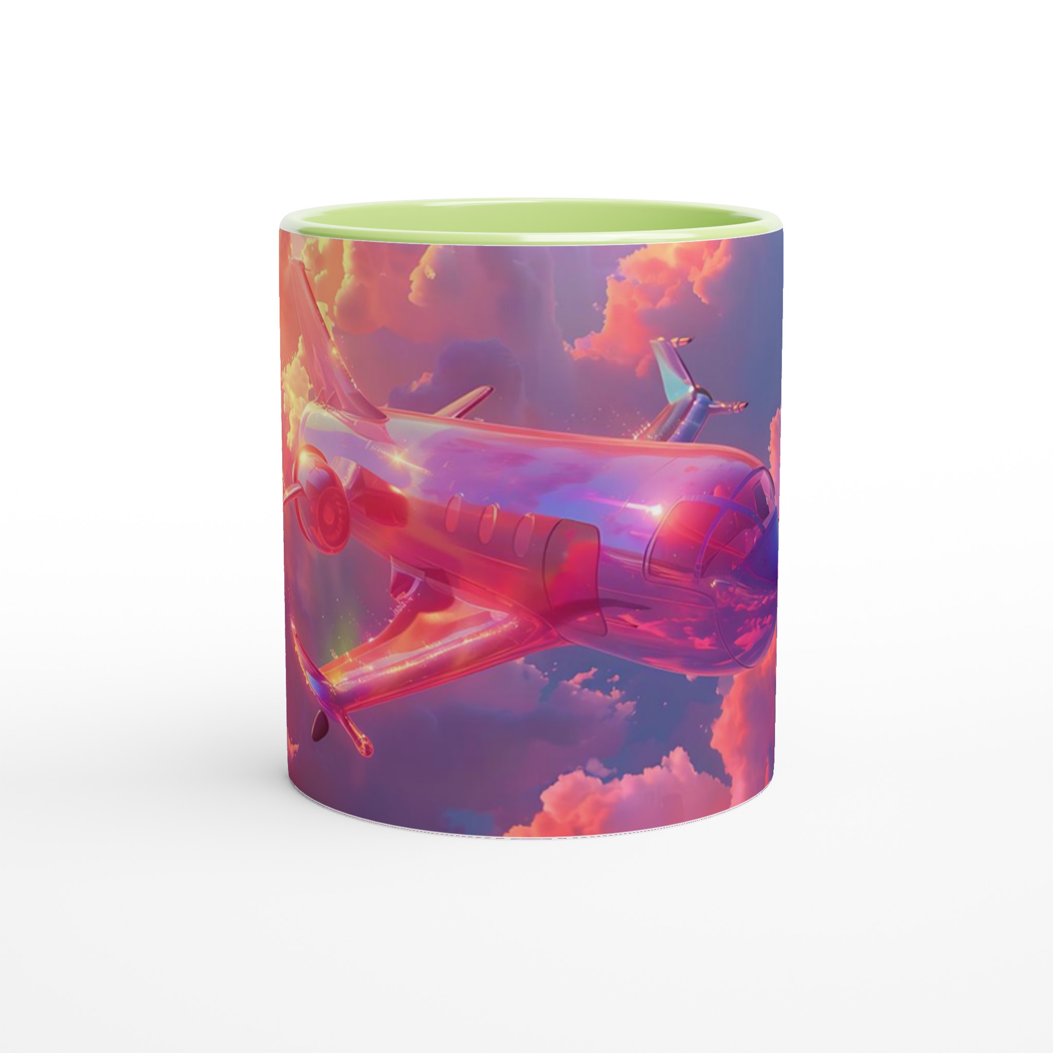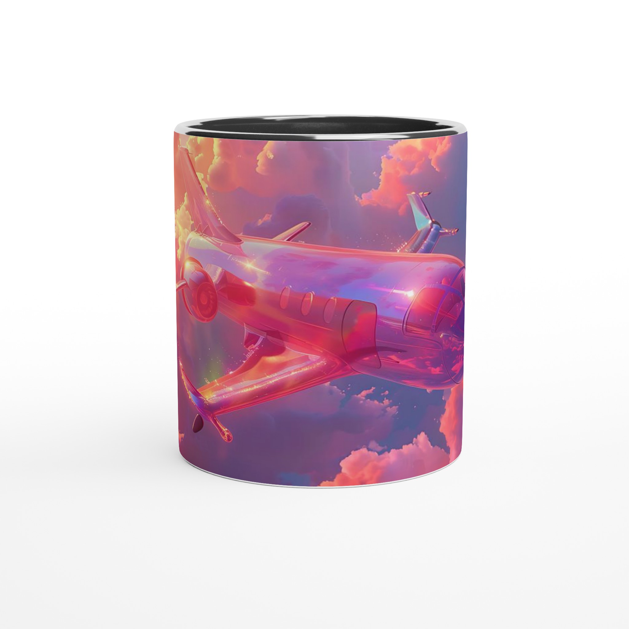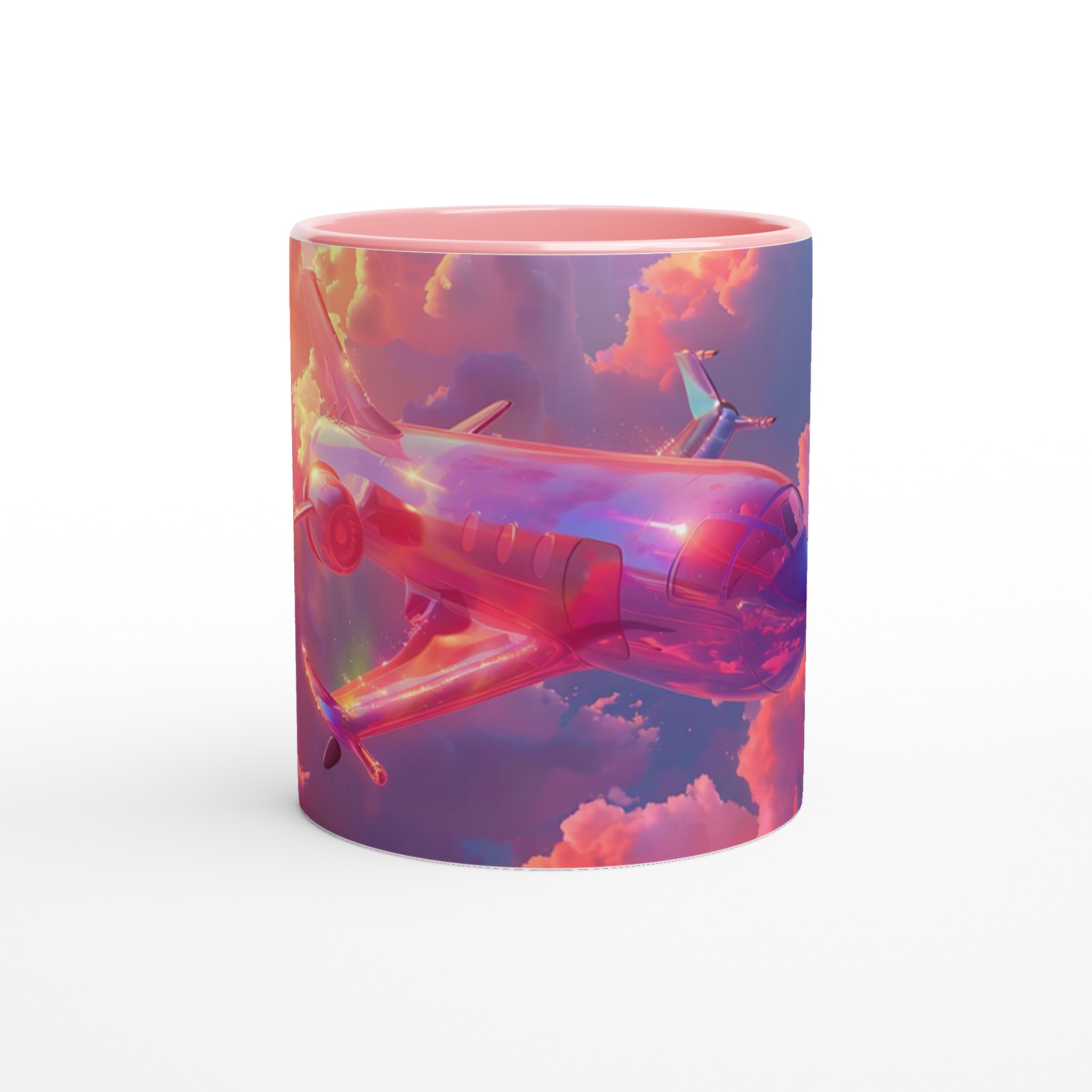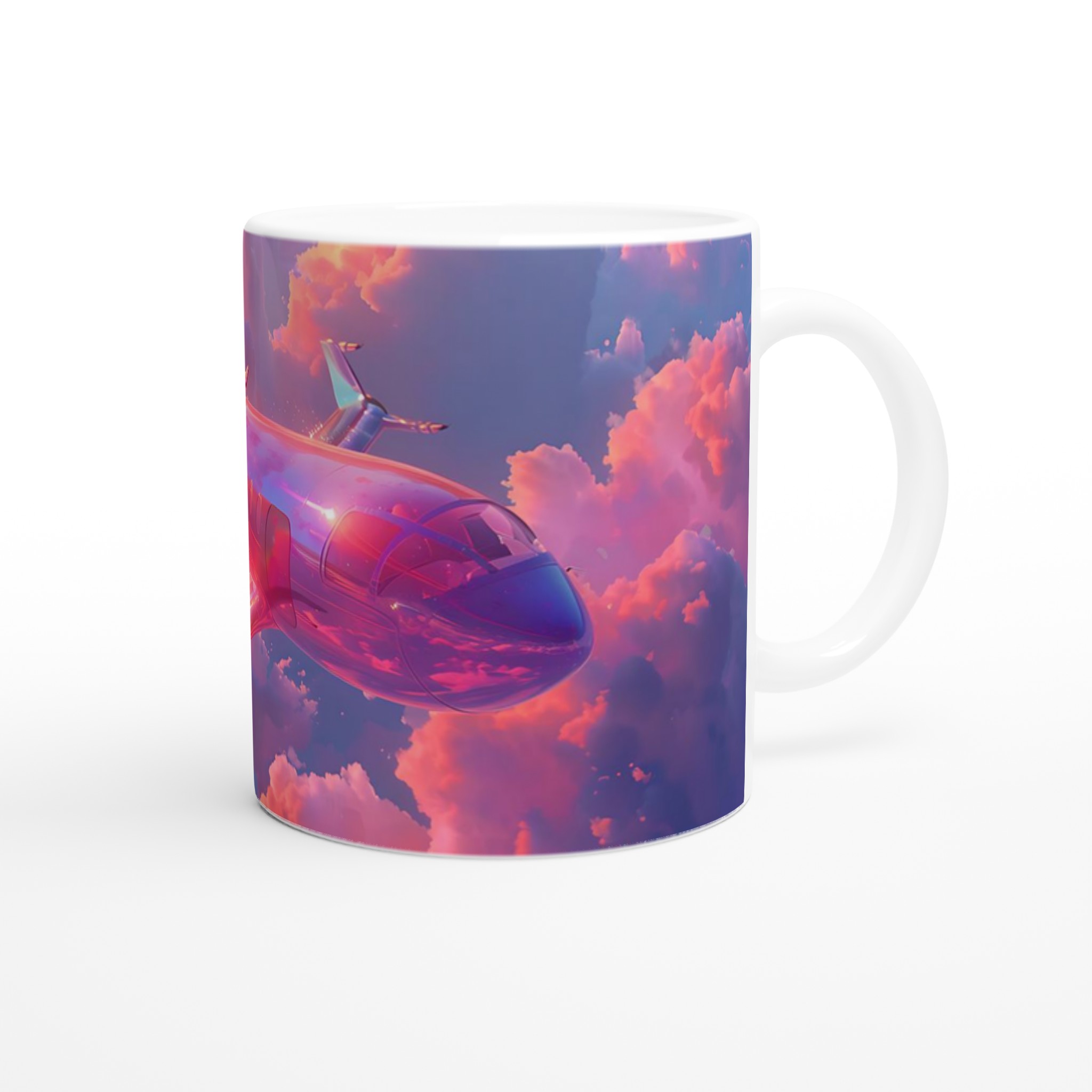 Föreställ dig att sväva bland molnen under en magisk skymningshimmel varje gång du tar en klunk. Denna inspirerande keramikmugg fångar den eteriska skönheten hos en solnedgångsflygning med dess drömska palett av rosa, lila och guld. Det är den perfekta muggen för att väcka din inre dagdrömmare och ge en touch av äventyr till din morgonkaffe, en värmande kopp te eller en härlig varm choklad.