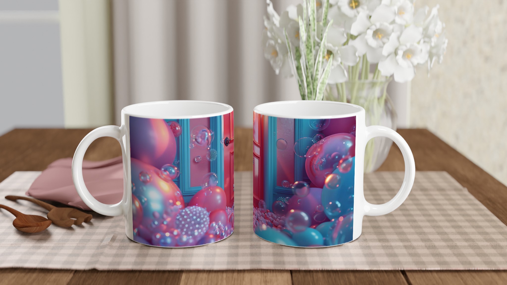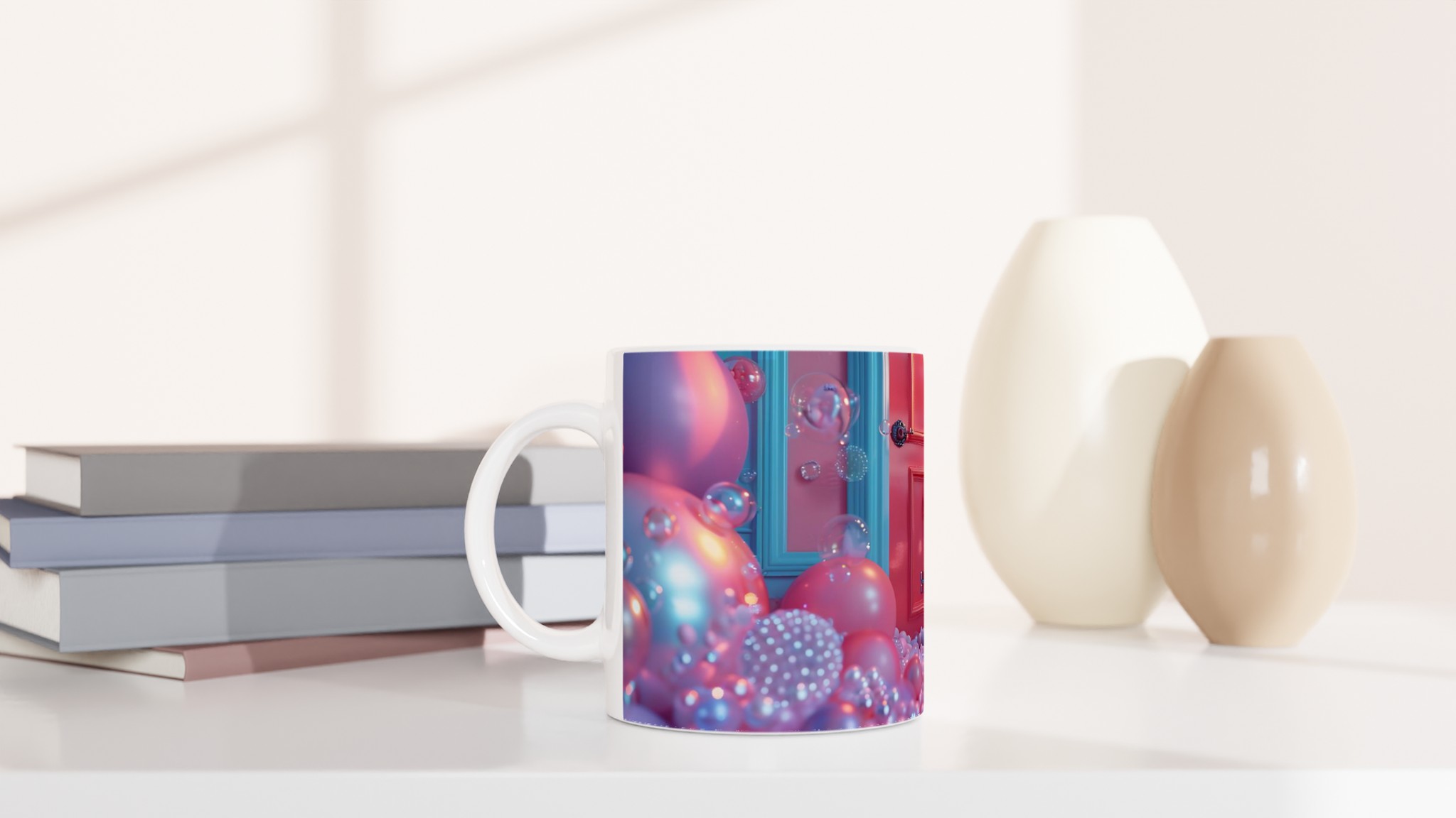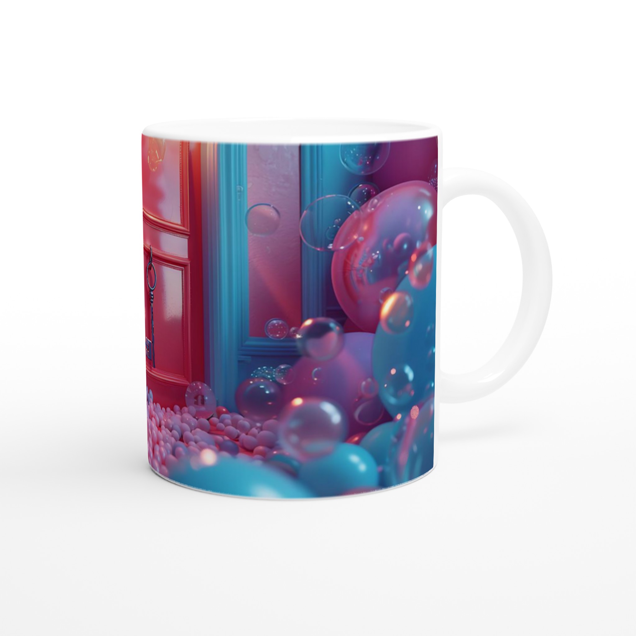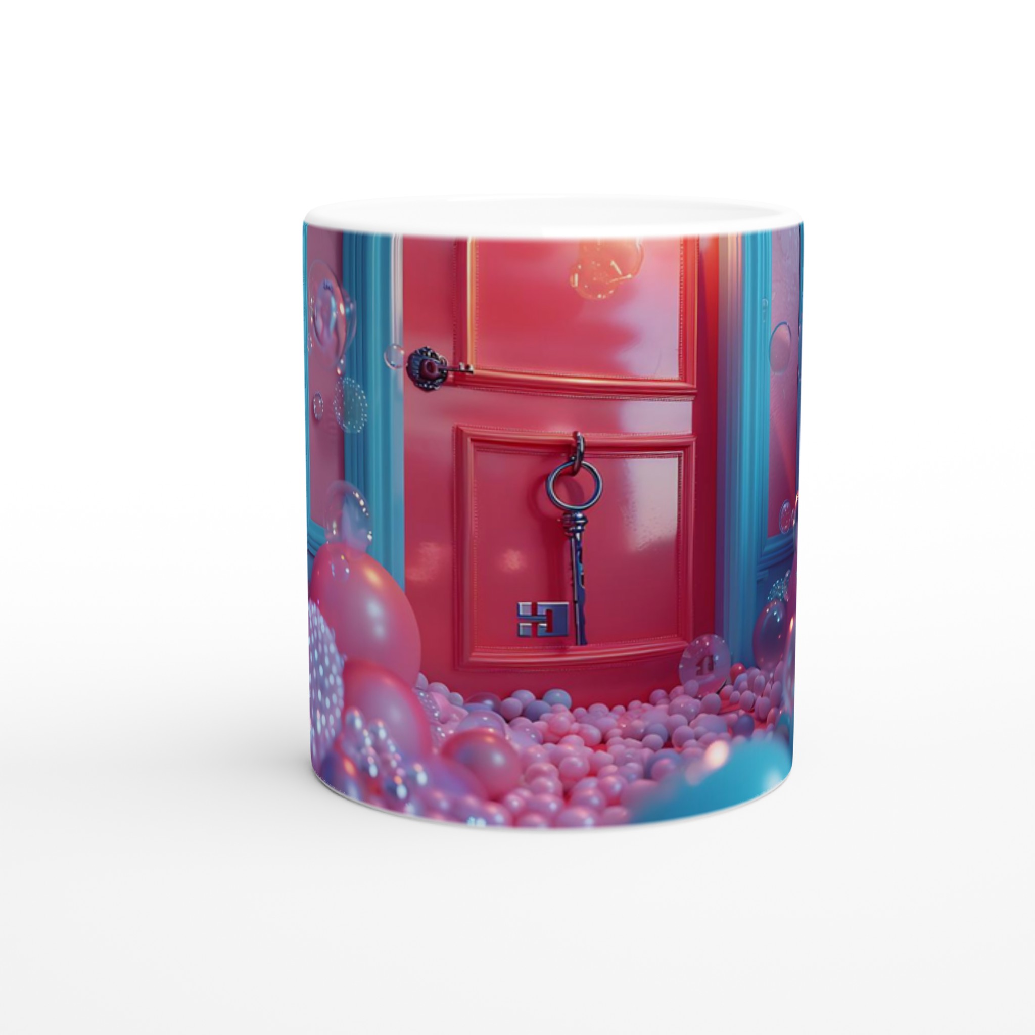 Öppna dörren till din egen drömvärld varje gång du tar en klunk! Denna stilrena keramiska mugg fångar en lekfull och magisk stämning, perfekt för att förgylla din dag. Vare sig det är morgonkaffet, kvällens varma choklad eller en lugn stund med te, blir denna mugg snabbt en älskad vardagsfavorit. Den blanka ytan får trycken att framträda med klara och levande färger, som håller sig fina även efter otaliga turer i mikron och diskmaskinen.