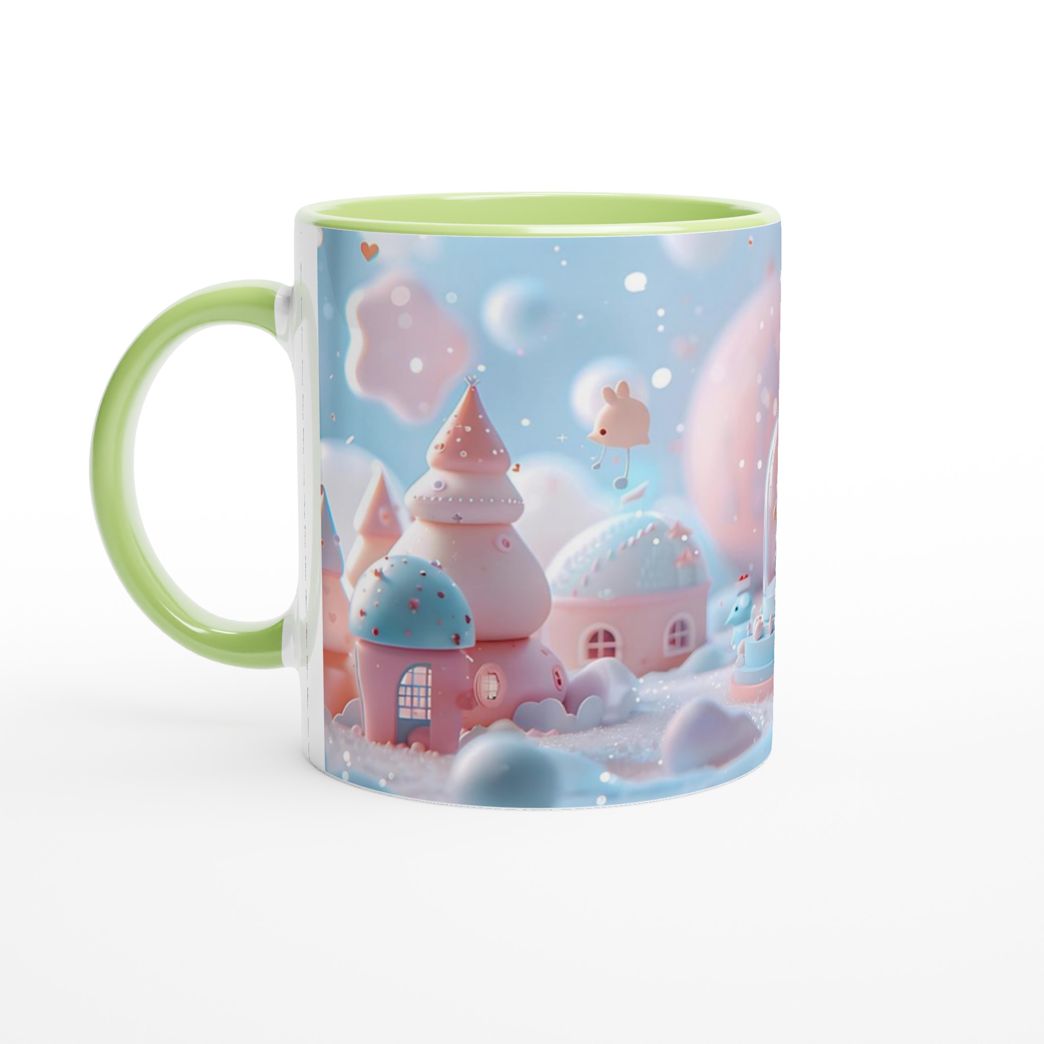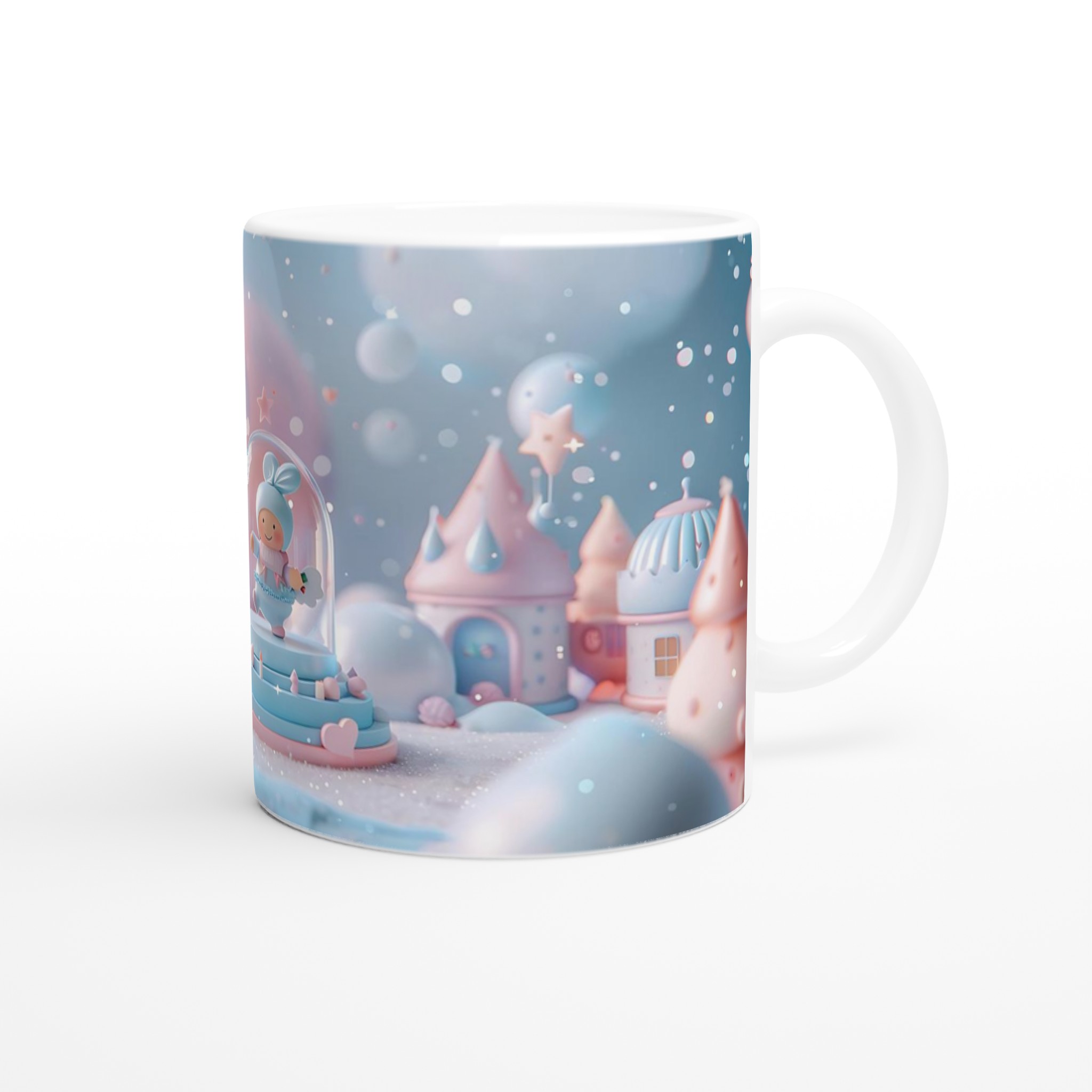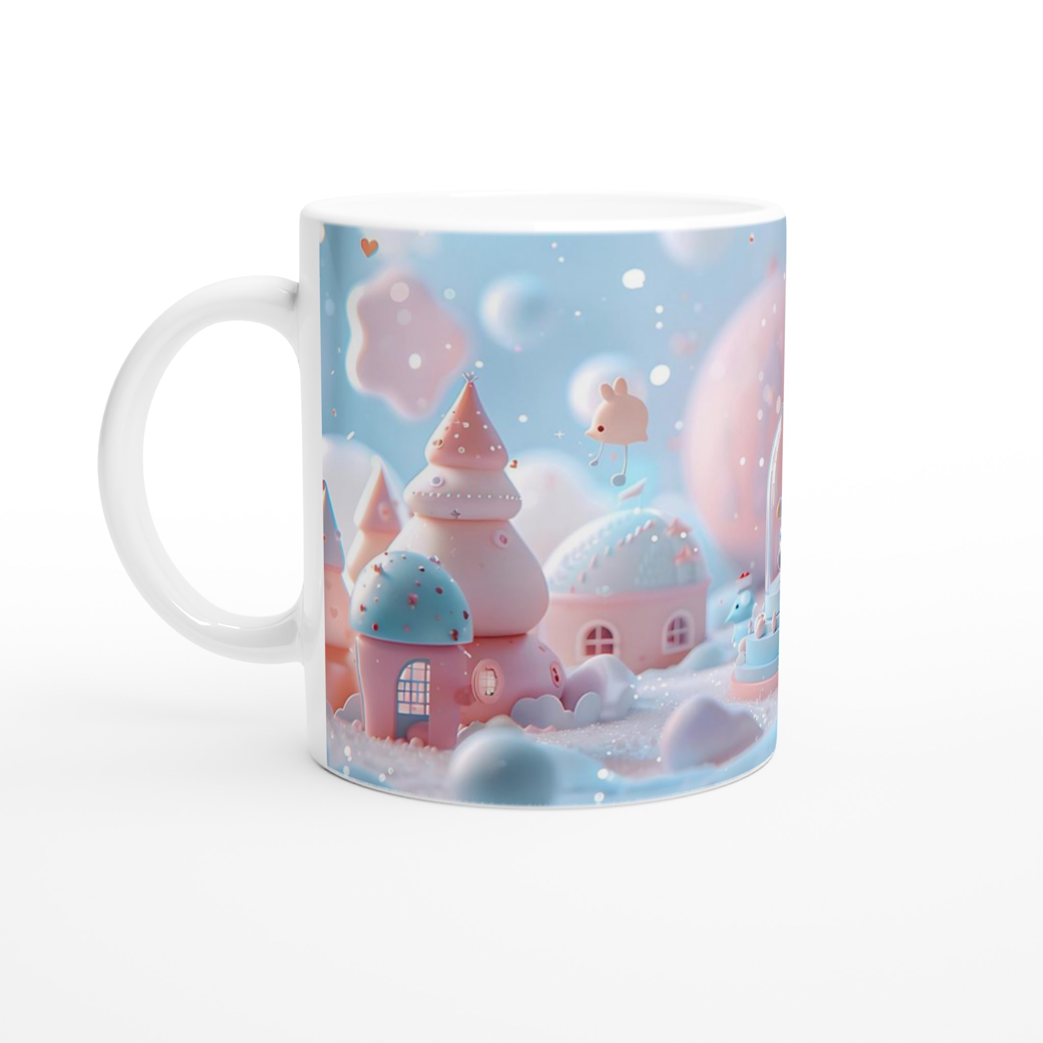 Fånga magin från en sockersöt vintervärld varje gång du tar en klunk! Denna bedårande keramiska mugg är prydd med en fantasifull scen i ljuva pastellfärger – tänk dig rosa, ljusblått och vitt som smälter samman i en drömlik skapelse. Perfekt för morgonkaffet, kvällens varma choklad eller när du bara vill njuta av en kopp te. Den blanka ytan framhäver trycket med klara och levande färger, som håller sig fina även efter många turer i mikron och diskmaskinen.