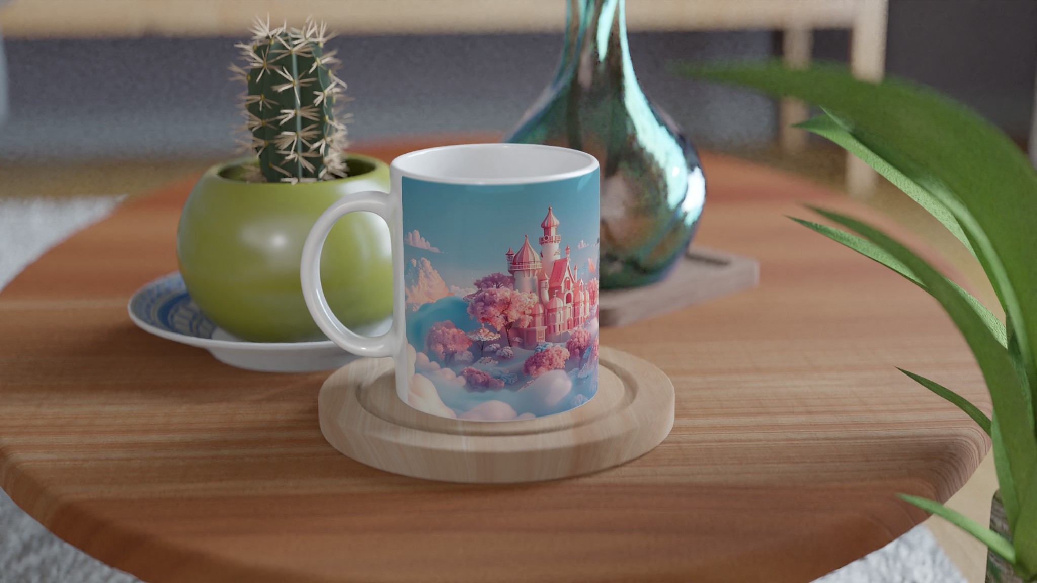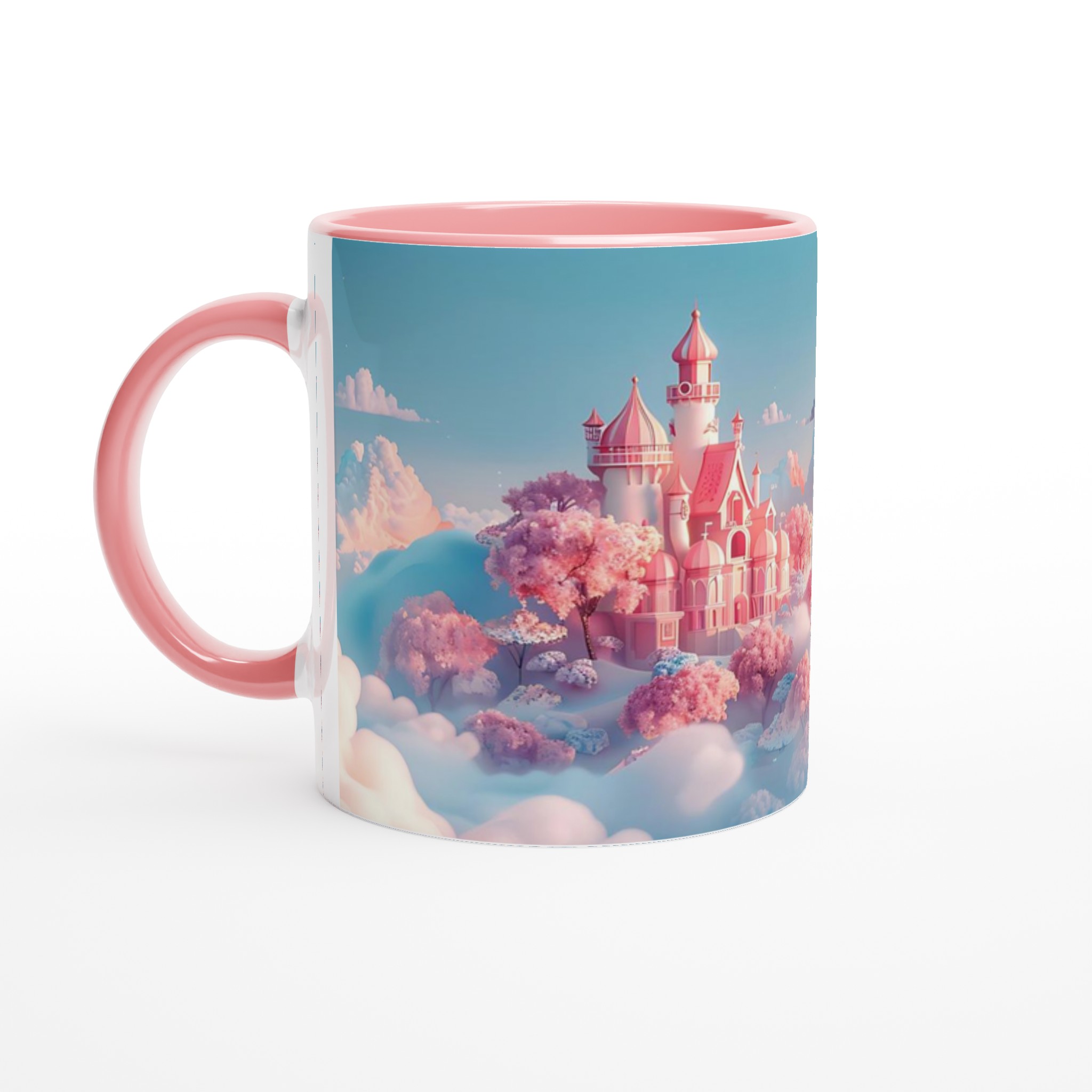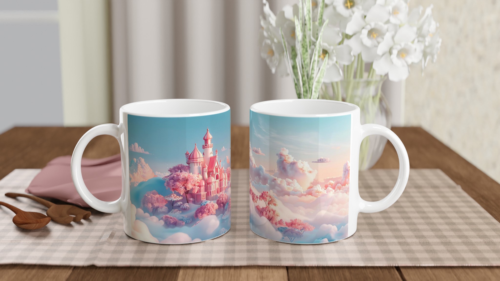 Föreställ dig att vakna upp till en kopp kaffe eller te, omsluten av en drömvärld där ett rosa sagoslott tronar bland fluffiga moln och blommande körsbärsträd. Denna förtrollande keramiska mugg transporterar dig till en plats av lugn och fantasi med varje klunk. Med sin unika och drömlika design, inspirerad av pastellfärgade skyn och rosa blomsterprakt, blir den snabbt en favorit som lyser upp din dag och framhäver dina drycker med en touch av magi.