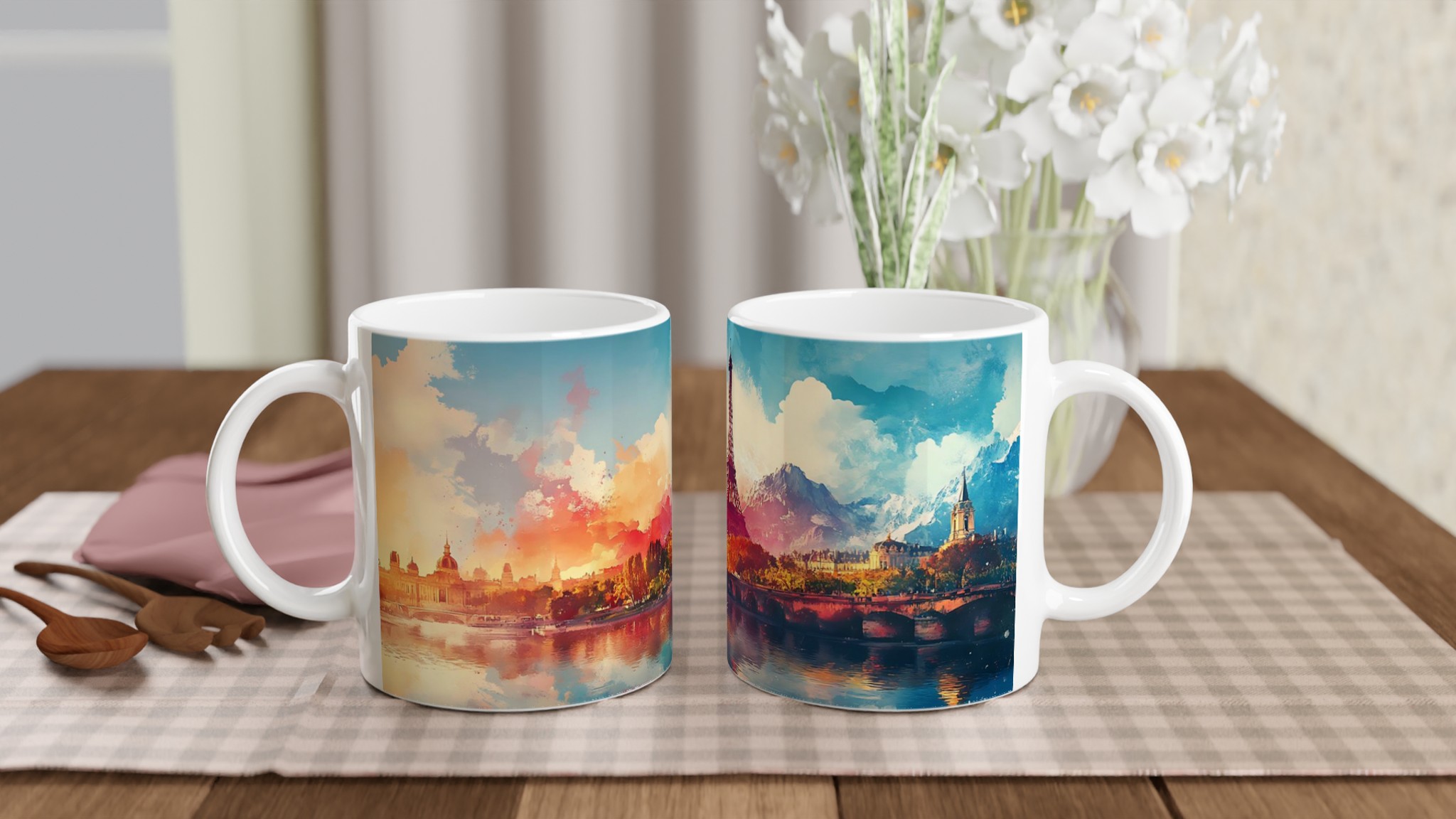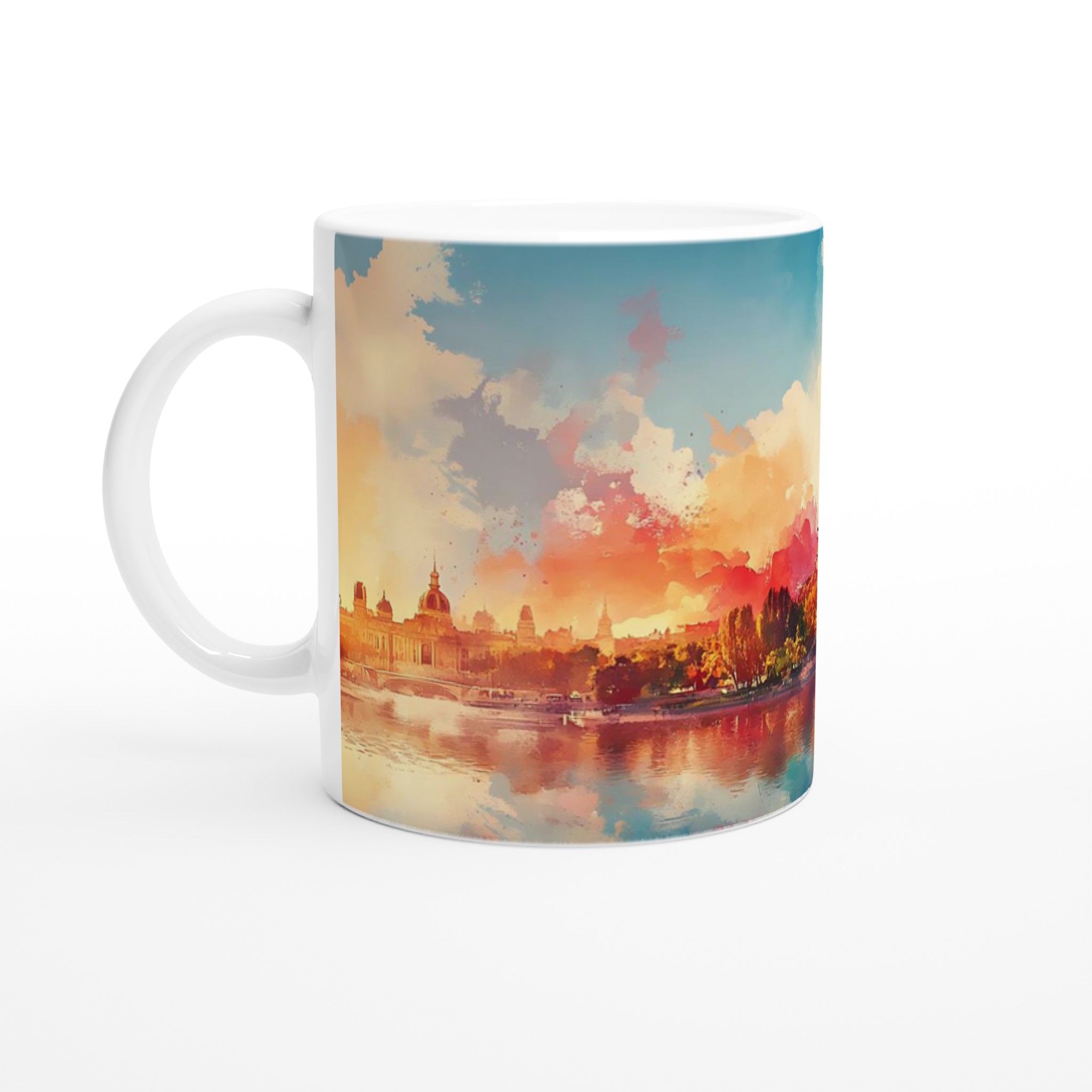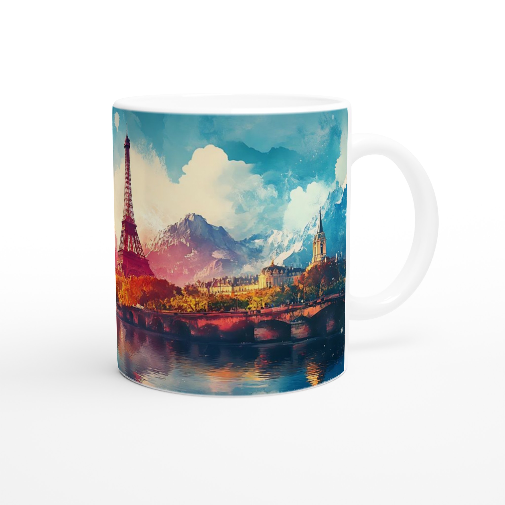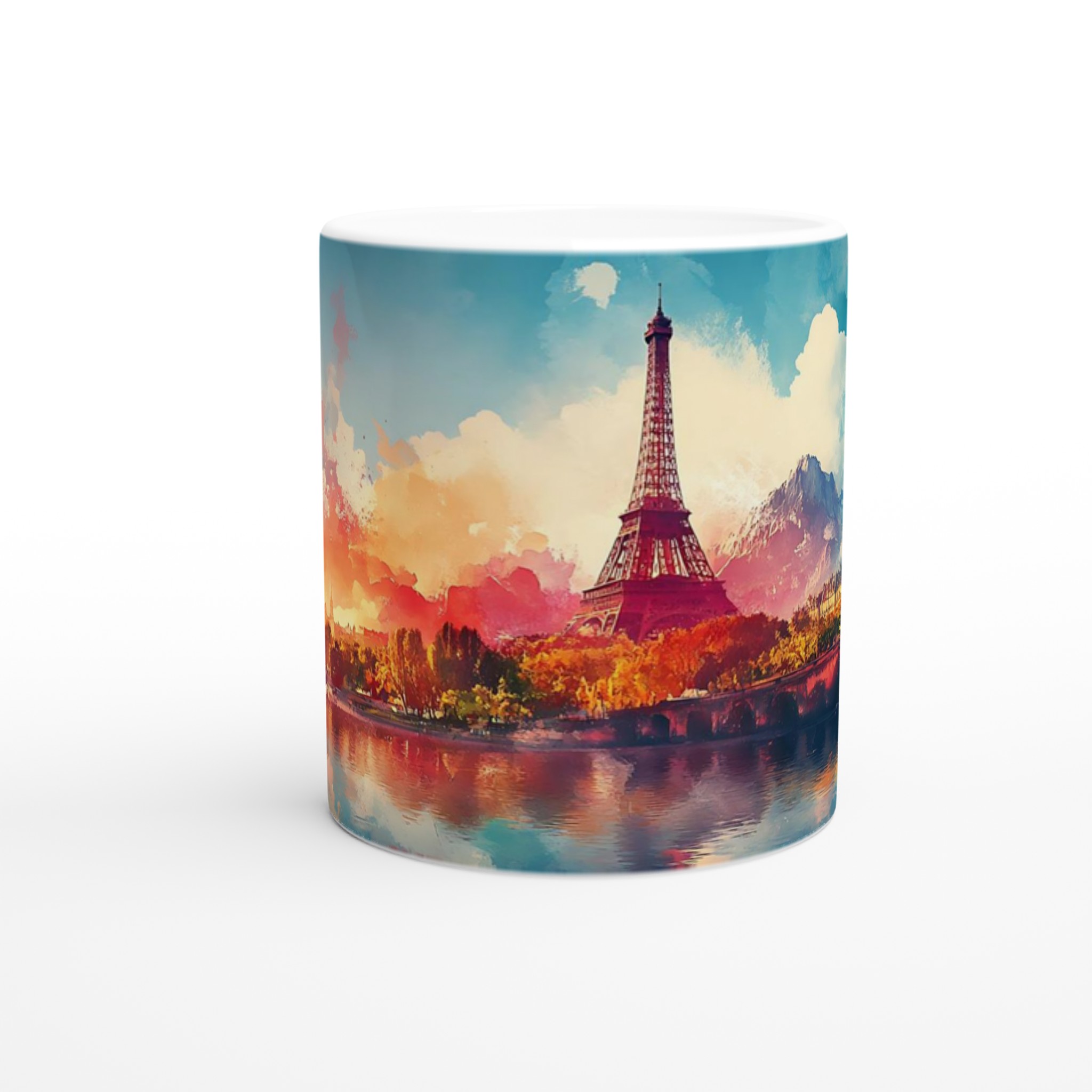 Fånga magin från Paris med varje klunk ur denna konstnärliga keramiska mugg. Med en drömsk akvarellvy av Eiffeltornet, badat i varma solnedgångsfärger mot en klarblå himmel, blir varje kaffepaus en minisemester till den romantiska staden. Denna stilrena mugg blir snabbt en vardagsfavorit, perfekt för morgonkaffet, kvällens varma choklad eller när du bara vill njuta av en kopp te.
