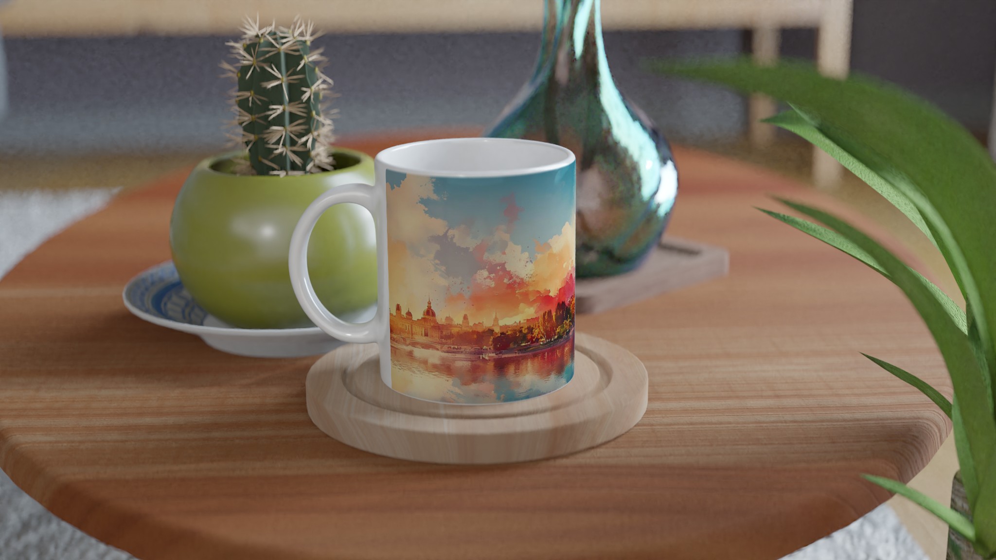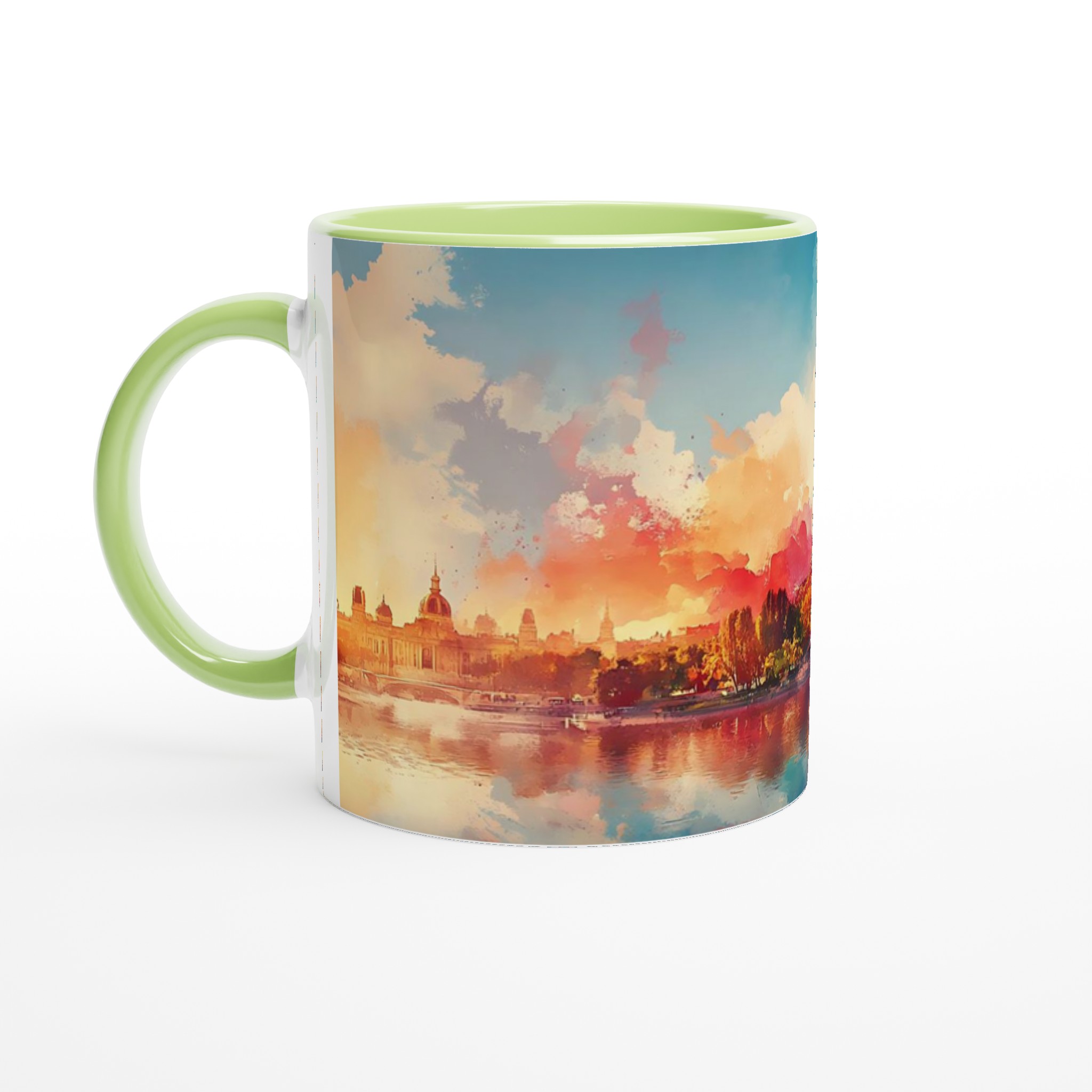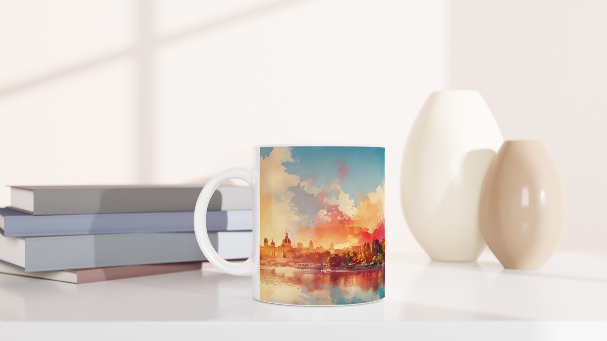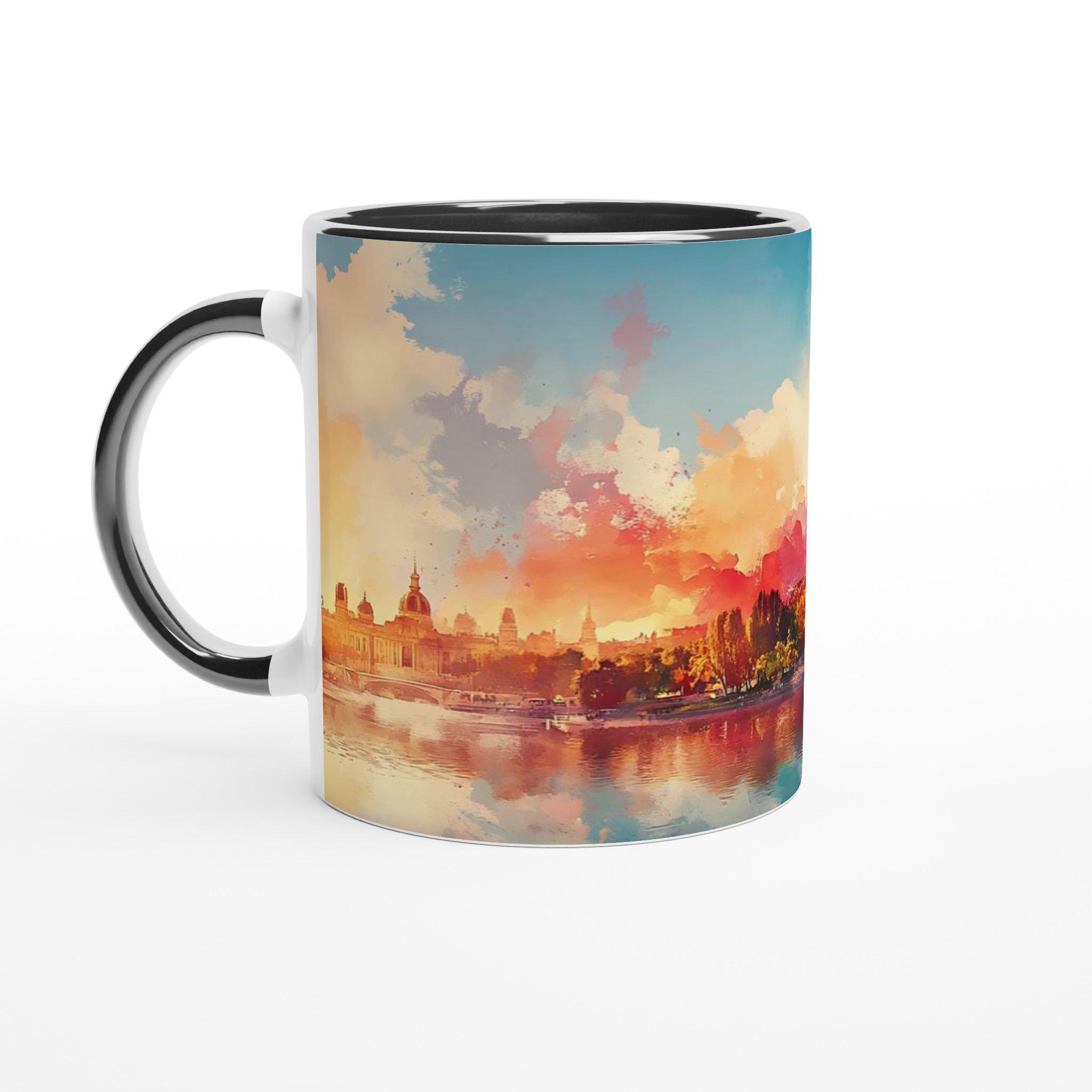 Fånga magin från Paris med varje klunk ur denna konstnärliga keramiska mugg. Med en drömsk akvarellvy av Eiffeltornet, badat i varma solnedgångsfärger mot en klarblå himmel, blir varje kaffepaus en minisemester till den romantiska staden. Denna stilrena mugg blir snabbt en vardagsfavorit, perfekt för morgonkaffet, kvällens varma choklad eller när du bara vill njuta av en kopp te.