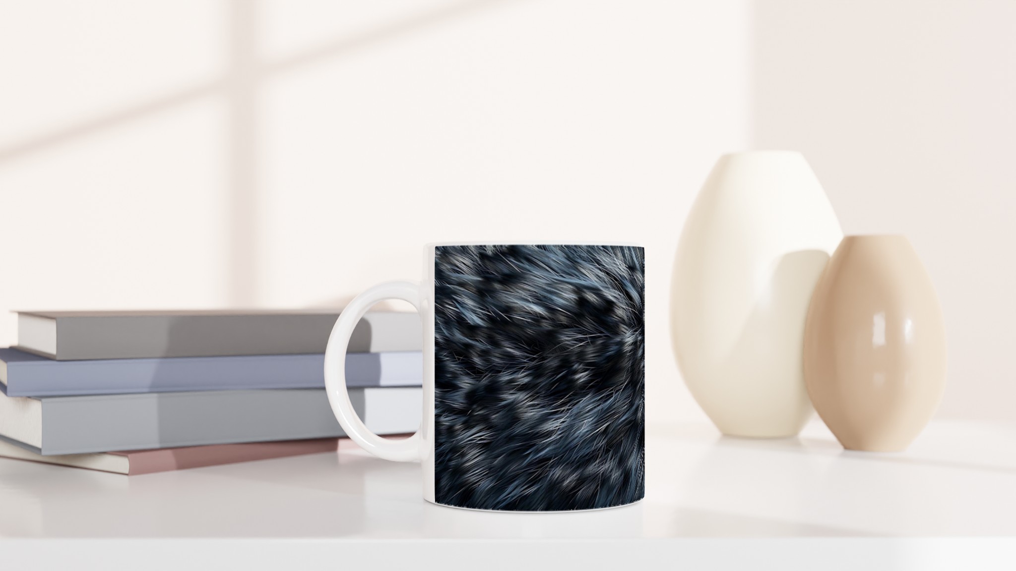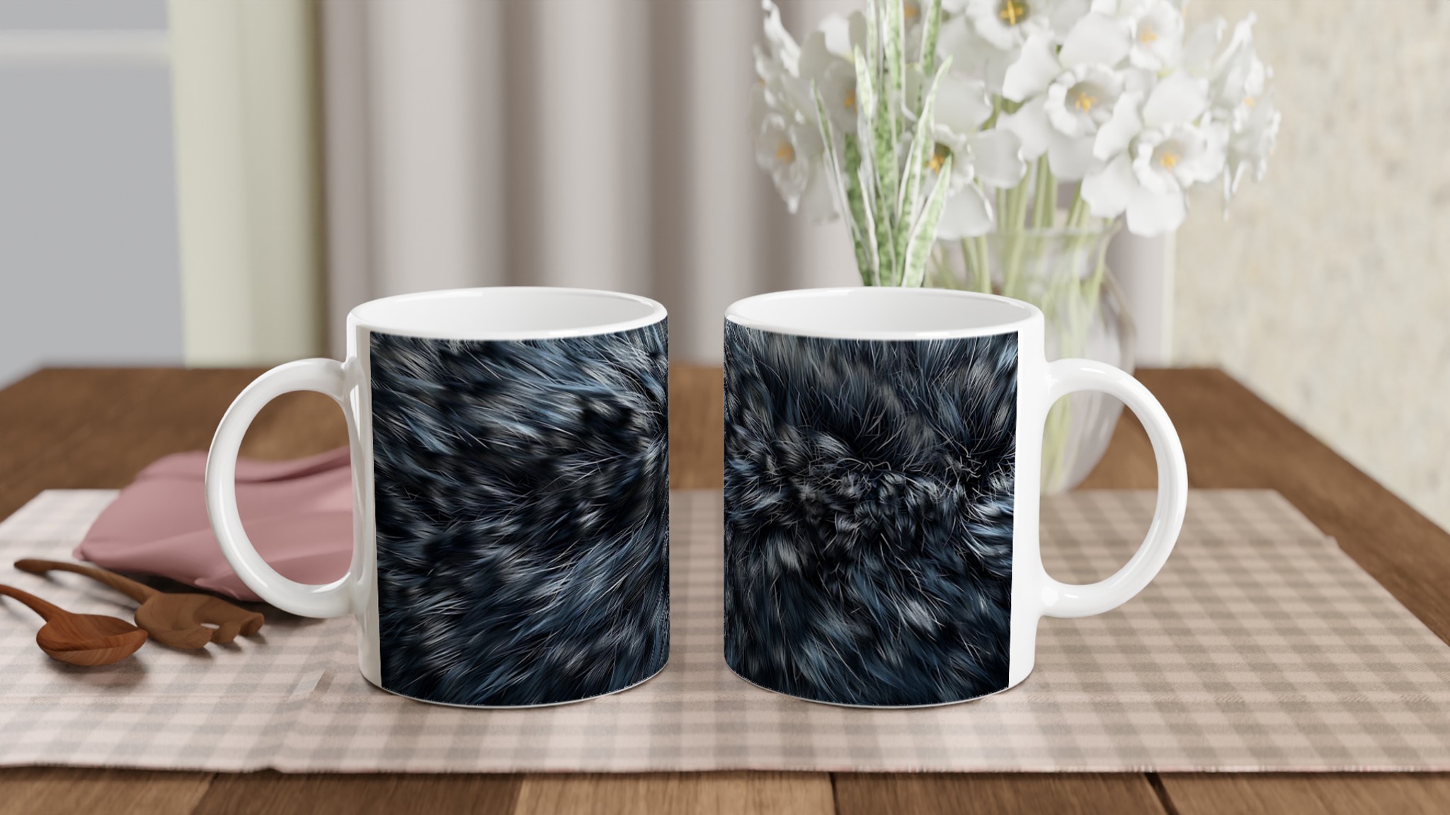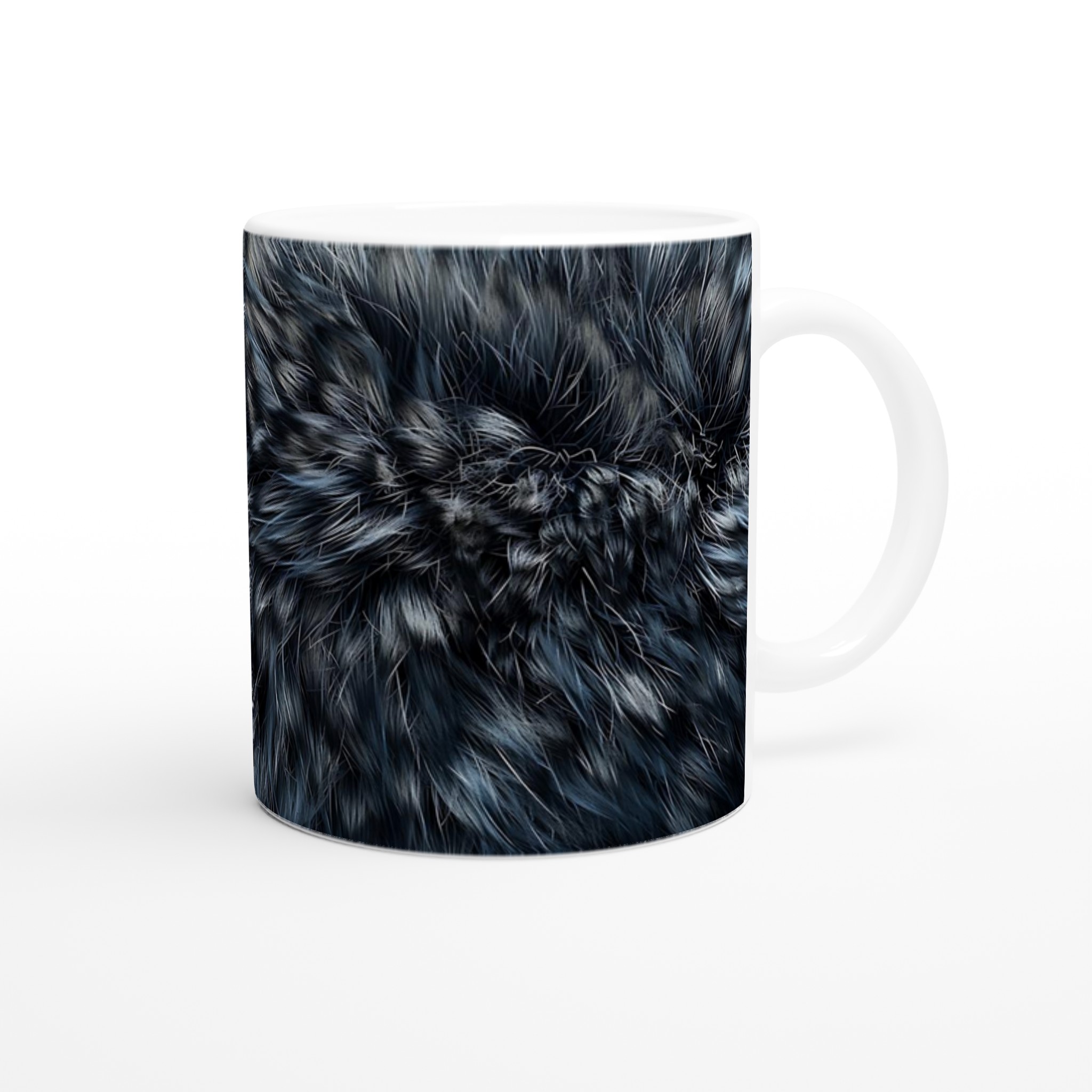 Föreställ dig att svepas in i en mjuk, lyxig känsla varje gång du tar en klunk. Denna keramiska mugg är prydd med ett förtrollande borstigt mönster i djupa gråblå nyanser, som för tankarna till elegant päls eller en dimmig vintermorgon. Det är inte bara en mugg – det är en stämningshöjare för dina dagliga ritualer, oavsett om det är morgonkaffet, kvällens varma choklad eller en lugn stund med te.