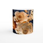 Den blanka vita ytan säkerställer att det vackra blommönstret framträder klart och färgstarkt, vilket gör muggen till en uppskattad detalj i ditt hem eller på kontoret. Tryckkvaliteten är av högsta klass, vilket garanterar att designen behåller sin lyster och klarhet även efter otaliga omgångar i både mikrovågsugn och diskmaskin.