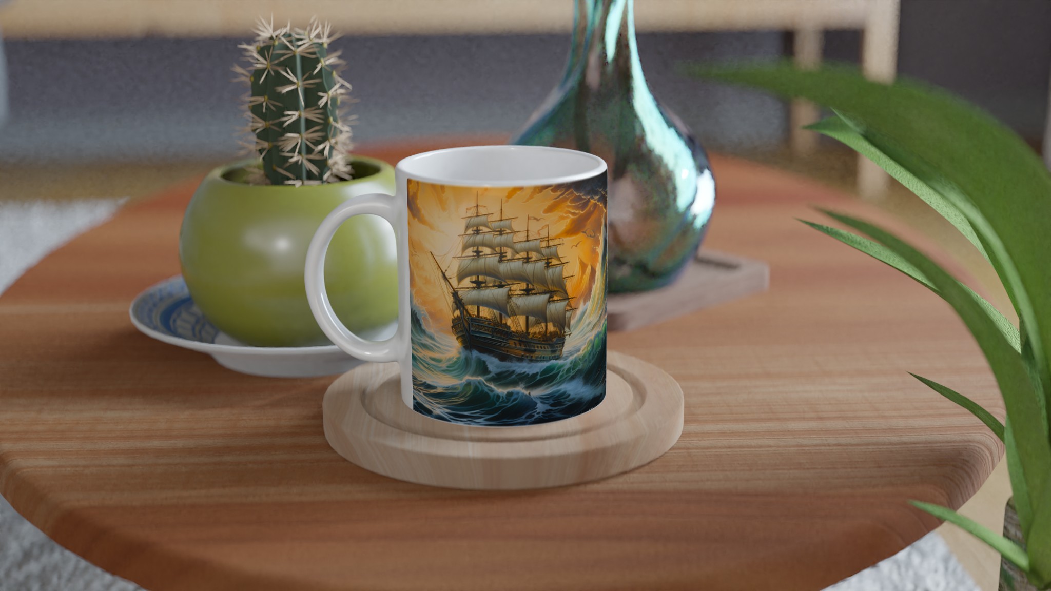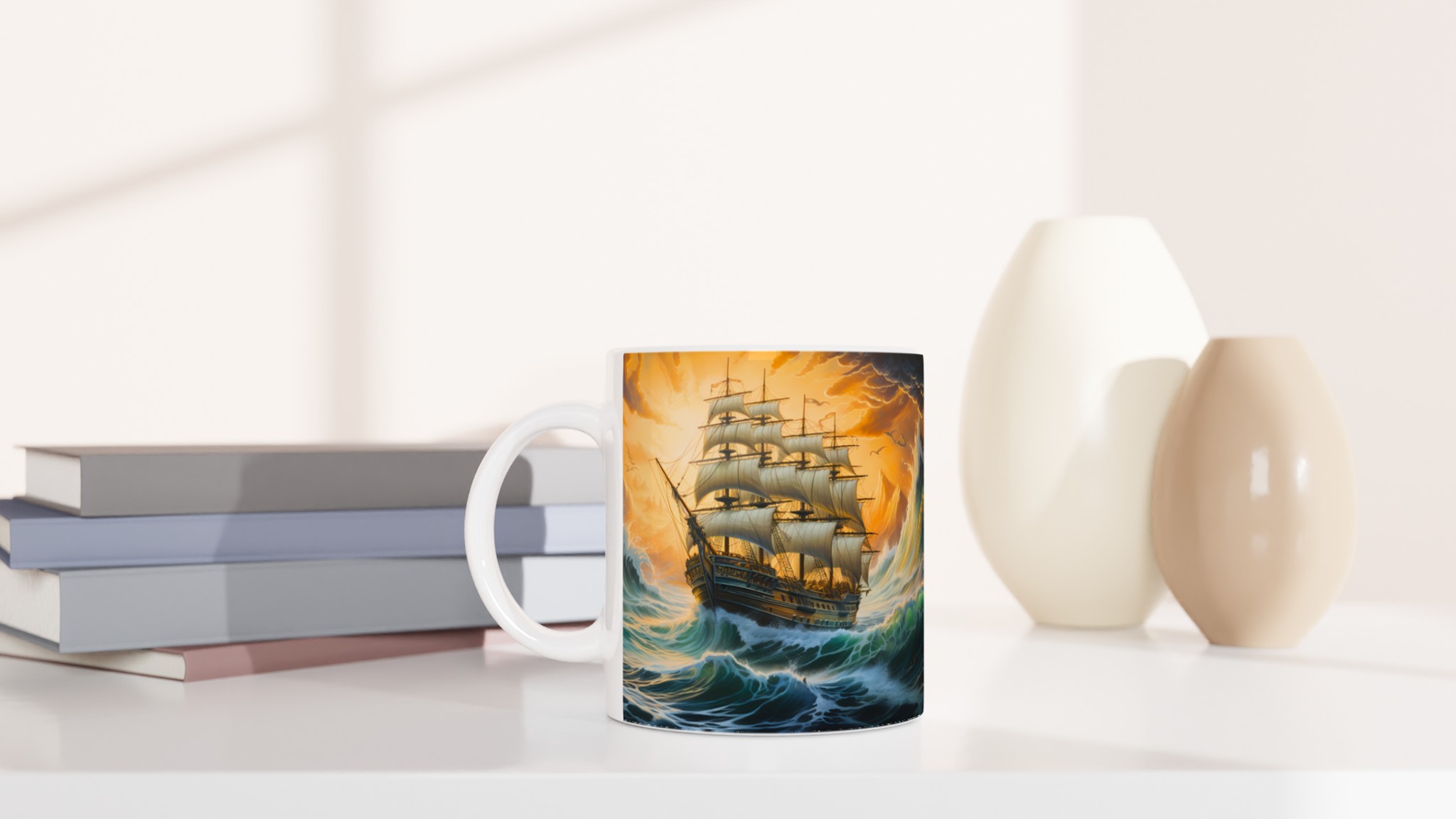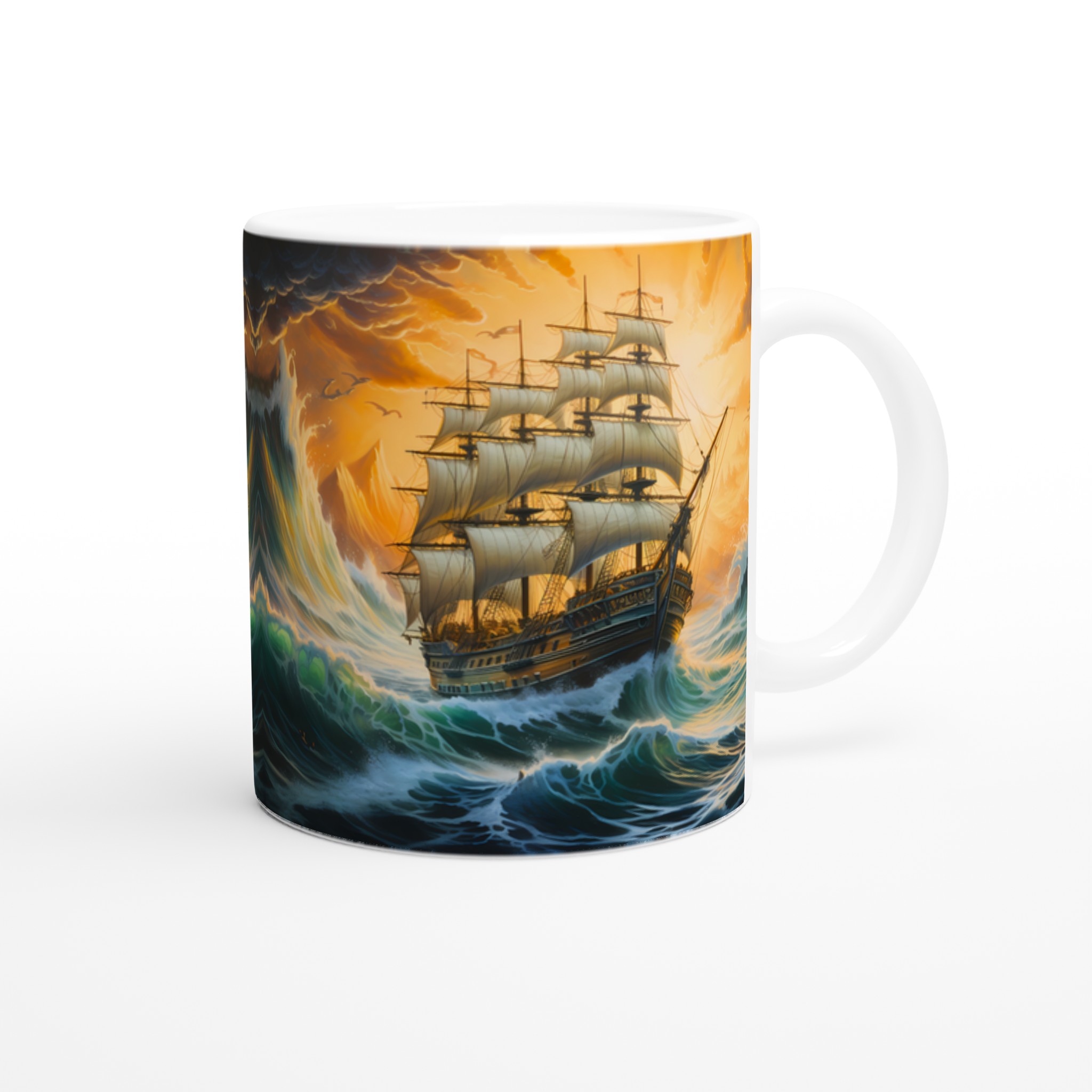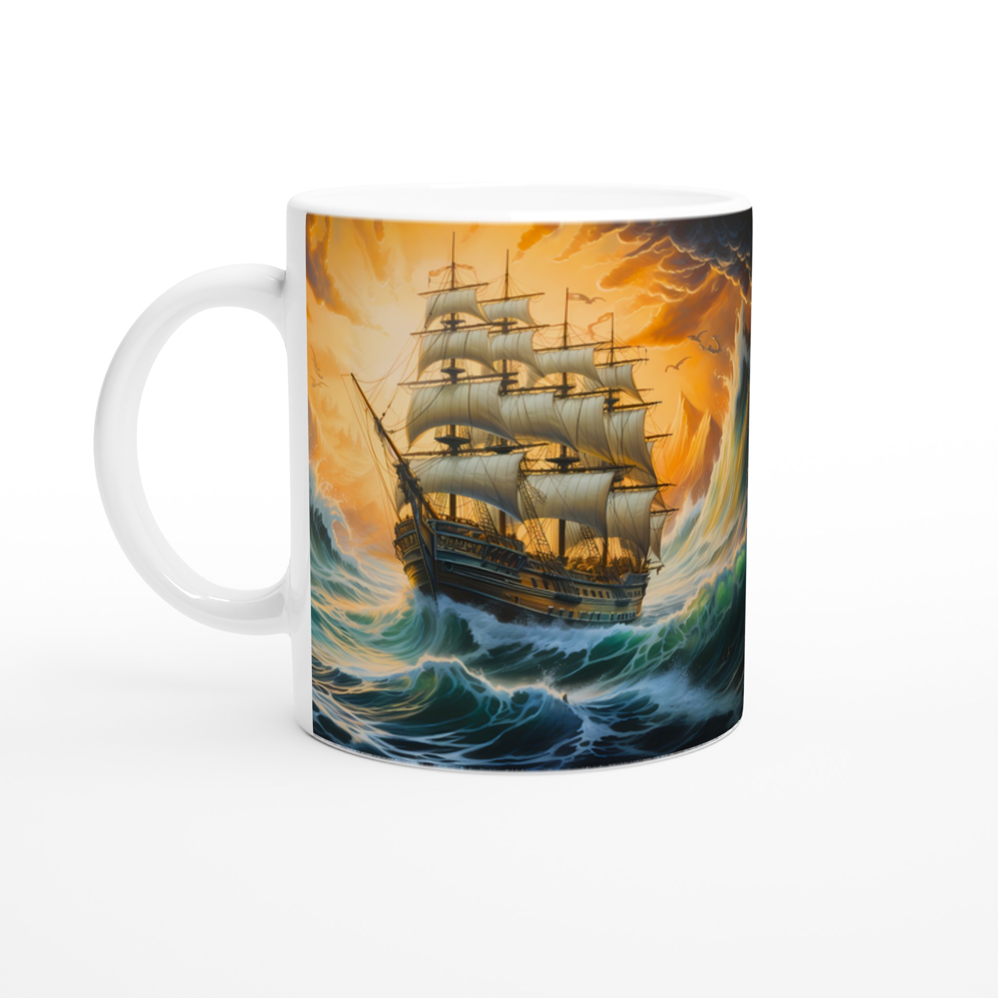 Episk Segelfartyg Mugg – Majestätiska Vågor & Solnedgång – Perfekt Present för Äventyrare