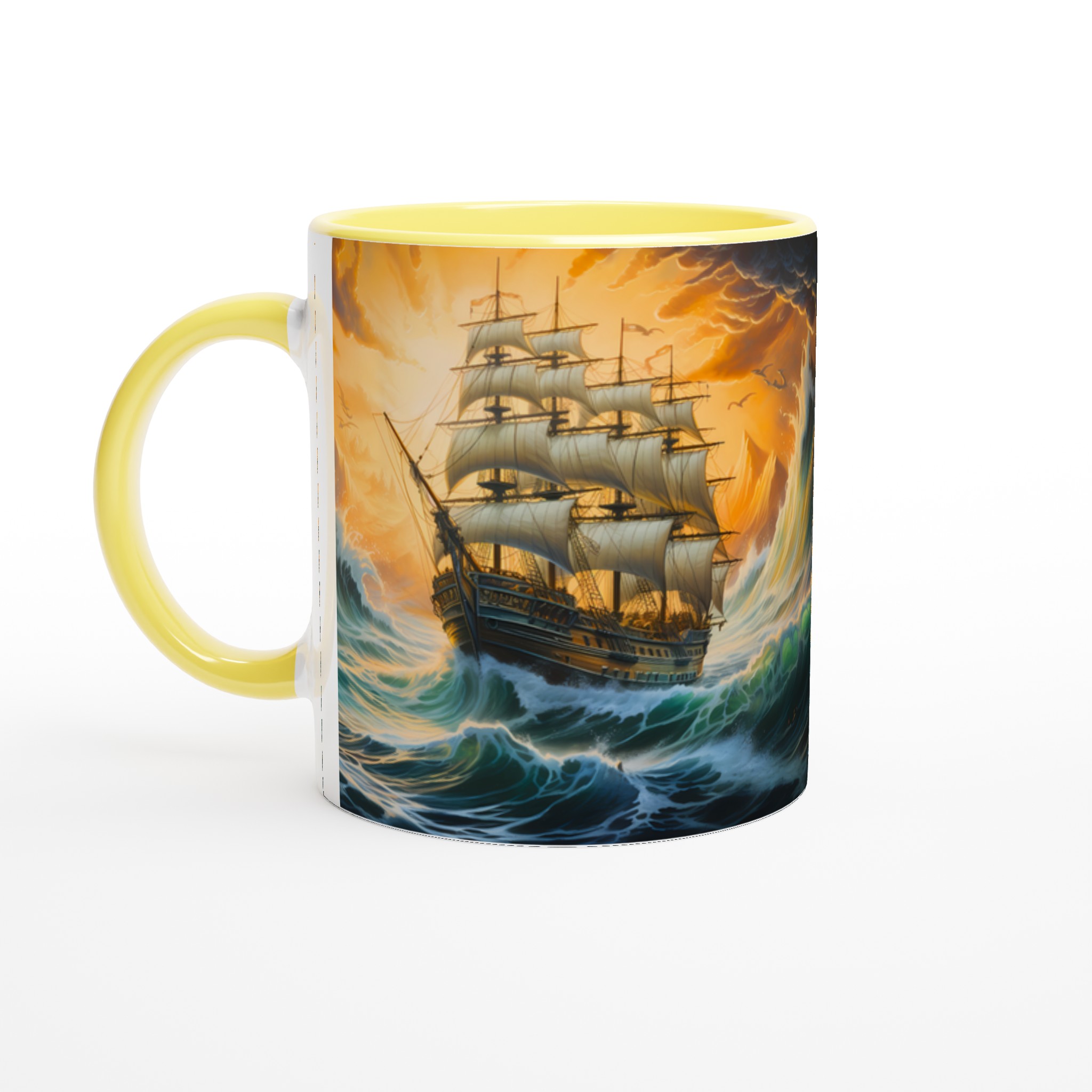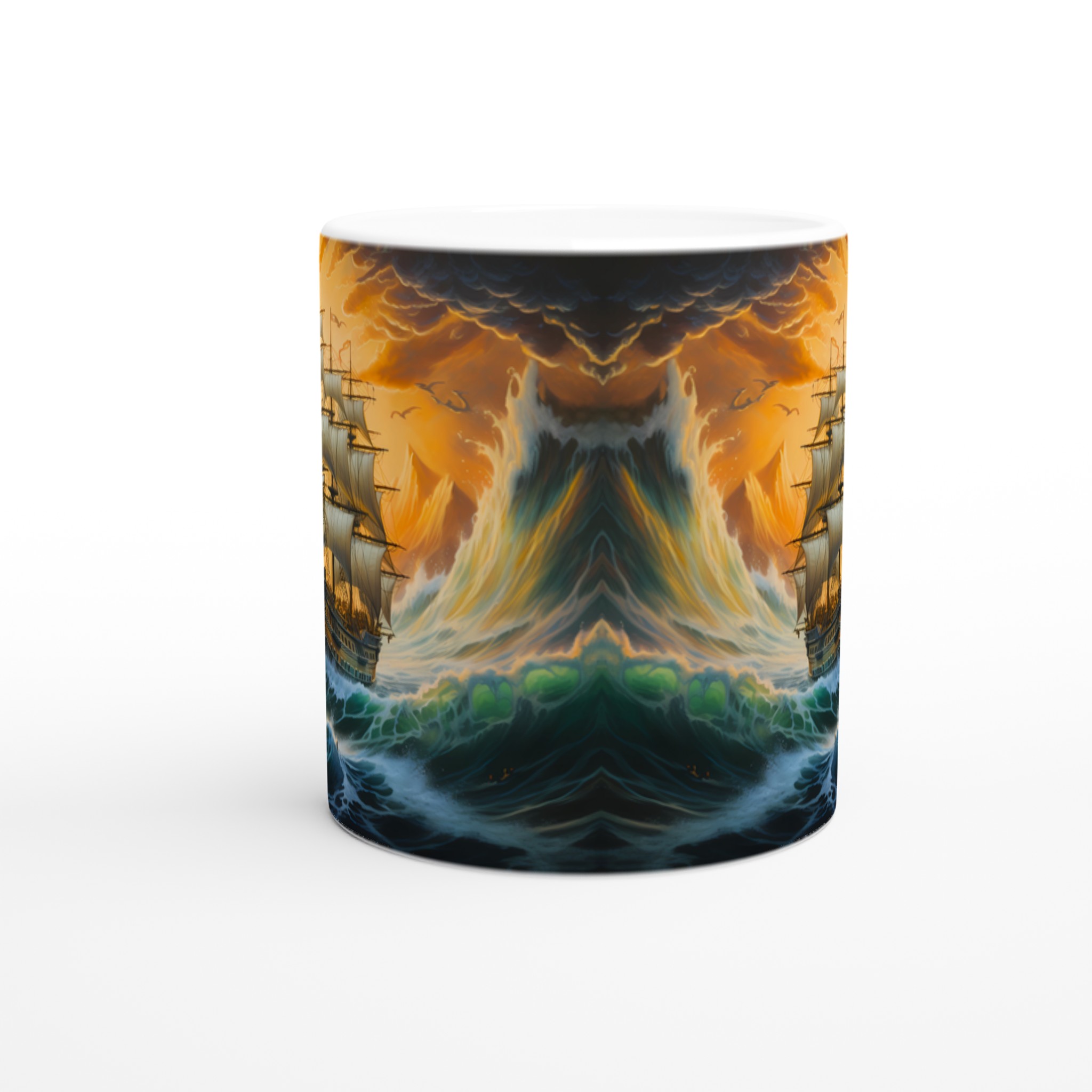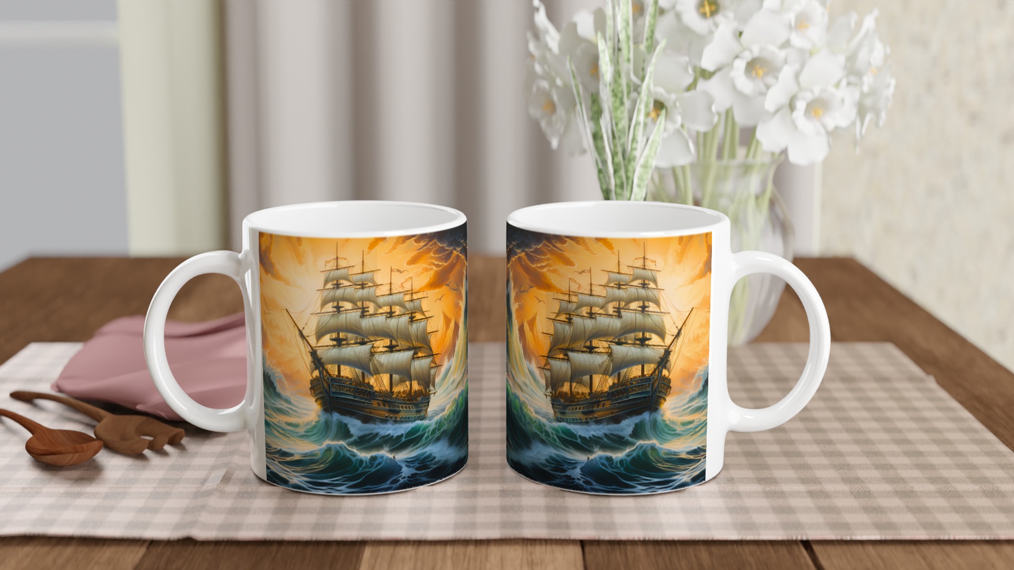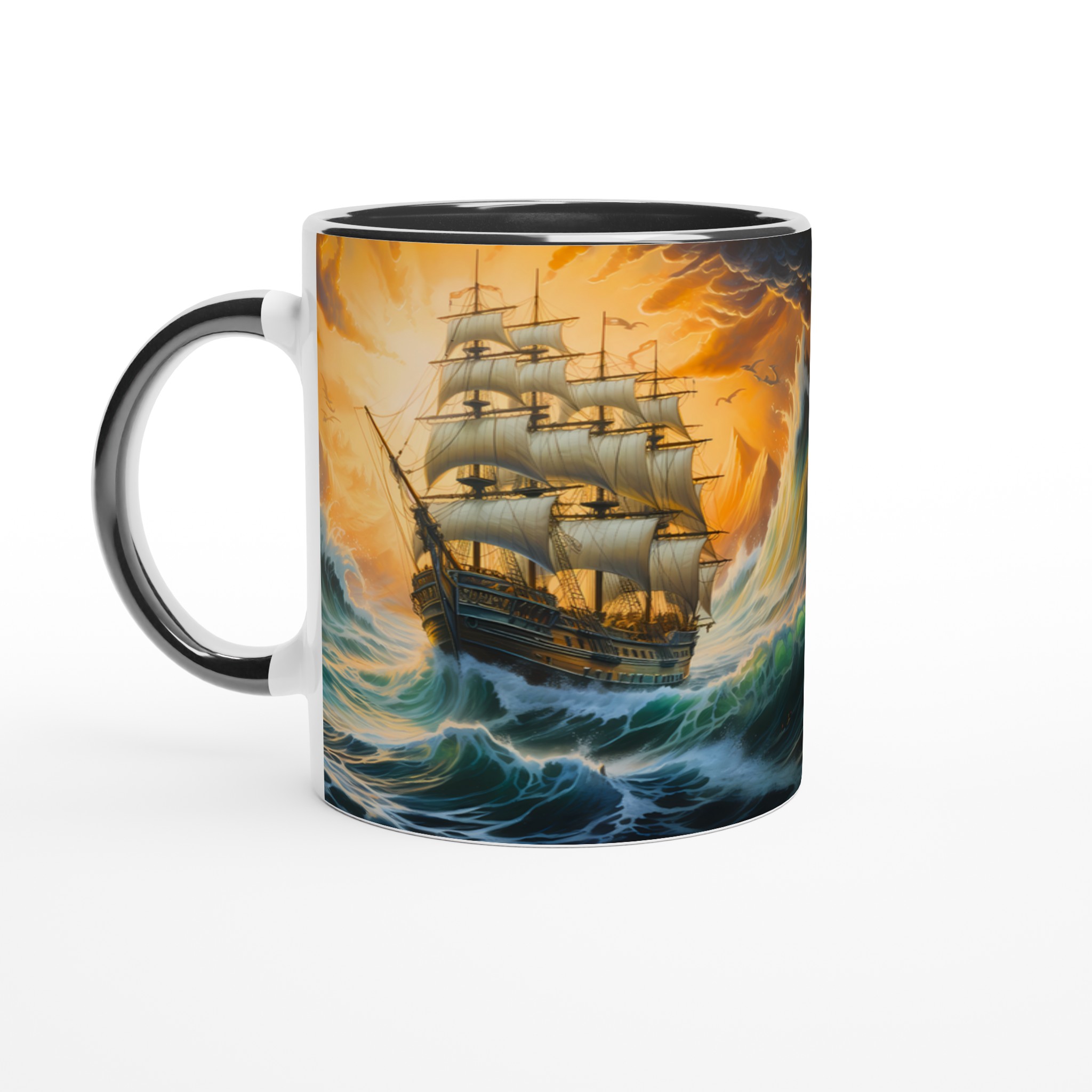 Episk Segelfartyg Mugg – Majestätiska Vågor & Solnedgång – Perfekt Present för Äventyrare