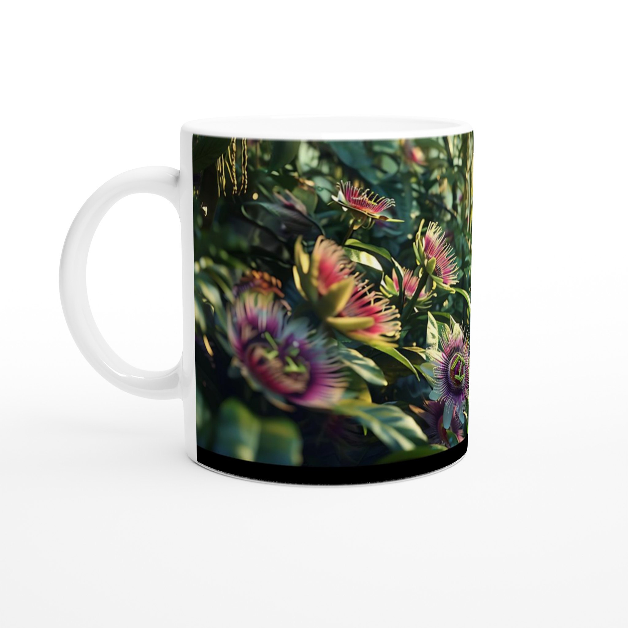 Inspirerad av den livfulla skönheten i en tropisk djungel, med dess sprakande färger och frodiga grönska, kommer denna mugg att transportera dig till en värld av lugn och exotisk charm. Den blanka ytan ger ett skarpt och levande tryck som verkligen sticker ut, oavsett om det är en personlig design, ett roligt citat eller en present till någon du tycker om.