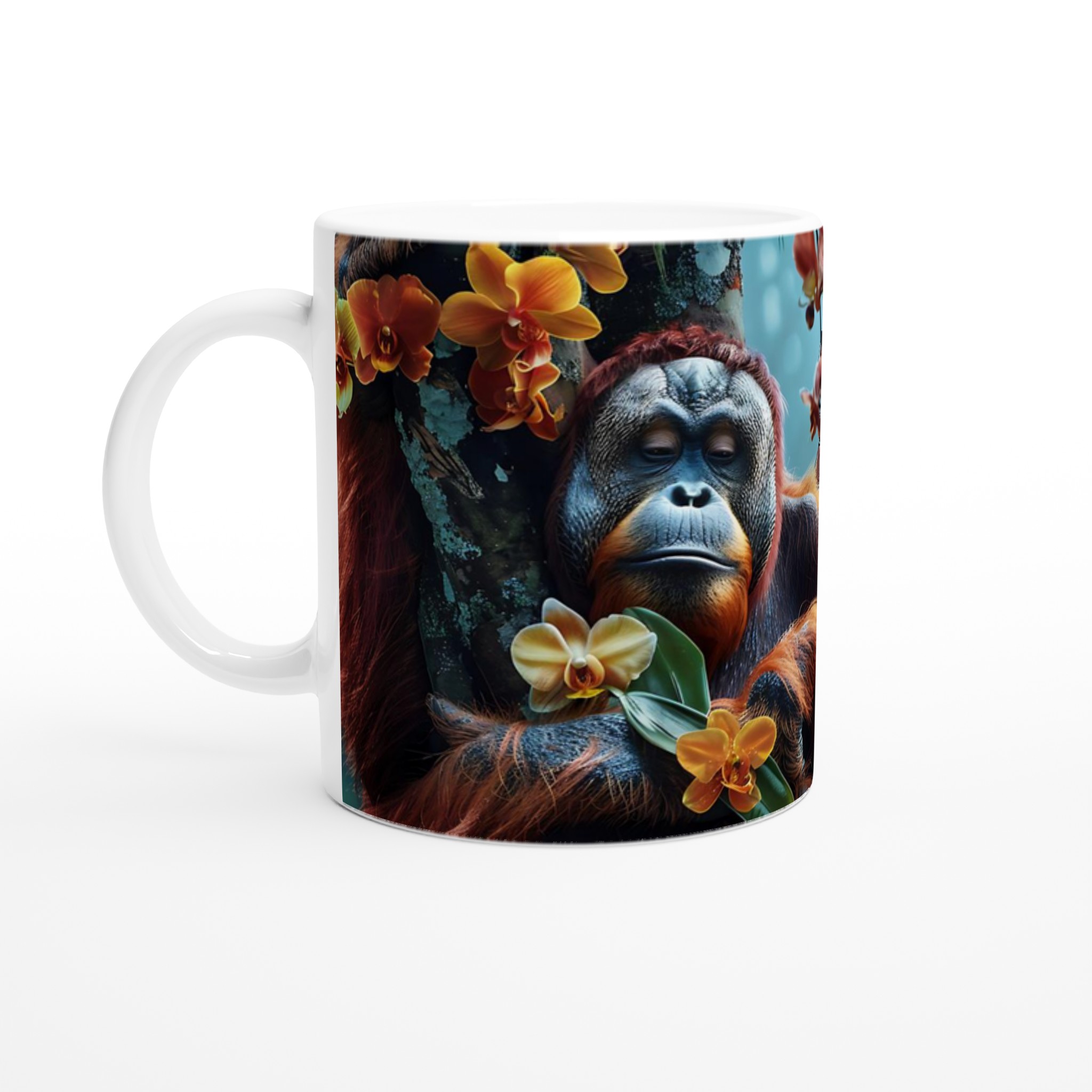 Fånga lugnet från regnskogen med vår unika orangutangmugg, prydd med majestätiska orkidéer och en djup, drömsk blå bakgrund. Denna design förenar naturens skönhet med en känsla av lugn och eftertanke. Välj bland en palett av sju keramiska färger – från klassisk Vit och Svart till livfulla nyanser som Gult, Rosa, Grönt, Rött och Blått – för att verkligen förstärka motivet och matcha din personliga stil.