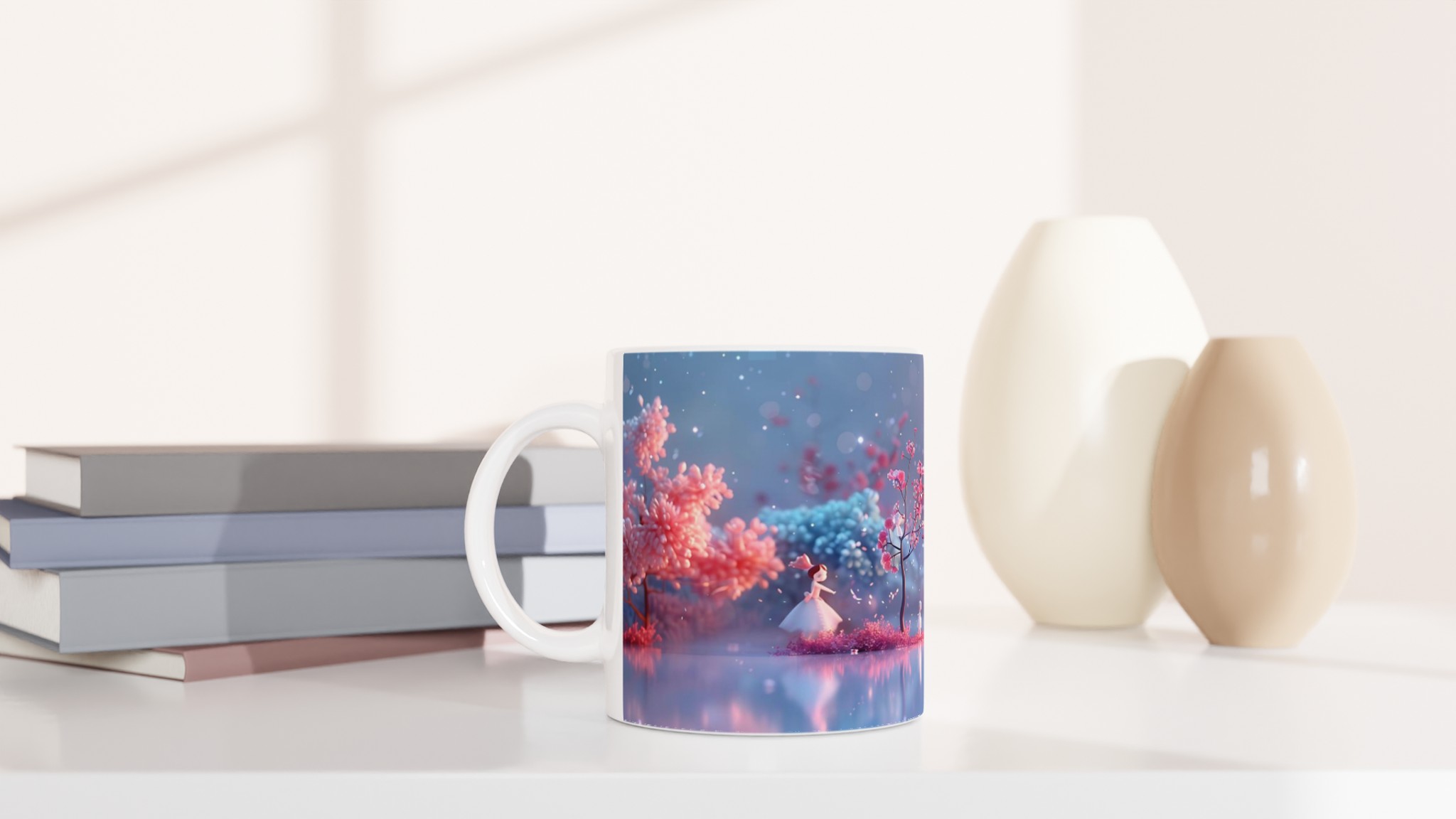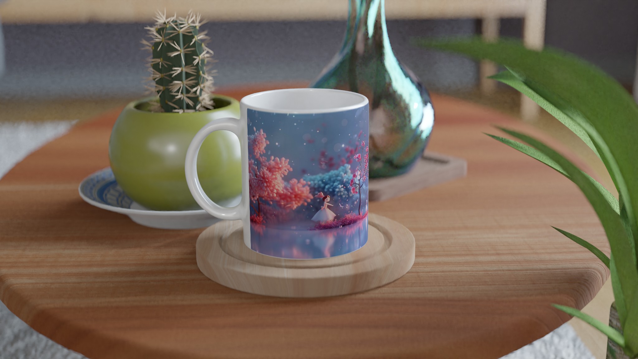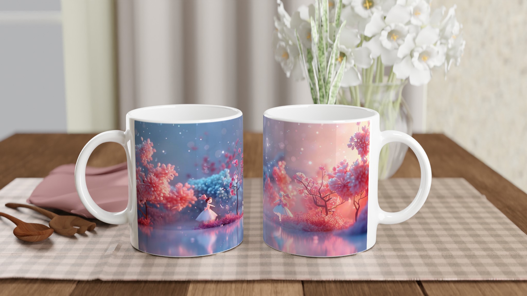 • Klassisk keramikmugg, 11 oz, med en drömlik ”Fairy Tale Bloom”-design.