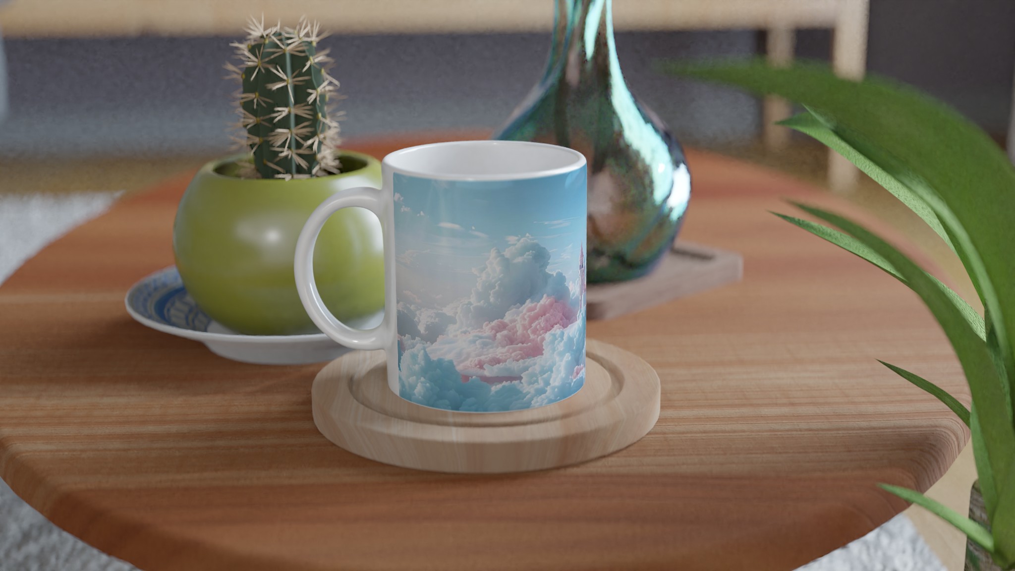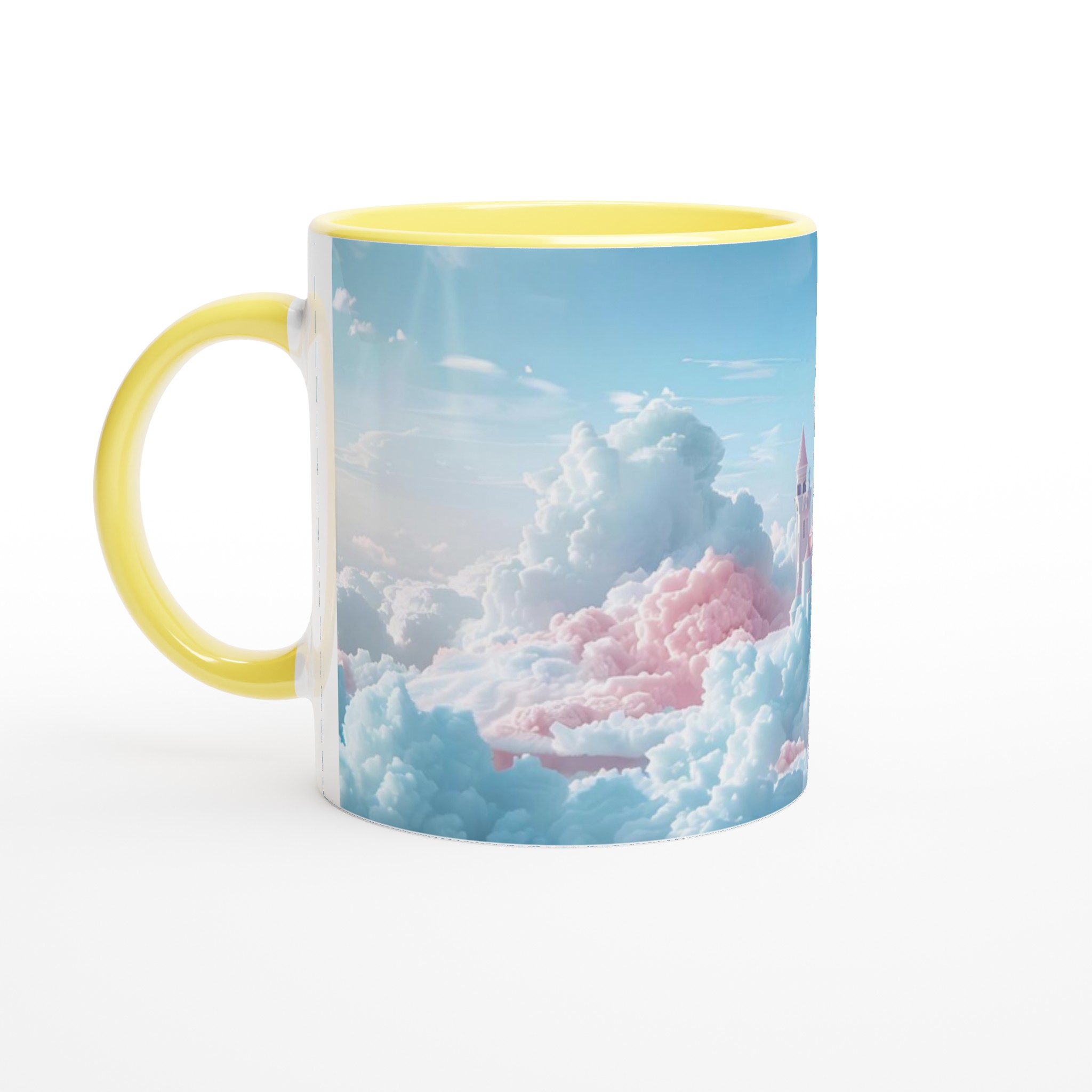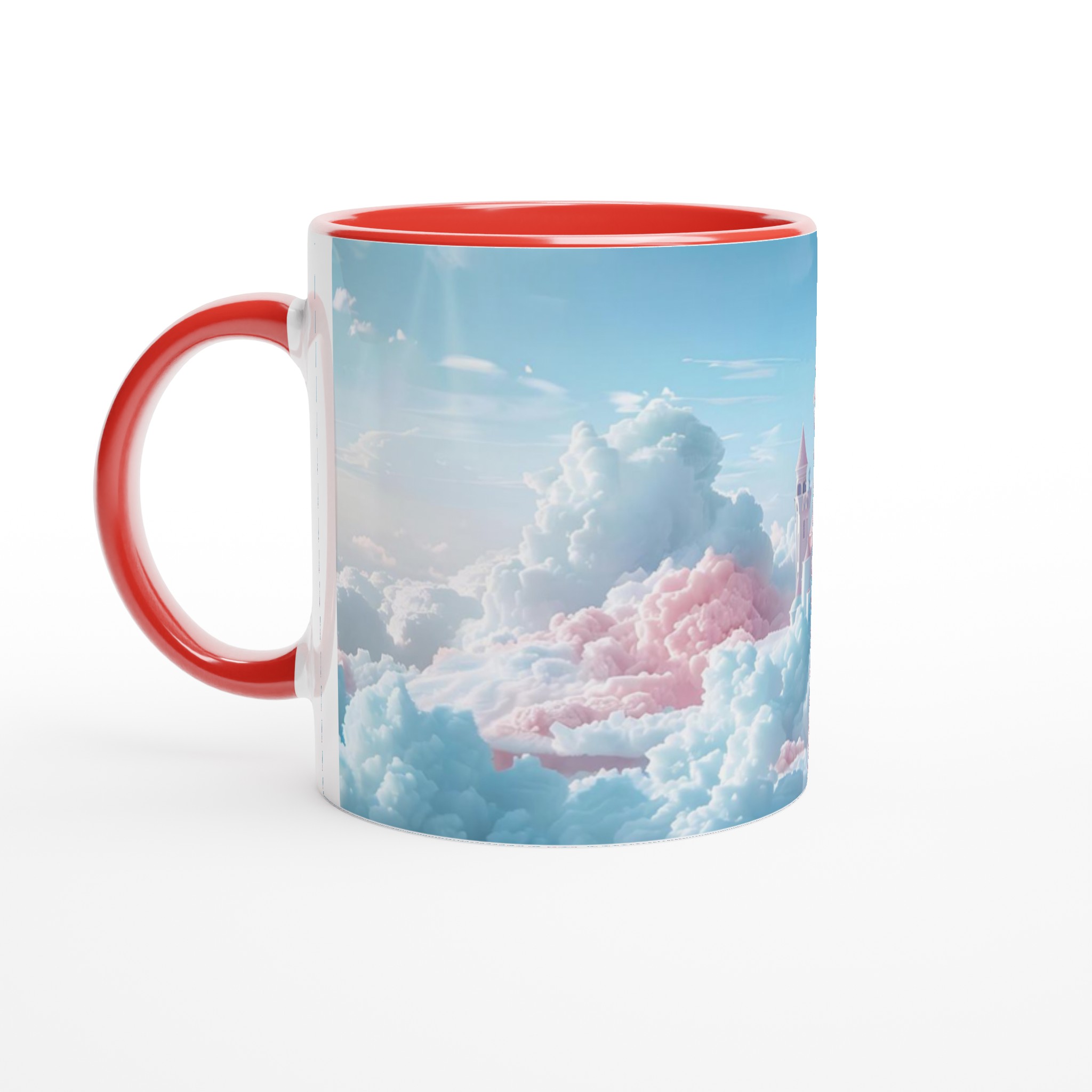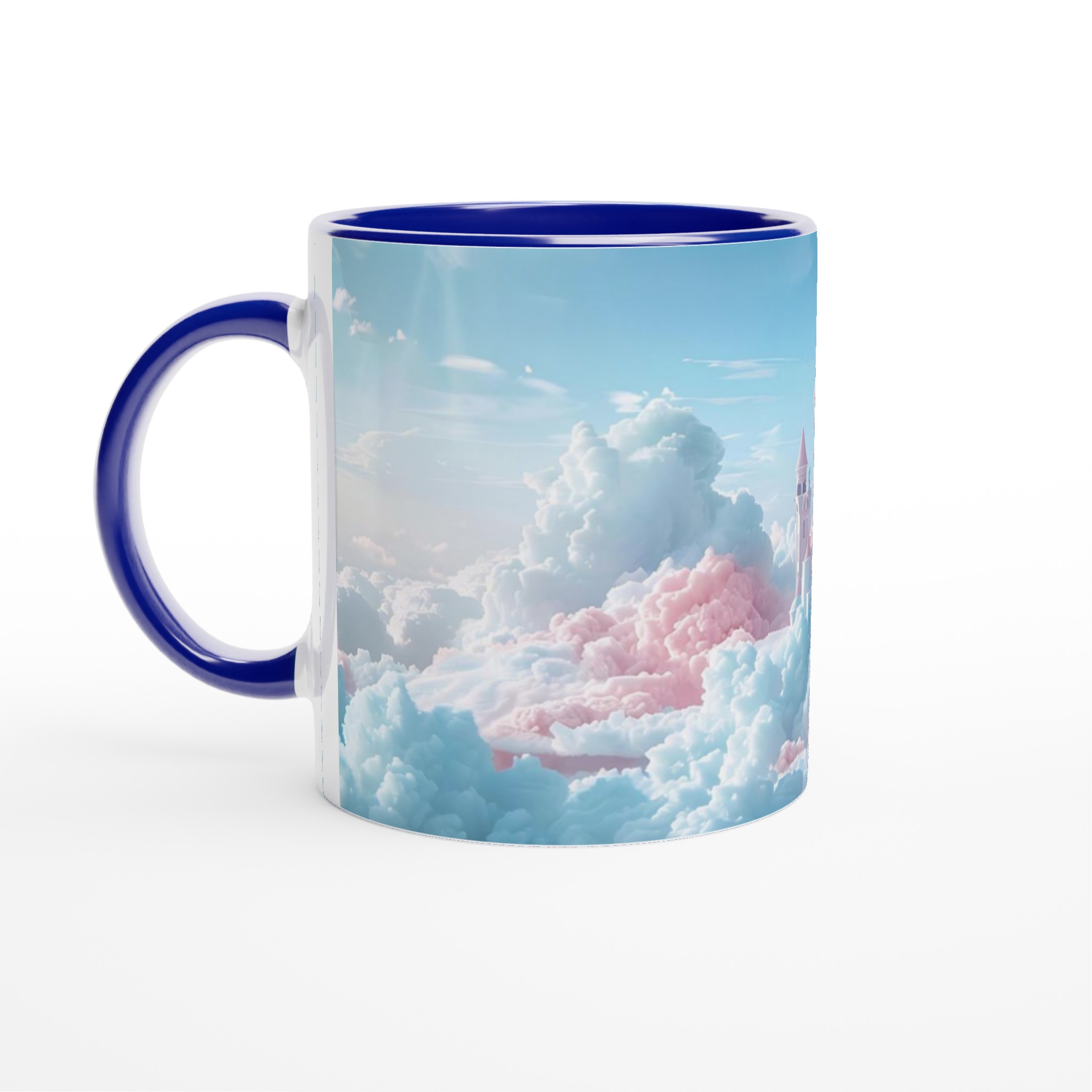 Dröm dig bort till ett sagoslott bland molnen med denna förtrollande keramiska mugg! Med en design som fångar den eteriska skönheten hos ett drömskt slott omgivet av sockervaddsrosa och himmelsblå moln, är denna mugg mer än bara en kopp – den är en daglig påminnelse om magi och fantasi.