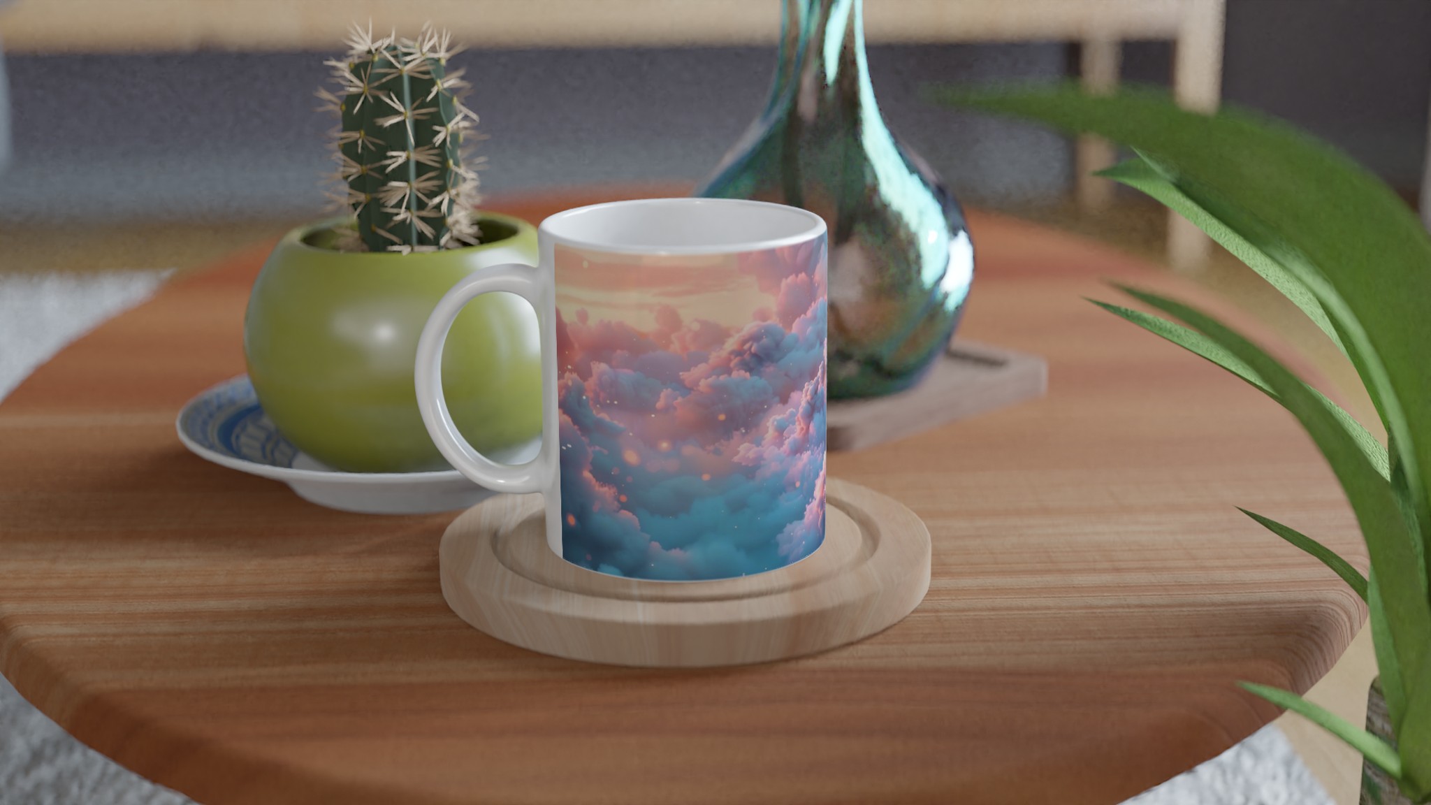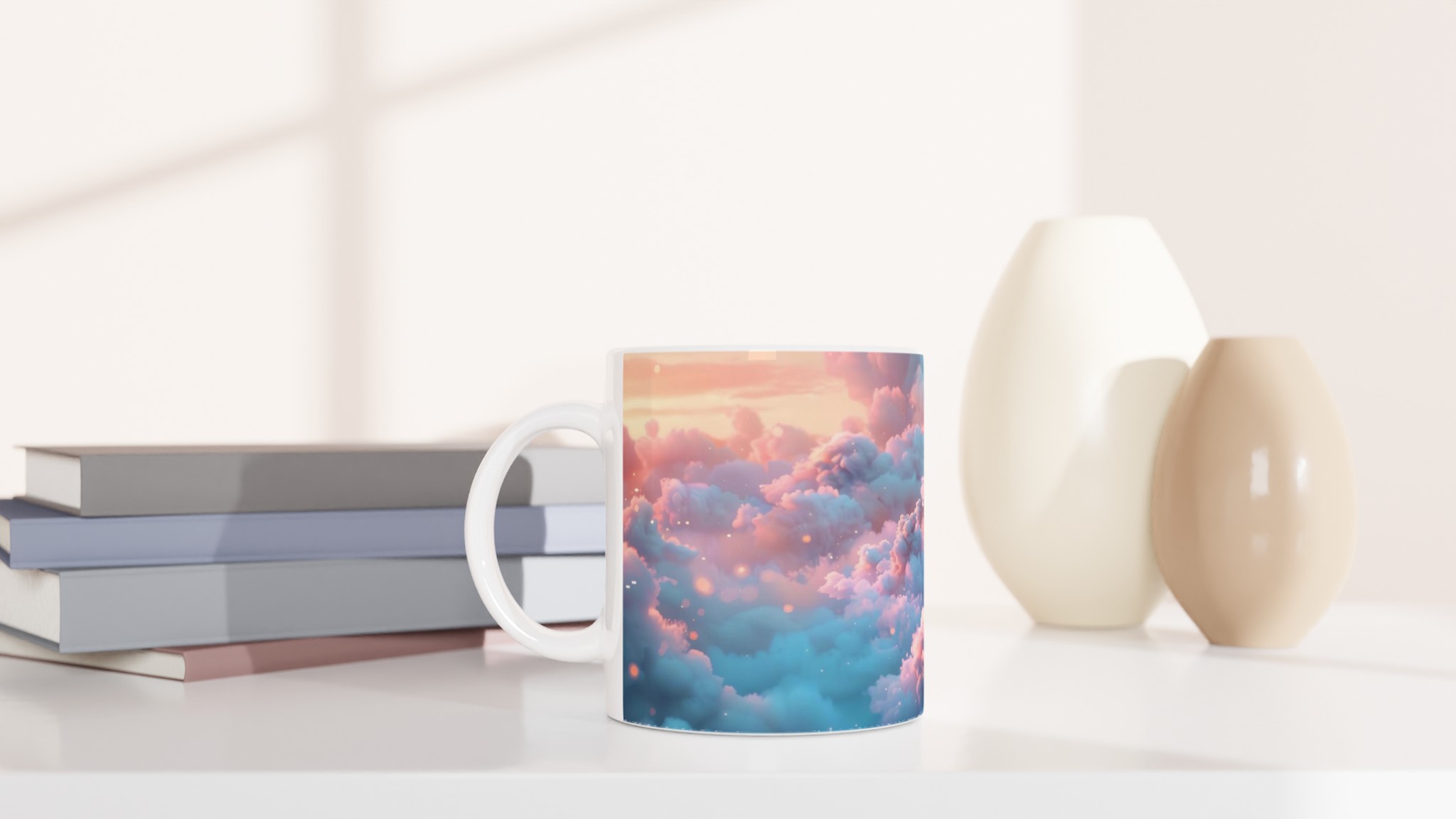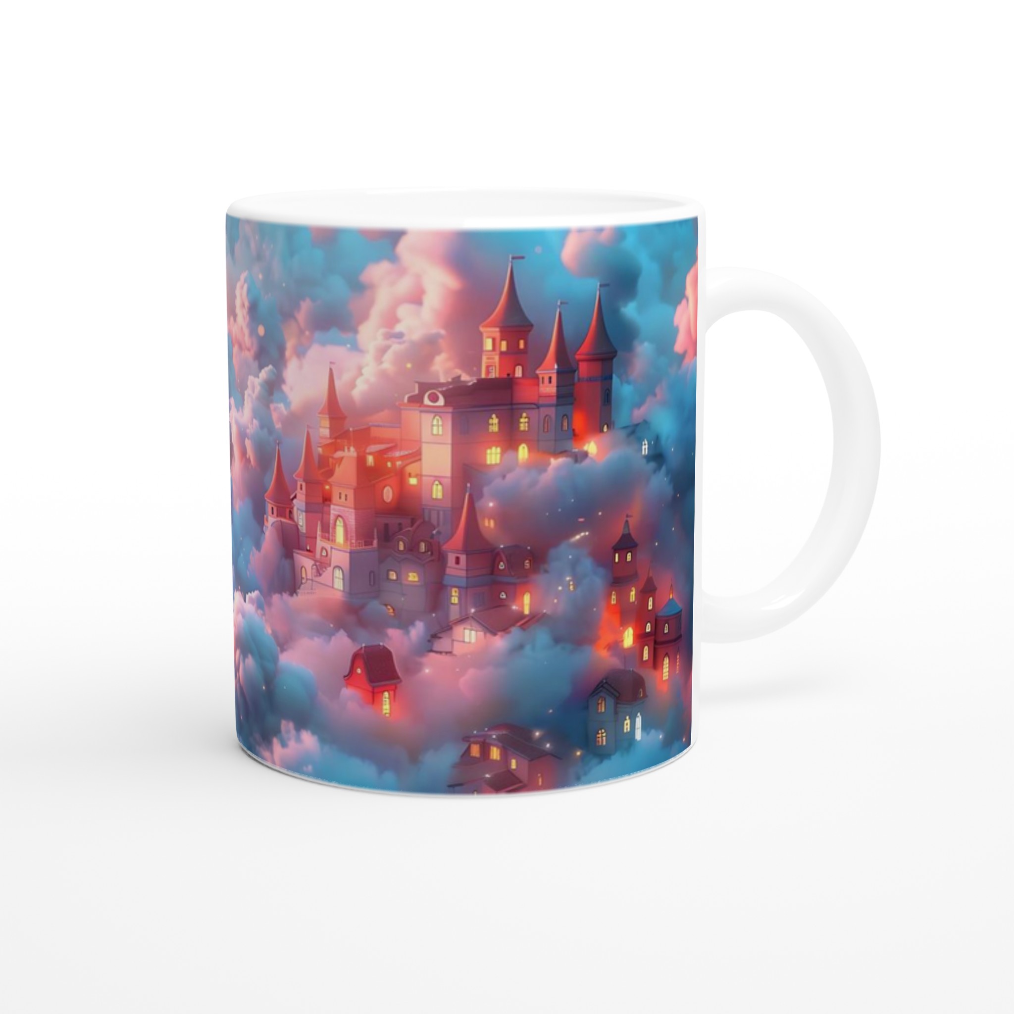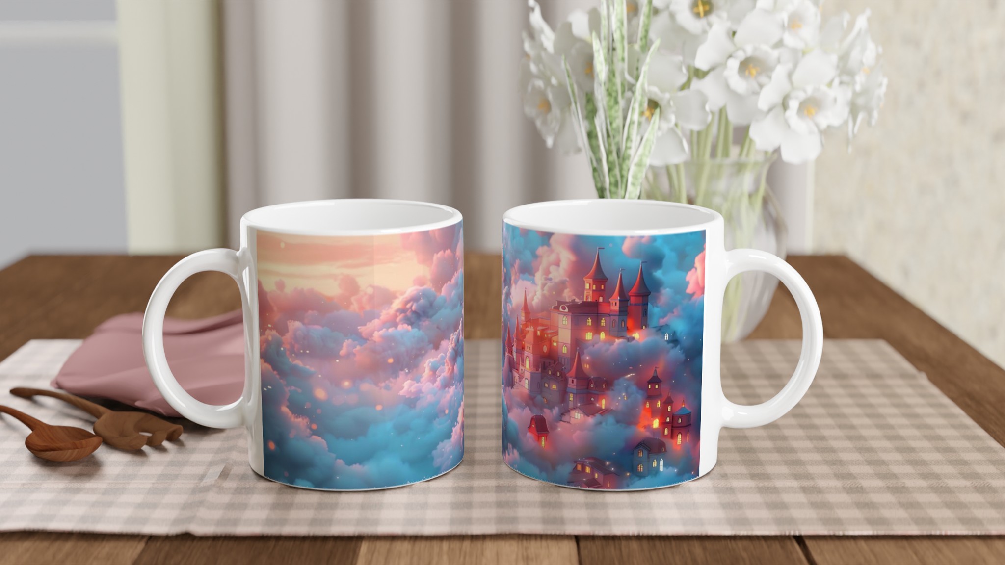 Vakna upp till magi varje dag med vår Fairy Tale Dream Castle keramiska mugg. Inspirerad av en värld där slott flyter bland sockervaddsliknande moln i skymningsljusets rosa och blå nyanser, förvandlar denna mugg varje dryck till en sagolik upplevelse. Perfekt för morgonkaffet, kvällens varma choklad, eller när du vill drömma dig bort med en kopp te. Låt den blanka ytan framhäva den fantastiska designen med klara och levande färger, som håller sig vackra även efter många turer i mikron och diskmaskinen.