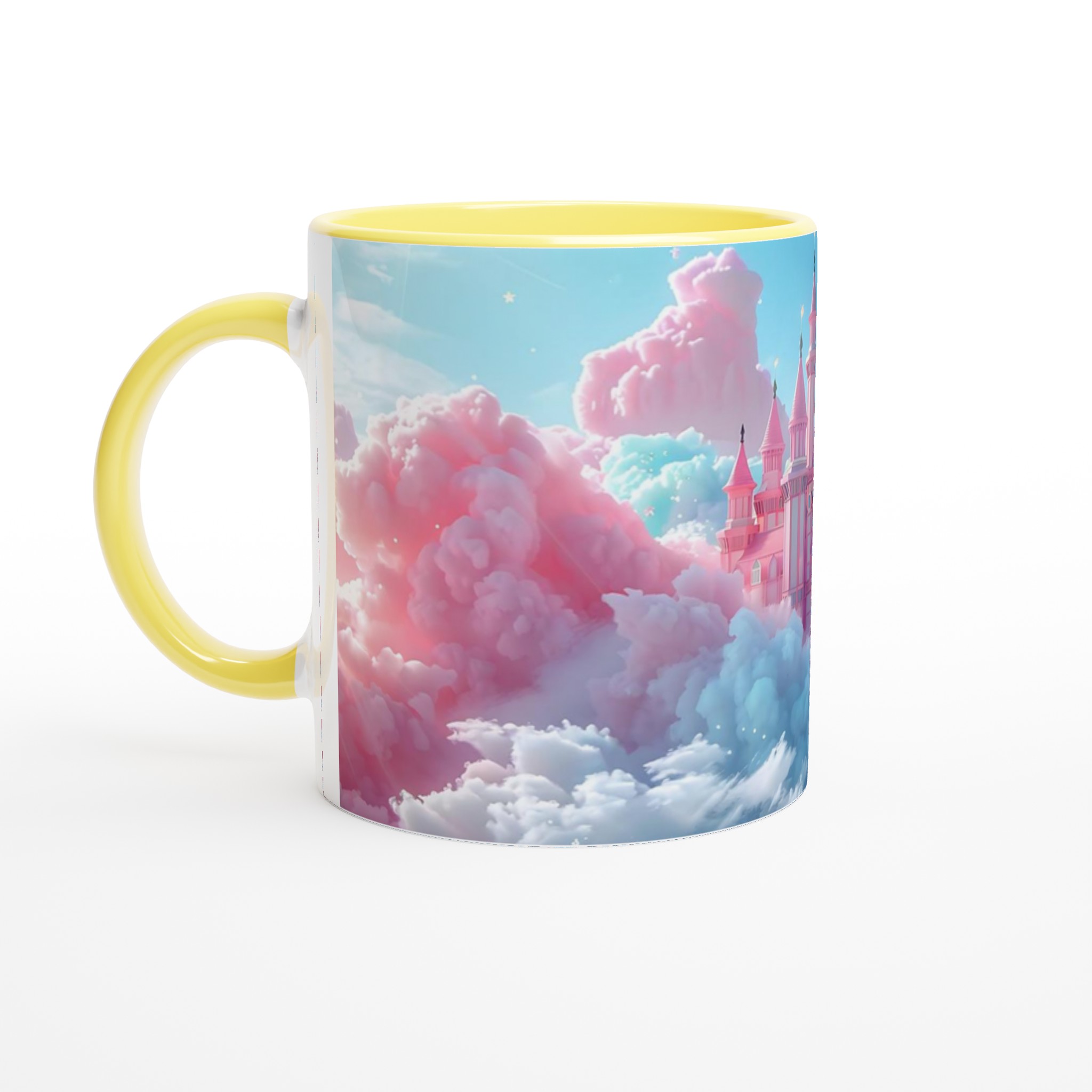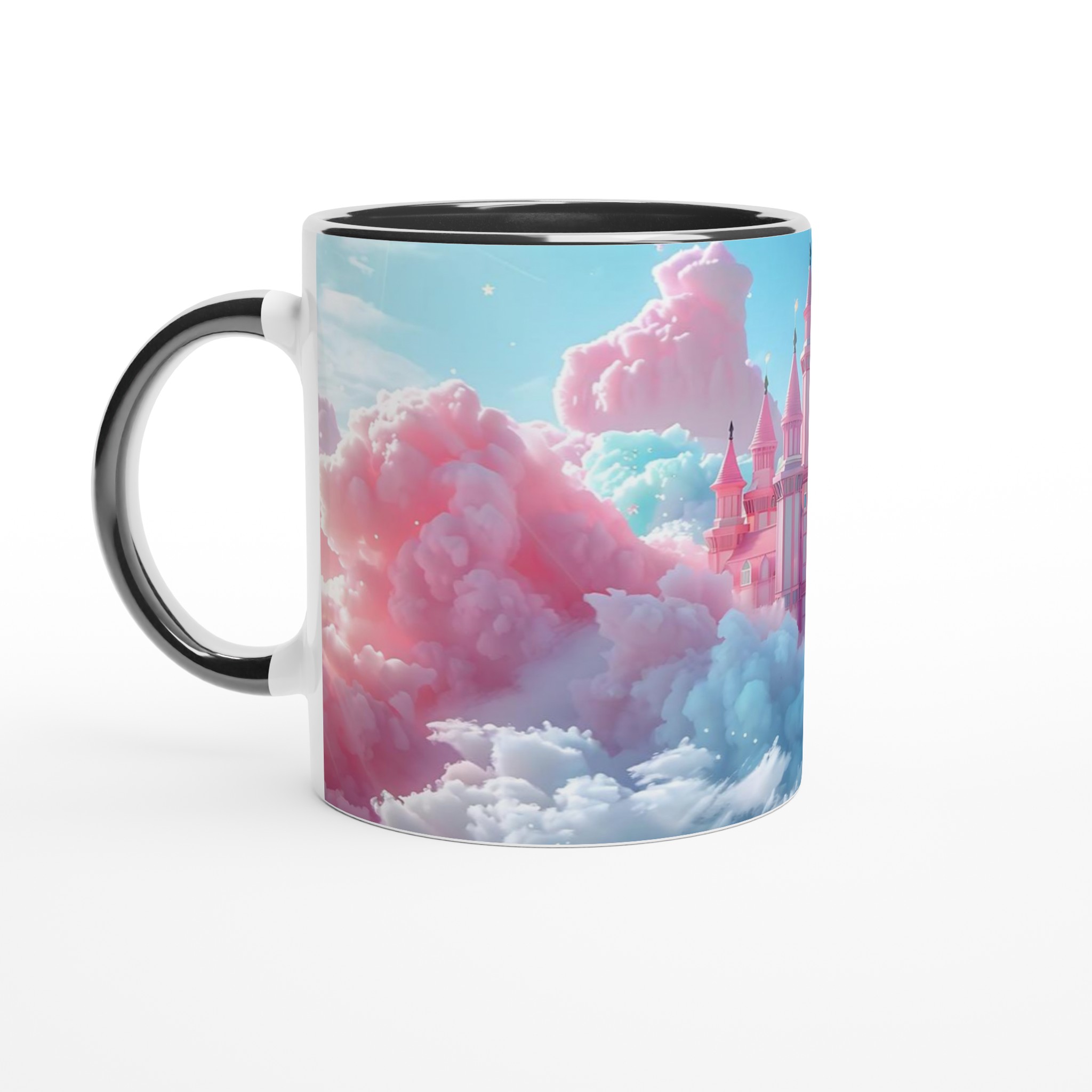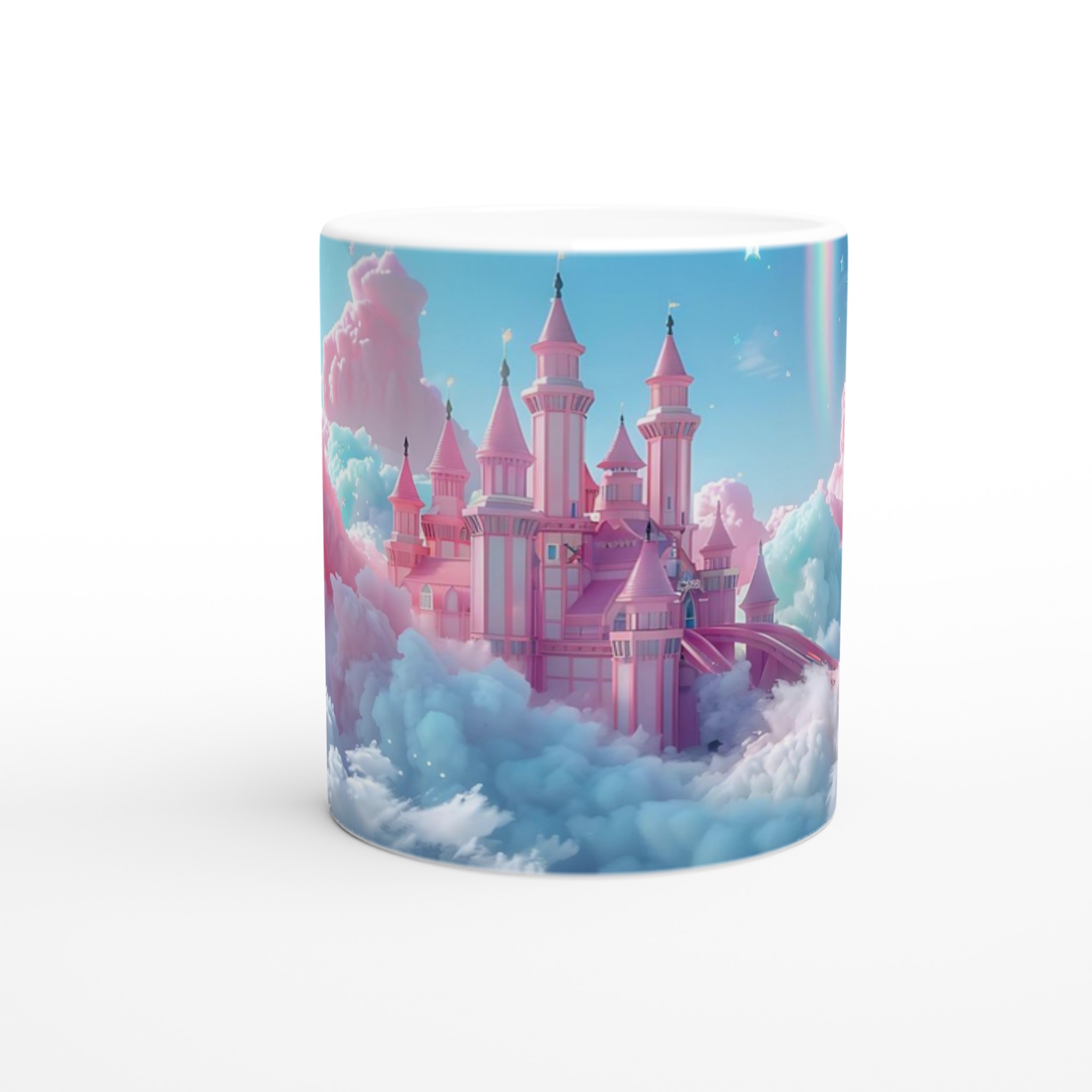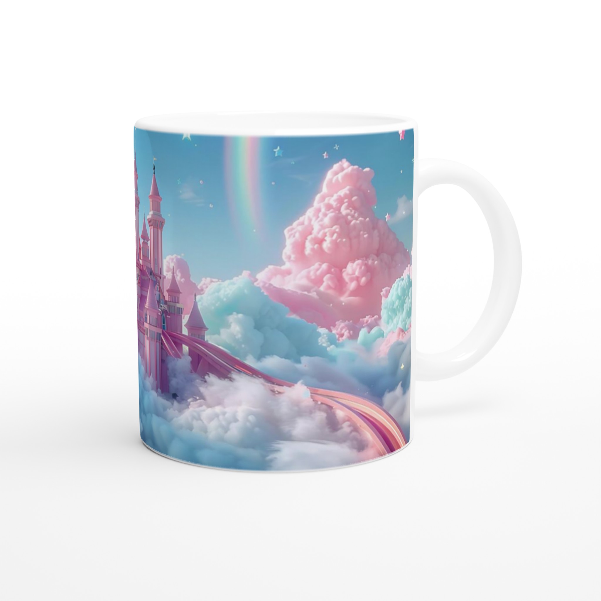 Stig in i en drömvärld varje gång du tar en klunk med denna förtrollande keramiska mugg, som fångar magin av ett sagoslott bland fluffiga pastellmoln. Inspirerad av bilden av ett rosa slott som svävar bland himmelsblå och sockervaddsrosa moln, är denna mugg mer än bara en dryckesbehållare – den är en daglig påminnelse om fantasi och under. Den blanka vita ytan gör att det drömska motivet framhävs med klara och levande färger, som håller sig fina även efter många turer i mikron och diskmaskinen.
