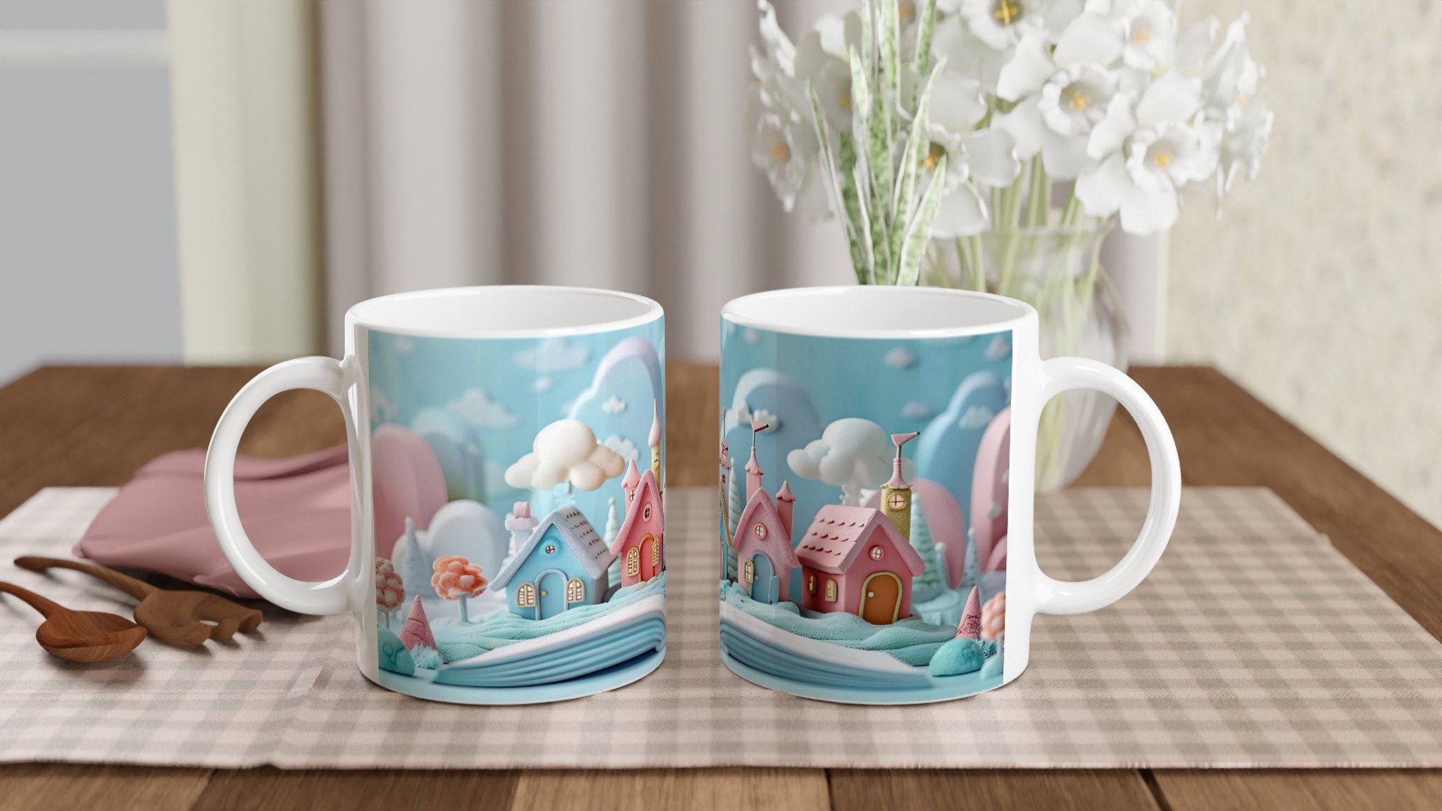 Fairy Tale Village Keramikmugg – En förtrollande kopp för drömmare i sju pastellnyanser