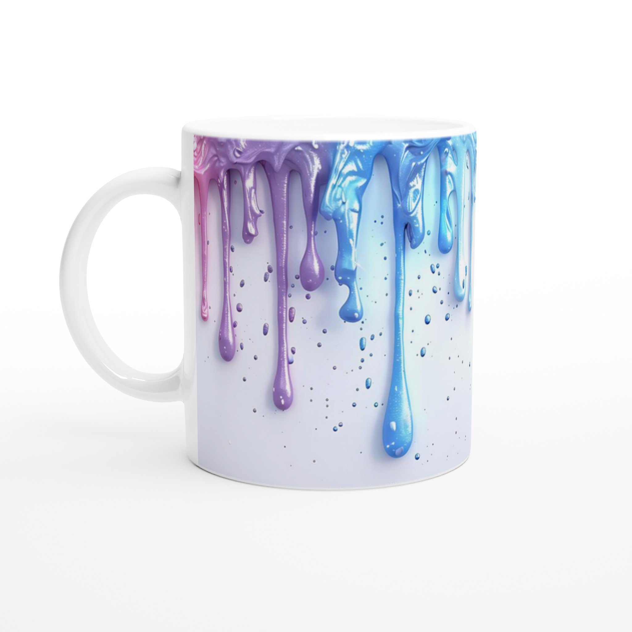 Den blanka vita ytan ger ett skarpt och levande tryck som verkligen sticker ut, oavsett om det är en personlig design, ett roligt citat eller en present till någon du tycker om. Inspirerad av en explosion av färgglad, droppande färg, är denna mugg den perfekta duken för att uttrycka din unika stil. Välj bland ett spektrum av sju livfulla färger som framhäver din design och gör varje klunk till en fest för ögat.