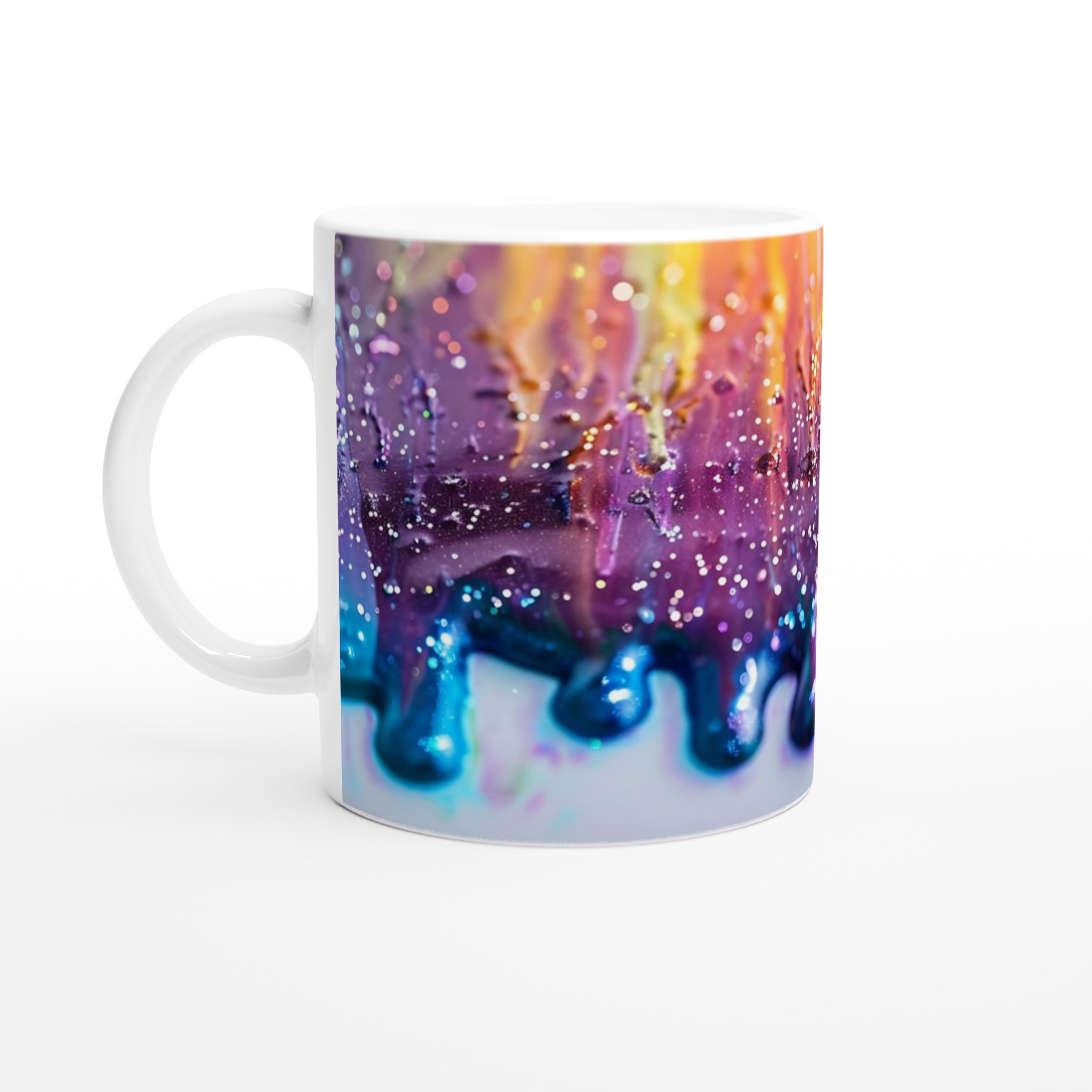 Inspirerad av en lekfull färgexplosion av glittrande droppar, ger denna mugg en gnistrande och levande start på dagen. Den blanka vita ytan ger ett skarpt och levande tryck som verkligen sticker ut, oavsett om det är en personlig design, ett roligt citat eller en present till någon du tycker om. Välj mellan en regnbåge av 7 strålande färger – Ceramic White, Yellow, Pink, Green, Red, Black, och Blue – för att matcha din unika stil eller favoritfärg!